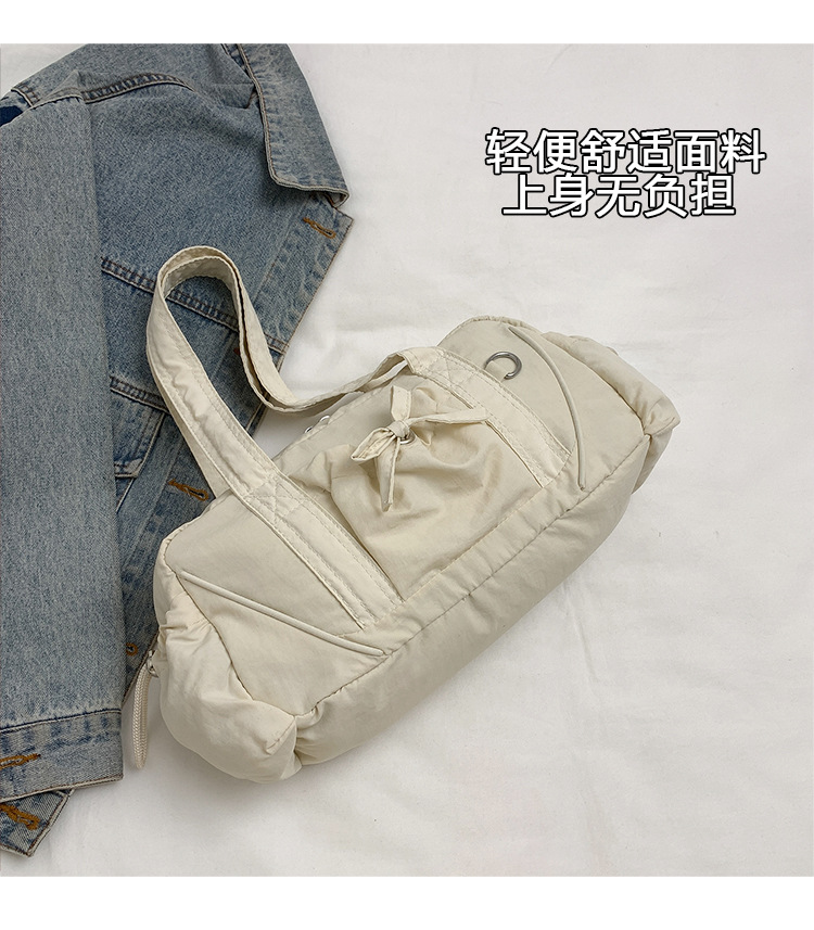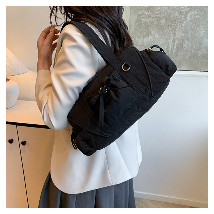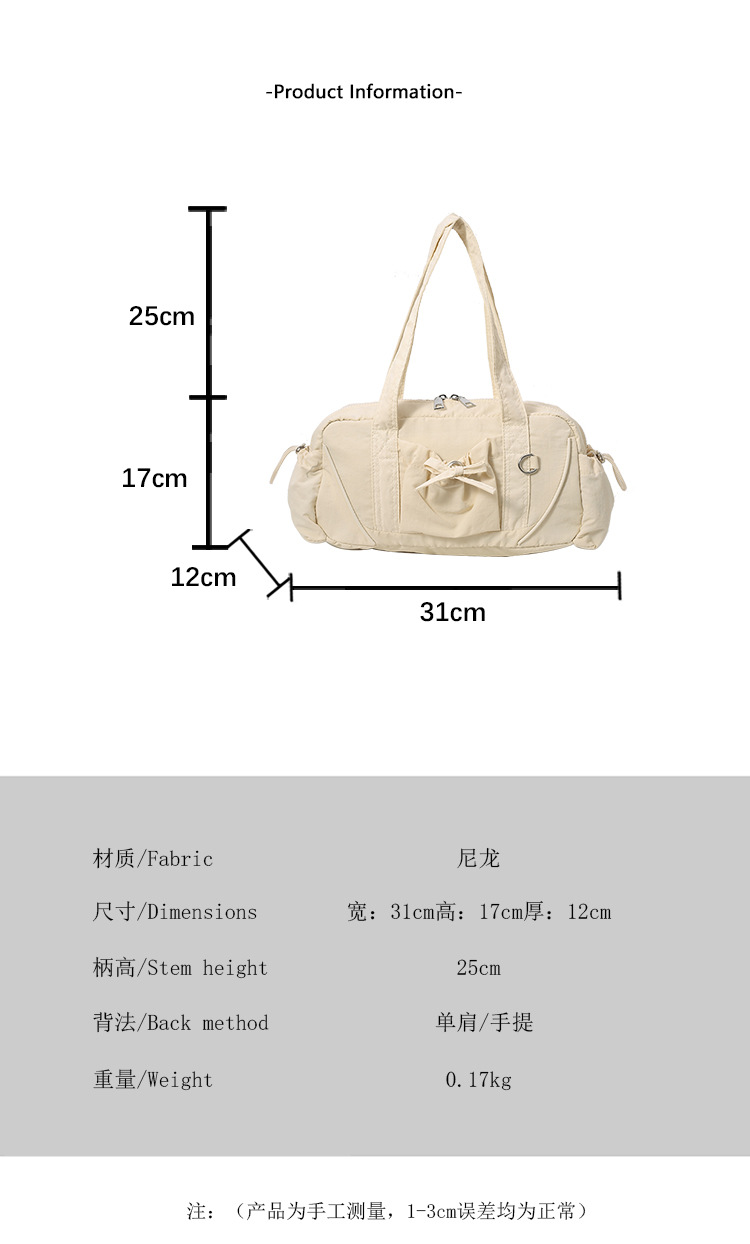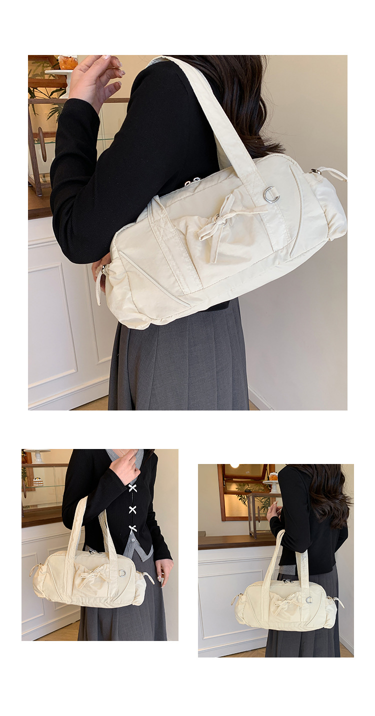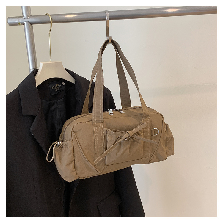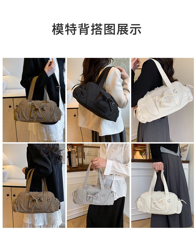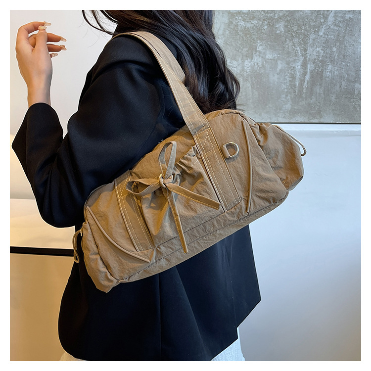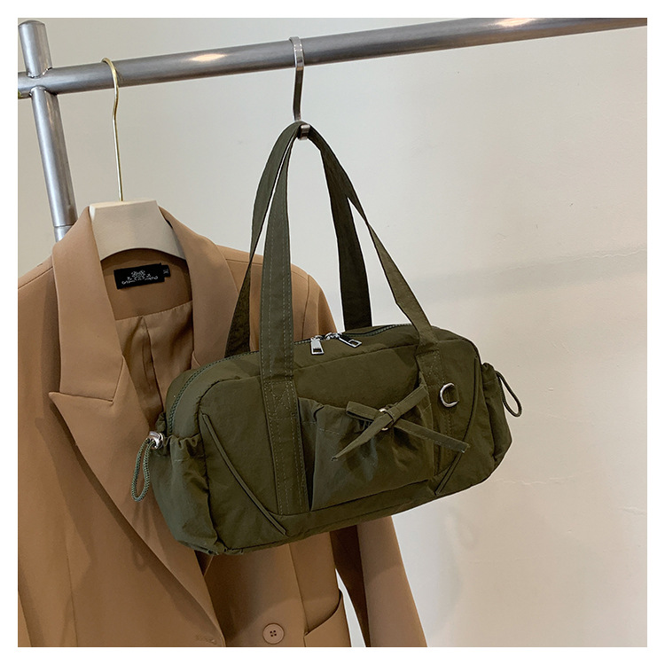 여성을위한 한국 틈새 나일론 캐주얼 숄더 백 2025 여름 간단하고 다재다능한 보우 휴대용 보스턴 백스토어 가기