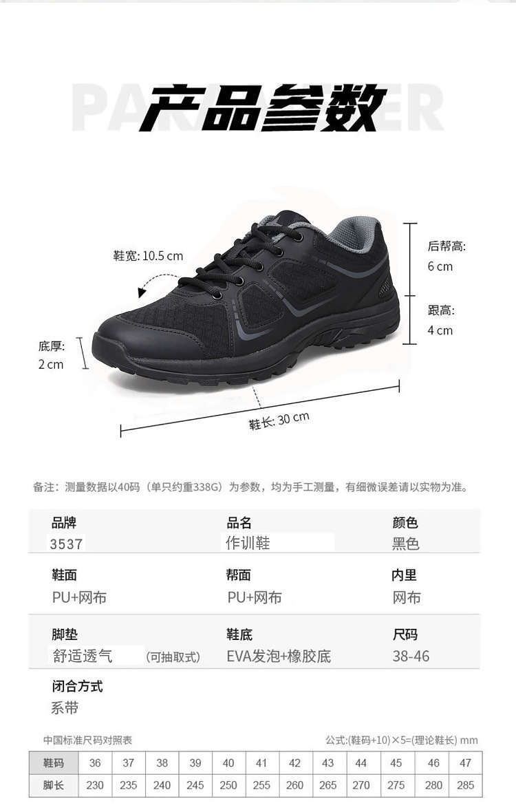 3537 정통 블랙 체력 운동화, 야외 운동화, 등산화, 남성용 야외 스포츠 운동화, 통기성 및 탈취제