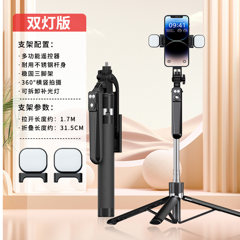 • 1.7m B16 셀카봉 검정색 + 작은 사각형 조명 2개