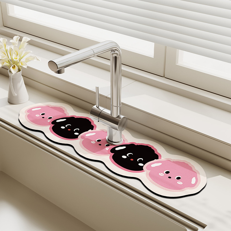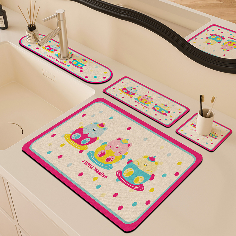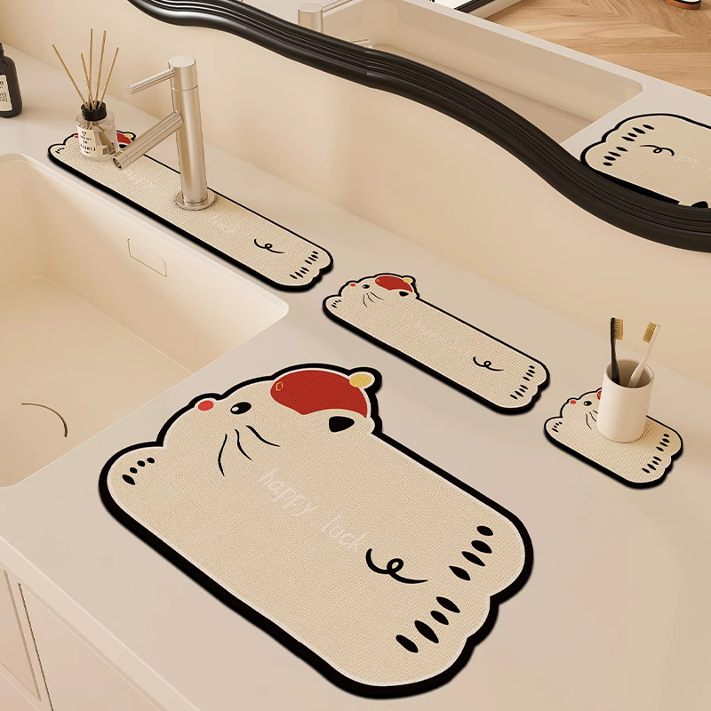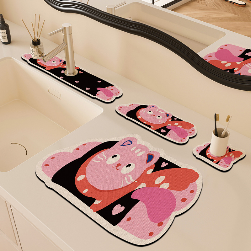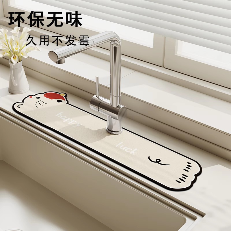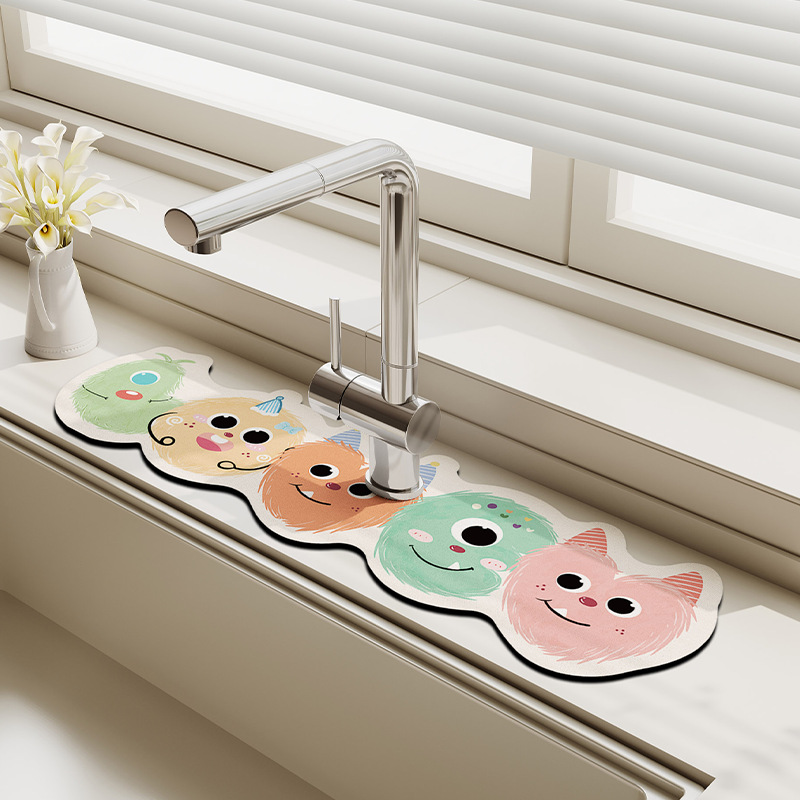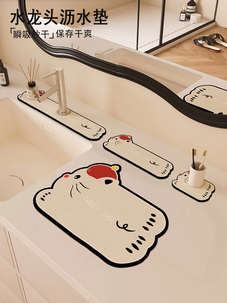 만화 주방 수도꼭지 배수 패드, 세면대, 좁은 가장자리 스플래시 패드, 욕실 세면대 흡수 패드스토어 가기