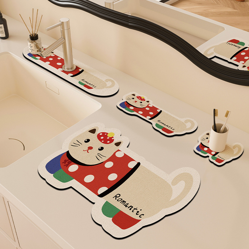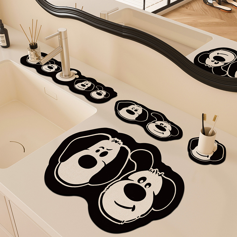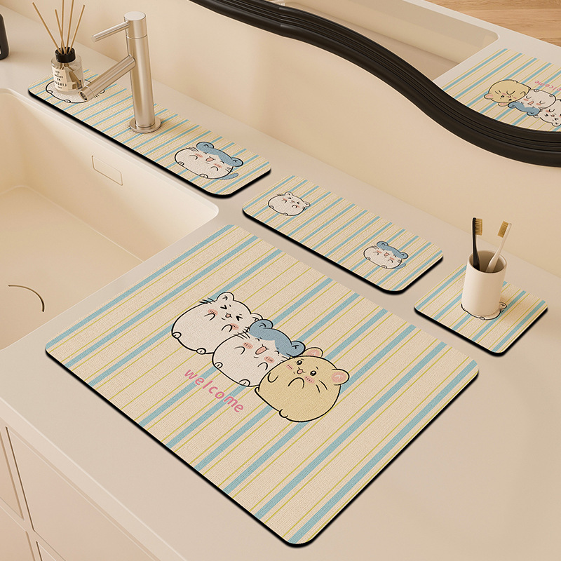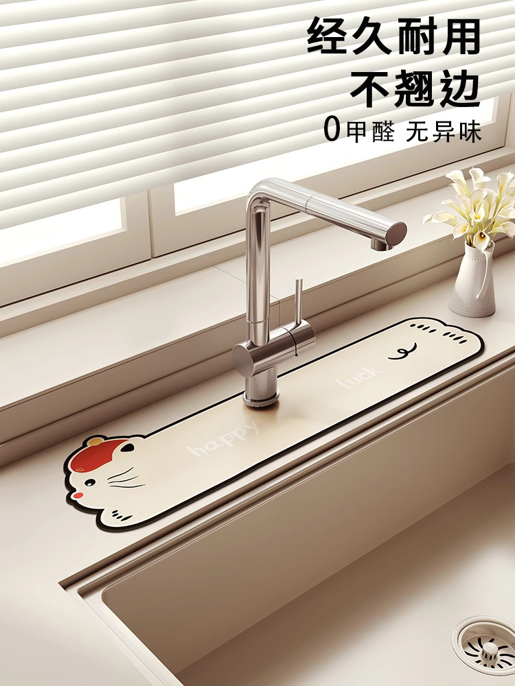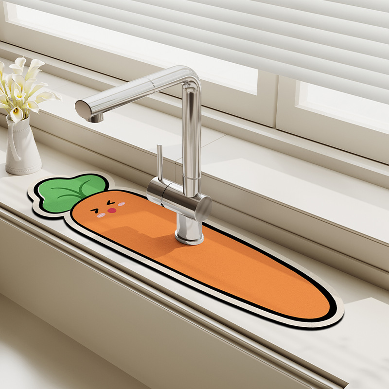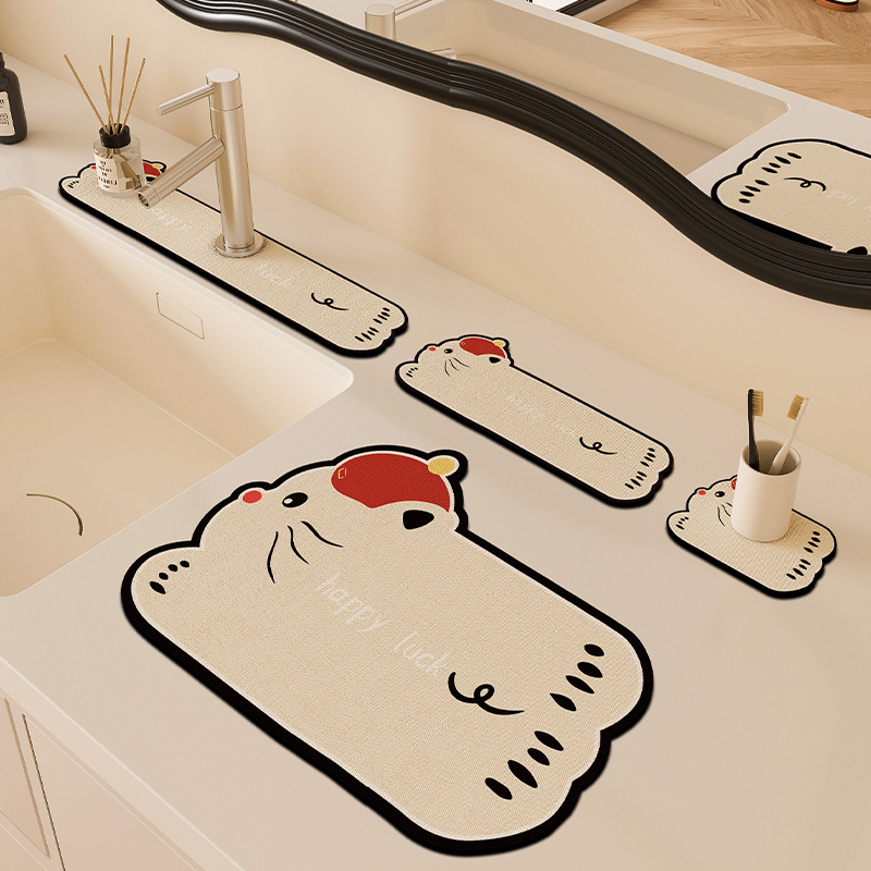 만화 주방 수도꼭지 배수 패드, 세면대, 좁은 가장자리 스플래시 패드, 욕실 세면대 흡수 패드스토어 가기