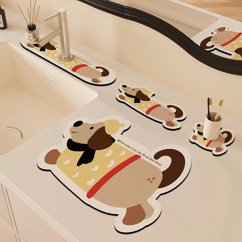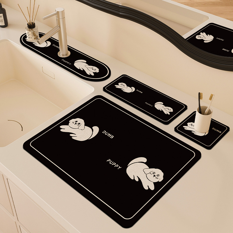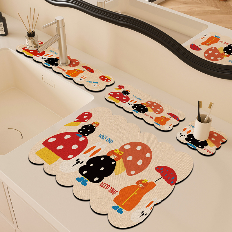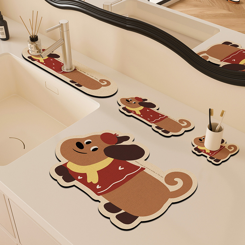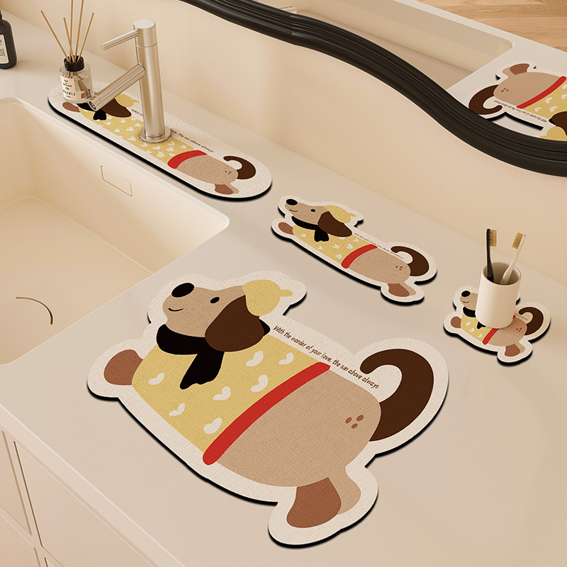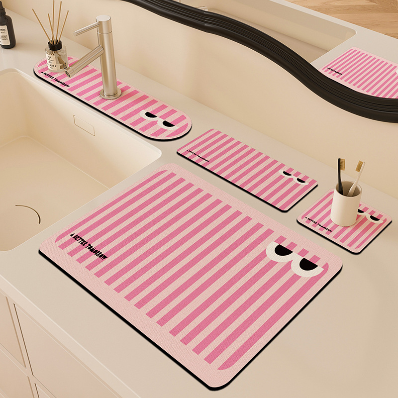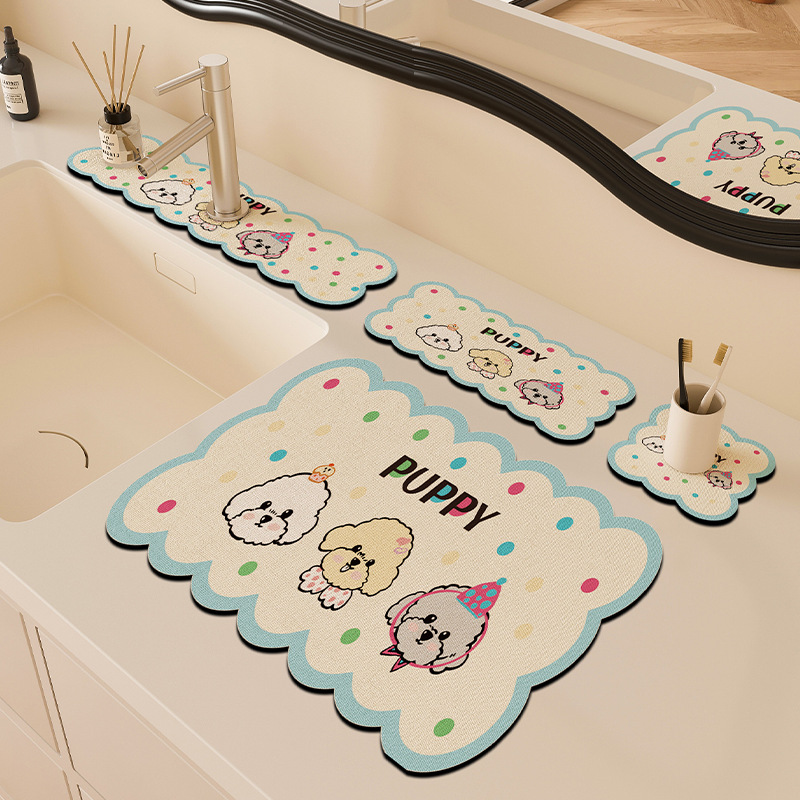 만화 주방 수도꼭지 배수 패드, 세면대, 좁은 가장자리 스플래시 패드, 욕실 세면대 흡수 패드스토어 가기