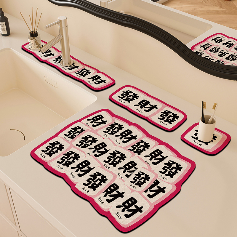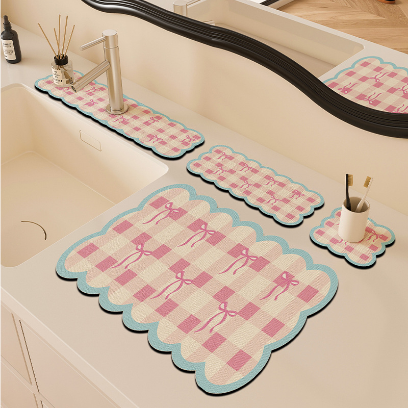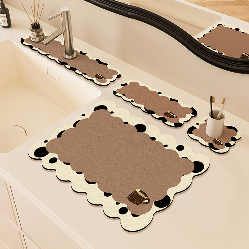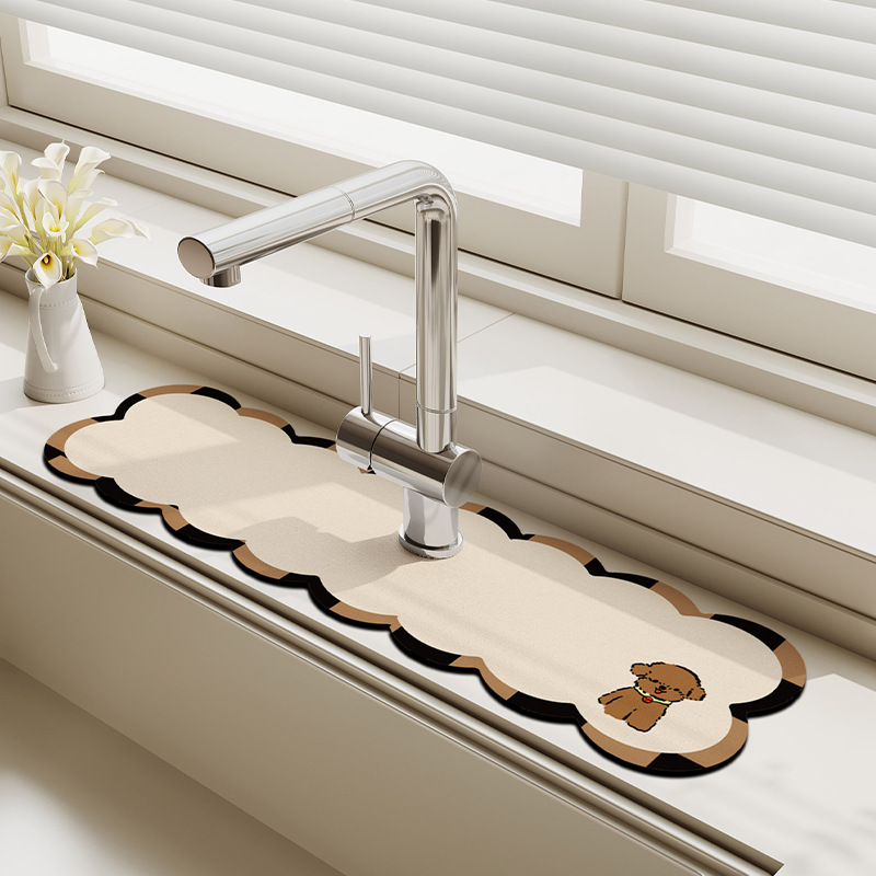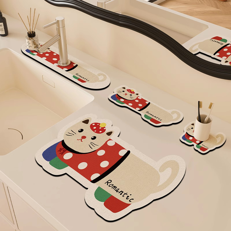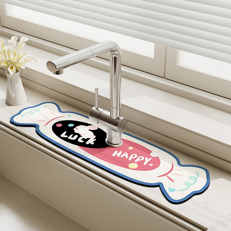 만화 주방 수도꼭지 배수 패드, 세면대, 좁은 가장자리 스플래시 패드, 욕실 세면대 흡수 패드