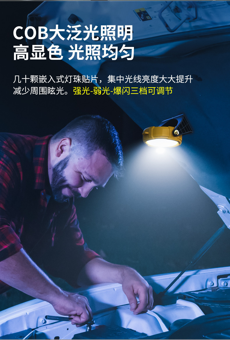 국경 간 새로운 미니 작업 조명 자동차 장착형 강력한 자기 다기능 조명 야외 COB + RGB 교수형 캠핑 조명