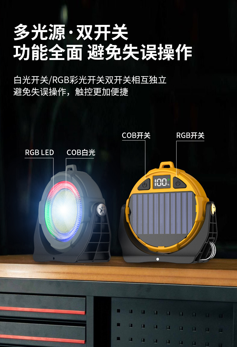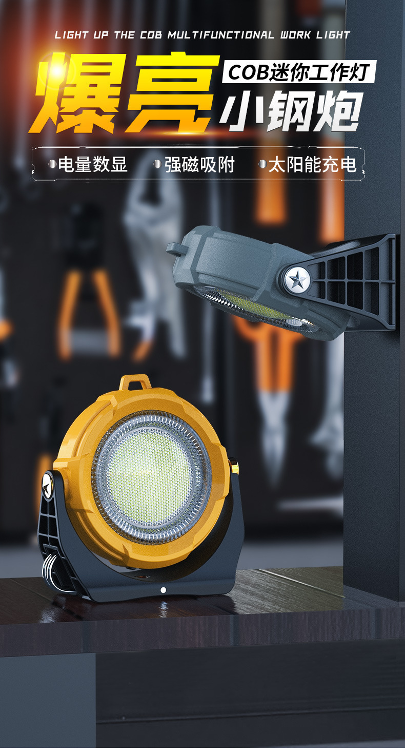 국경 간 새로운 미니 작업 조명 자동차 장착형 강력한 자기 다기능 조명 야외 COB + RGB 교수형 캠핑 조명스토어 가기