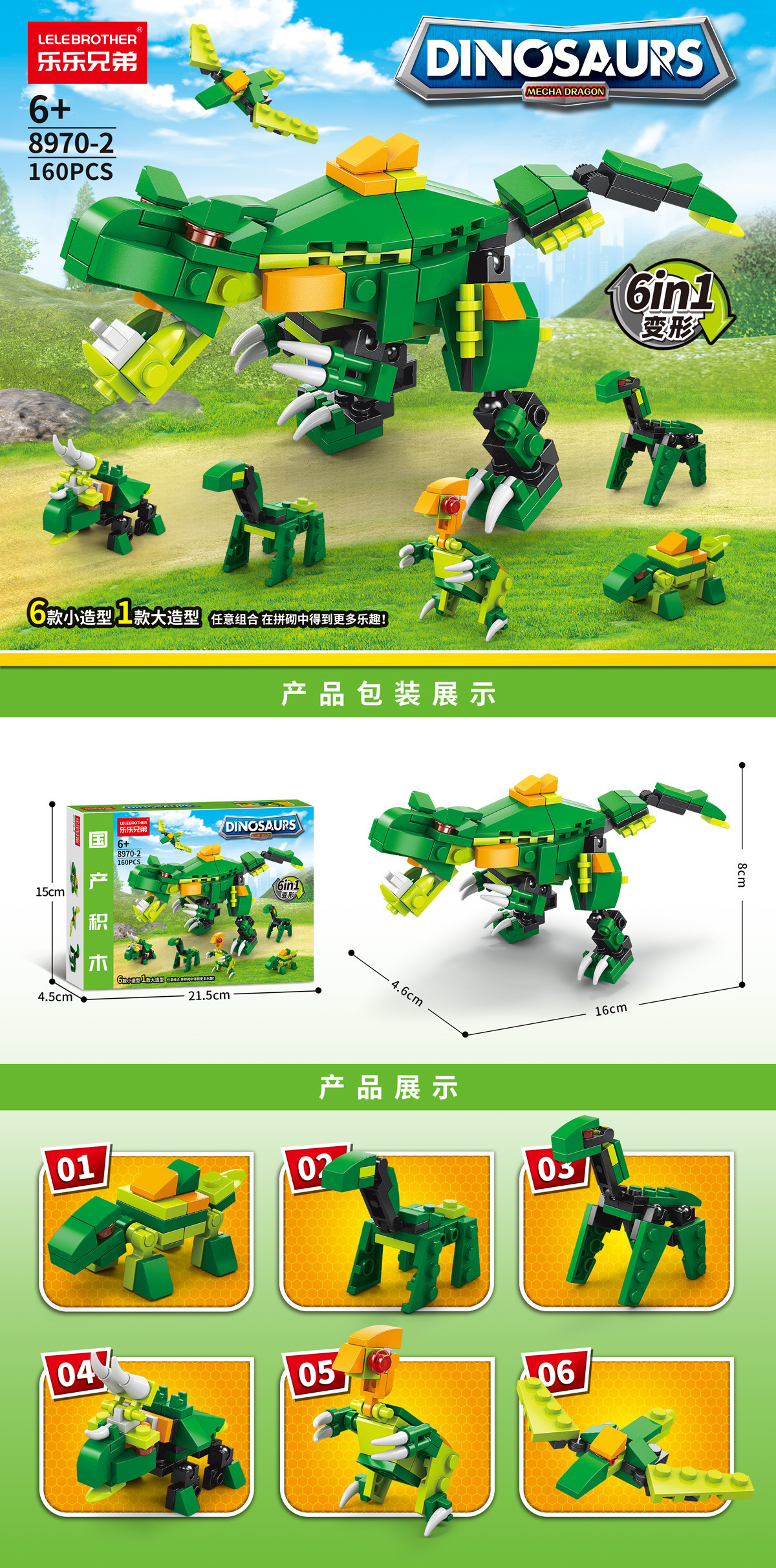 메카 공룡 6-in-1 조립 시리즈 어린이 및 소년용 레고 소형 입자 교육용 빌딩 블록 장난감과 호환 가능