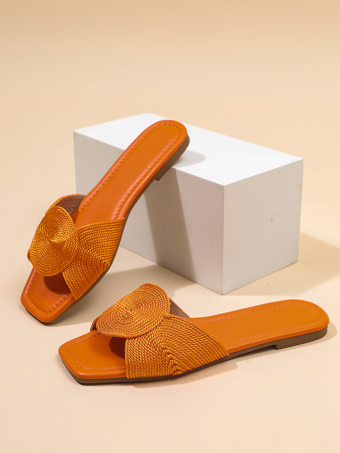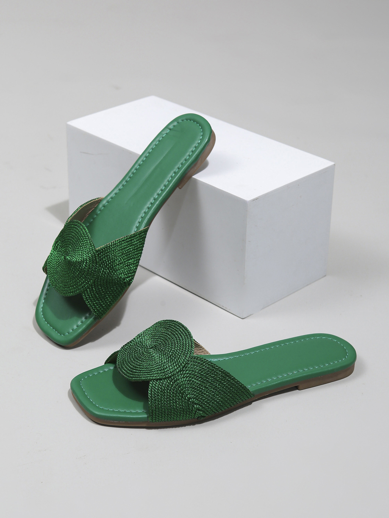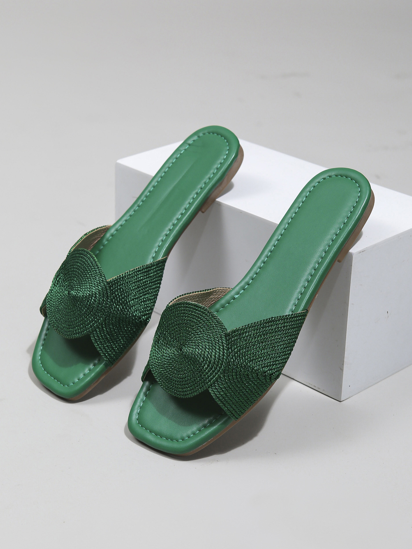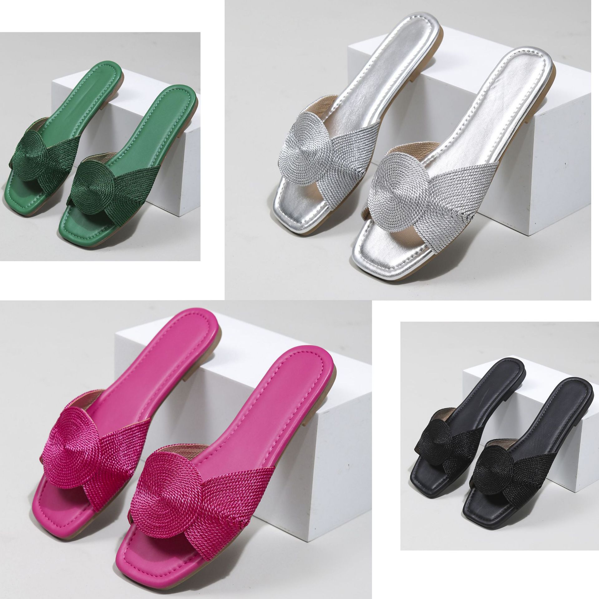 새로운 금속 전기자수 직조 여성 샌들, 여름용 사각코 스트랩 플랫 바닥 미끄럼 방지 외부 착용 가능, 가벼운 럭셔리, 해외 직구, 재고 있음