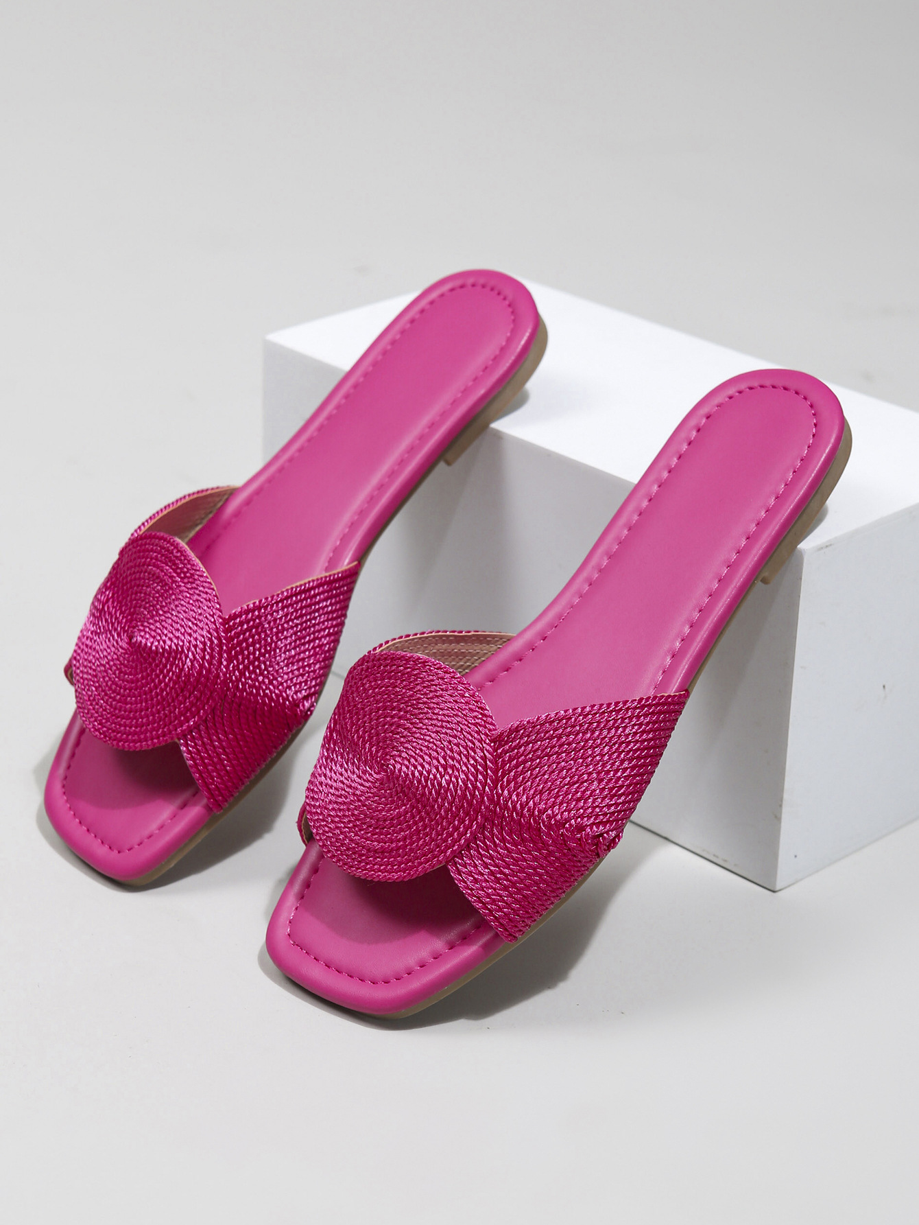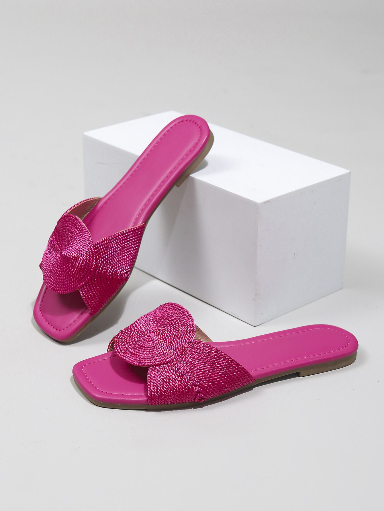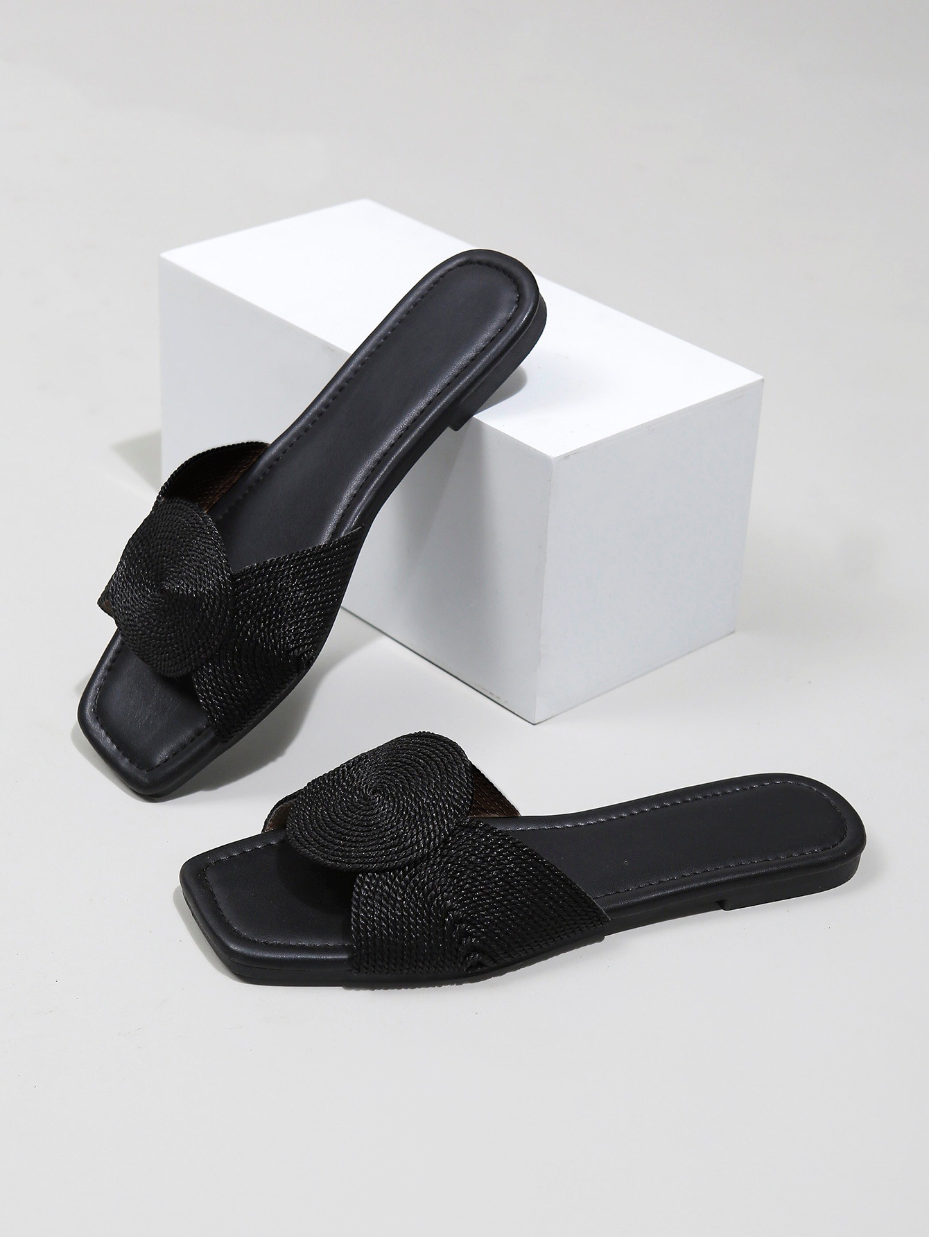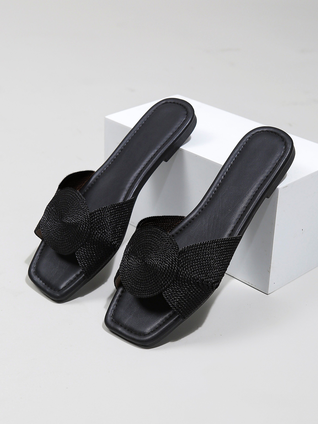 새로운 금속 전기자수 직조 여성 샌들, 여름용 사각코 스트랩 플랫 바닥 미끄럼 방지 외부 착용 가능, 가벼운 럭셔리, 해외 직구, 재고 있음