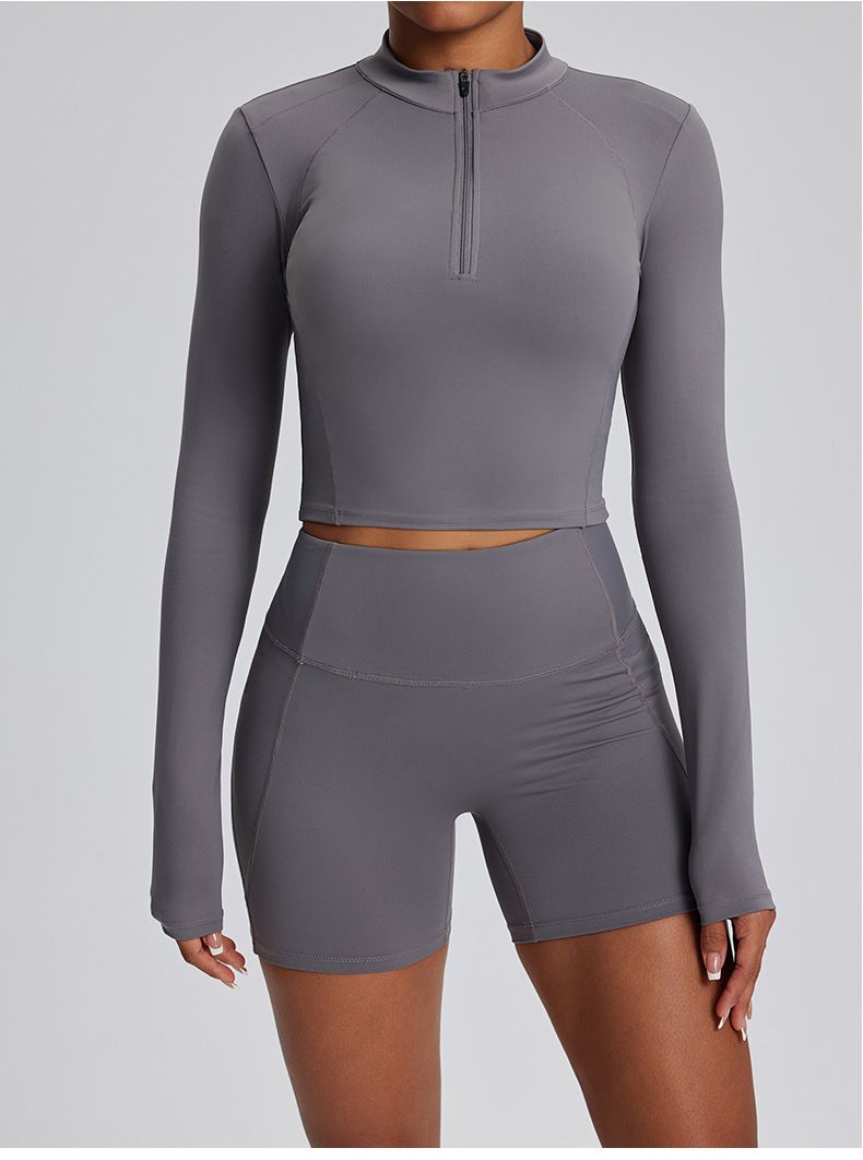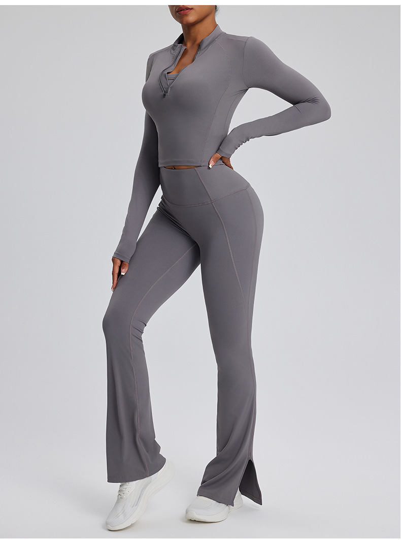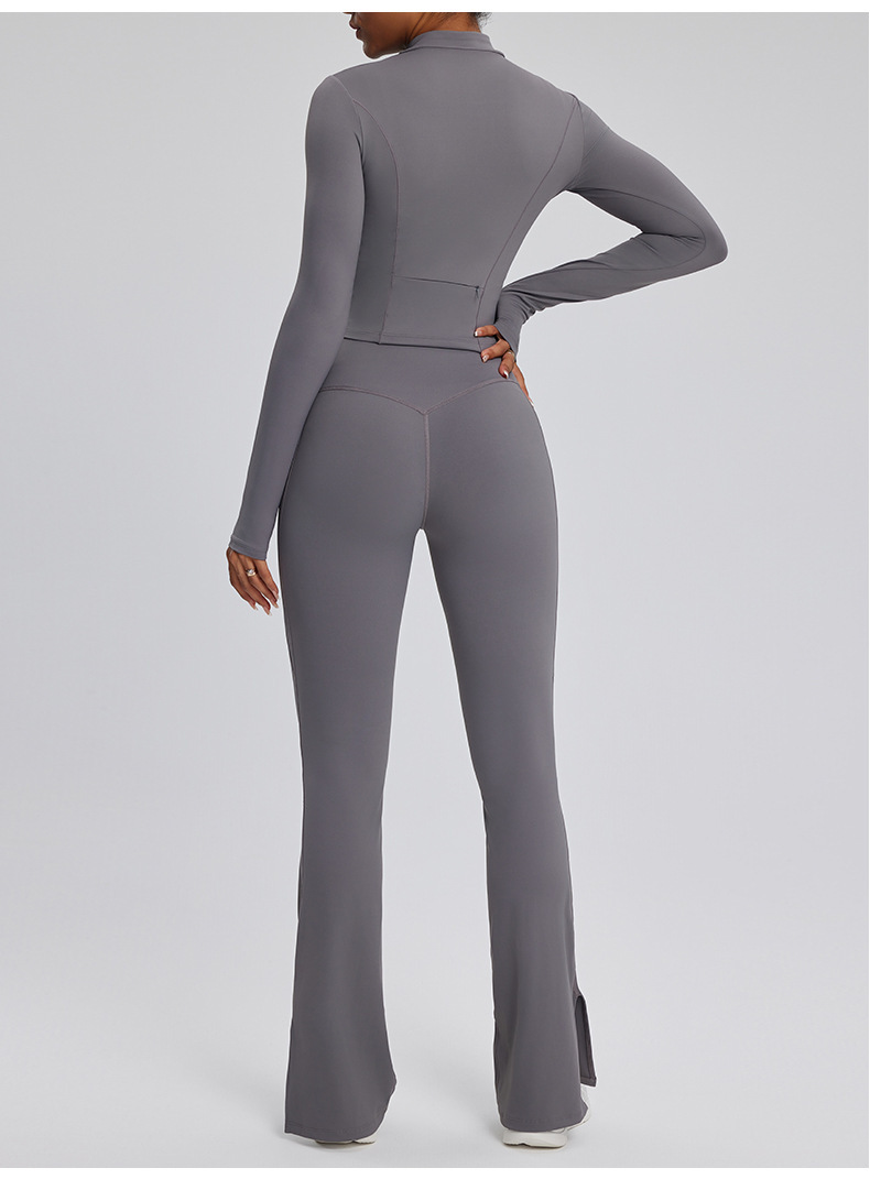 유럽과 미국의 요가 의류 정장 여성 필라테스 피트니스 의류 탑 여성 속건 스포츠 긴팔 재킷 바지 브래지어