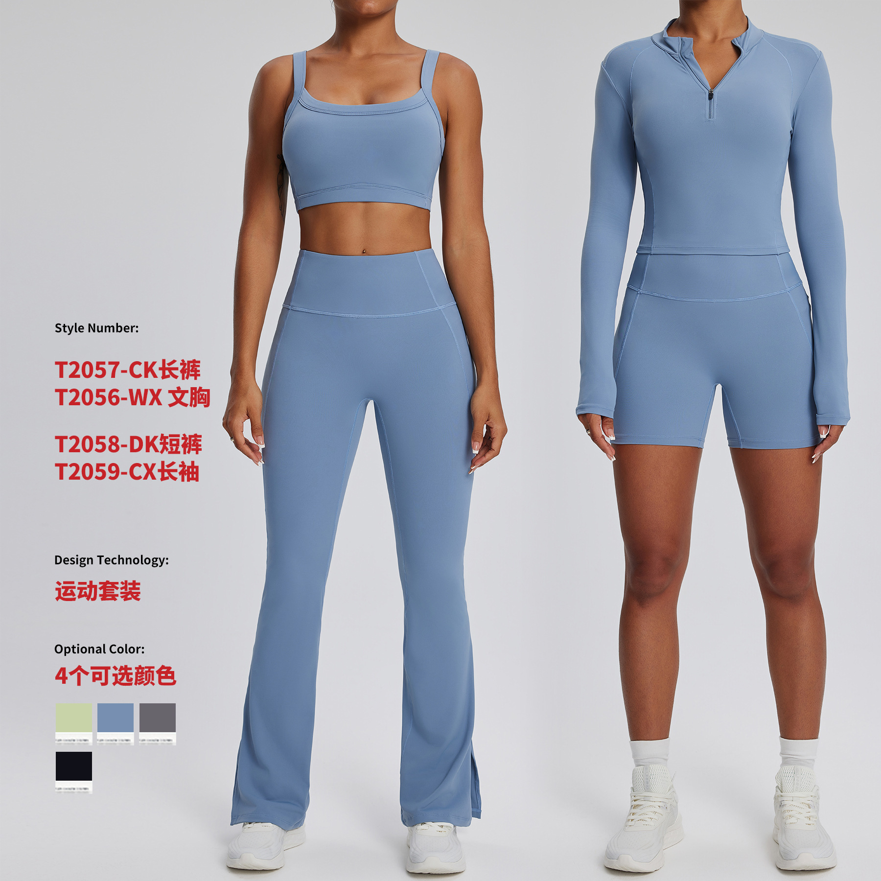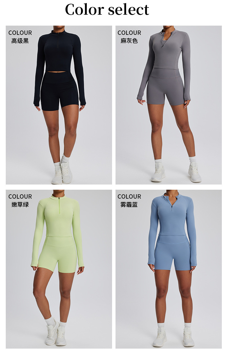 欧美瑜伽服套装女普拉提健身服上衣女士速干运动长袖外套长裤文胸