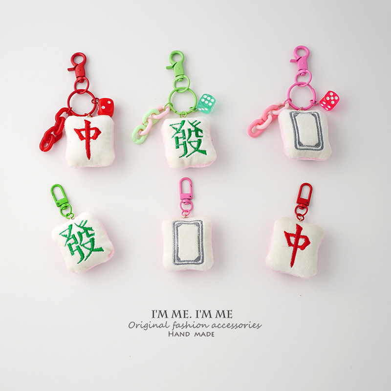 크리 에이 티브 플러시 마작 펜던트, 중국 유행 자동차 키 체인, 남성과 여성을위한 행운의 빨간색 중간 가방 펜던트, 선물 장식스토어 가기