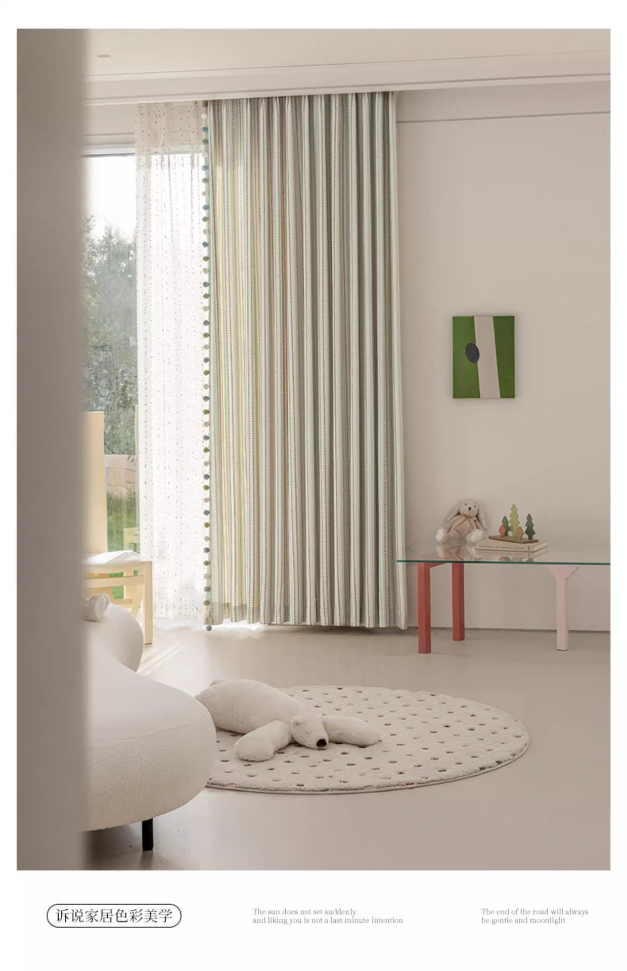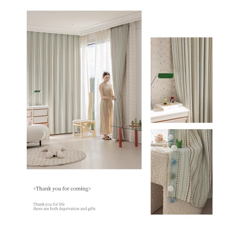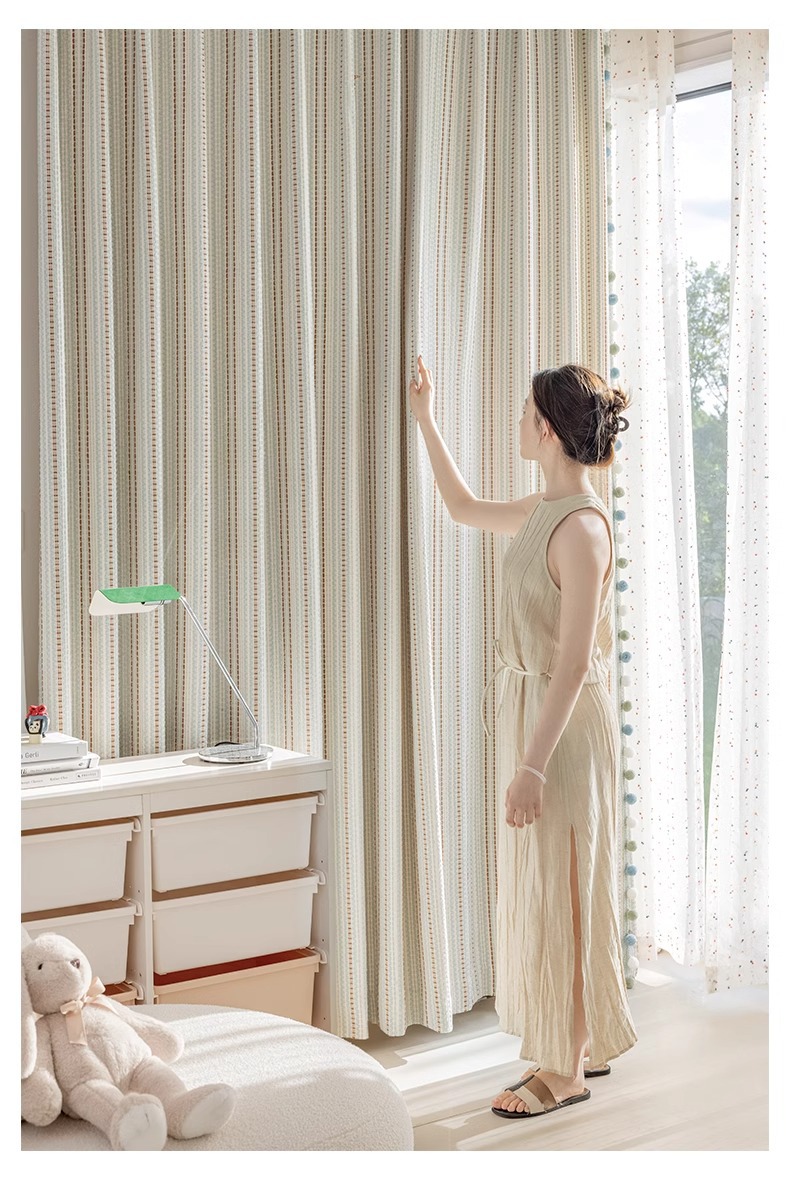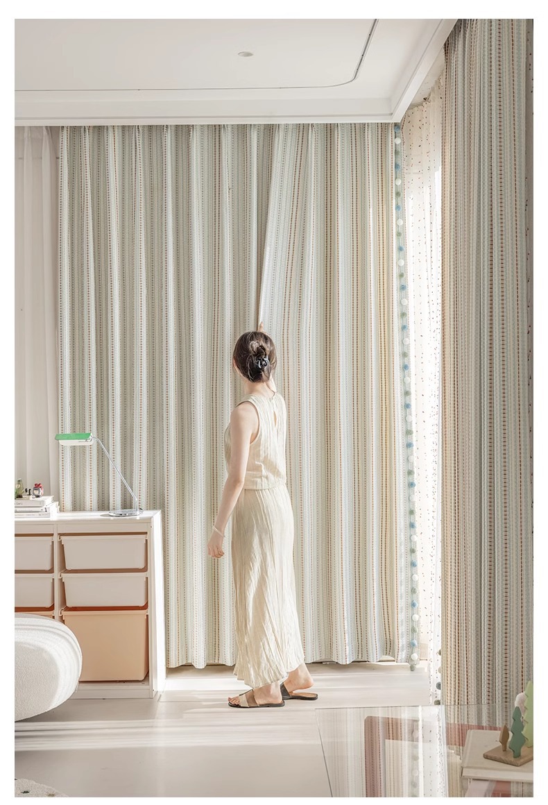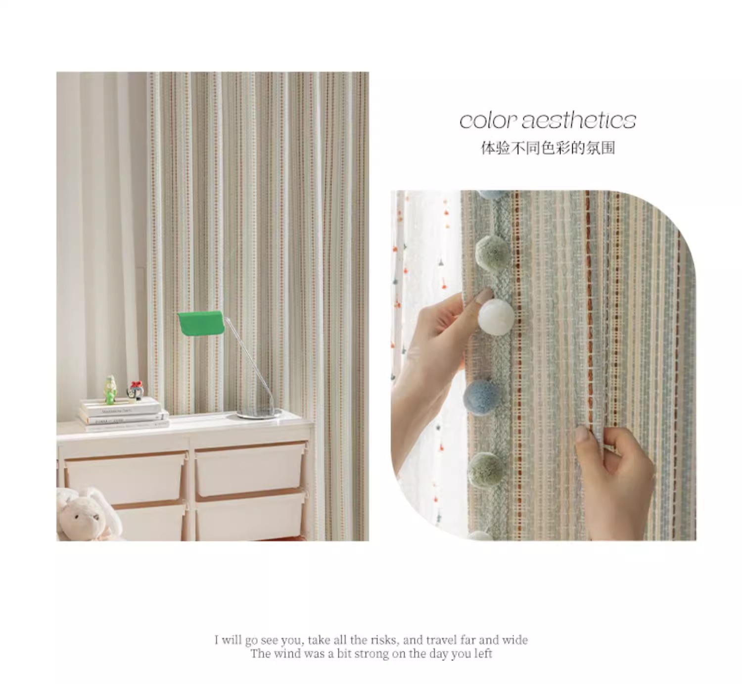 어린이방 면마 자카드 스트라이프 페어 아일 커튼 원단 남아 여아 침실 커튼 반암막 커튼 창가 커튼