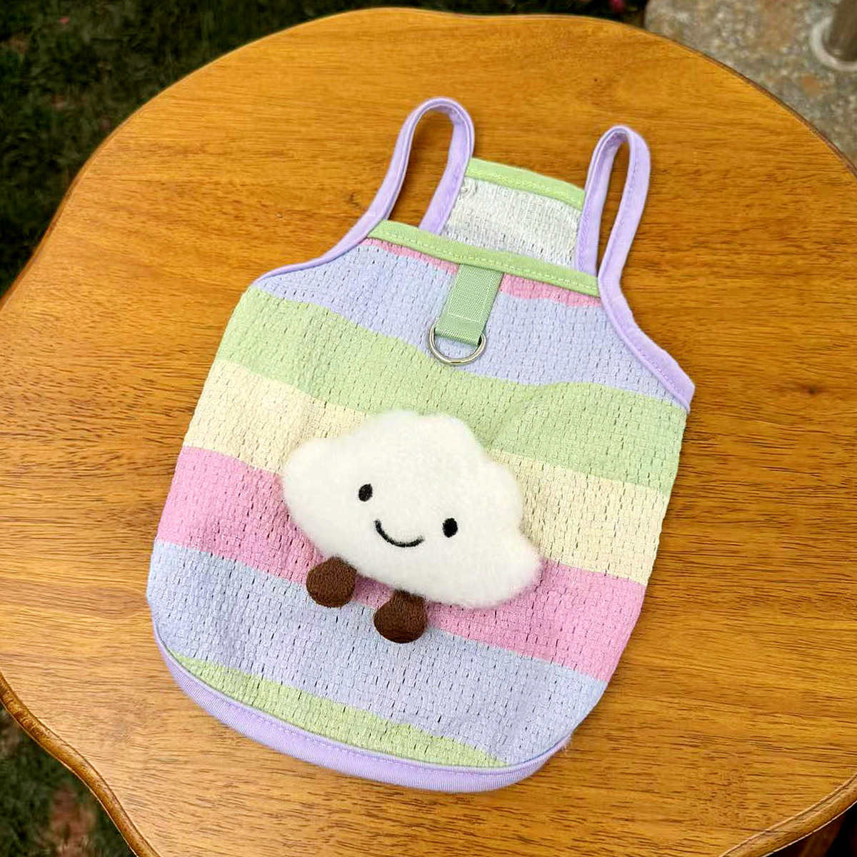 강아지 옷 무지개 줄무늬 구름 견인 슬링 봄과 여름 얇은 애완 동물 작은 강아지 포메라니안 비숑 테디