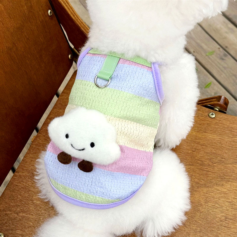 강아지 옷 무지개 줄무늬 구름 견인 슬링 봄과 여름 얇은 애완 동물 작은 강아지 포메라니안 비숑 테디스토어 가기