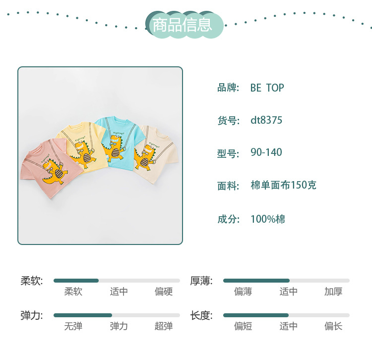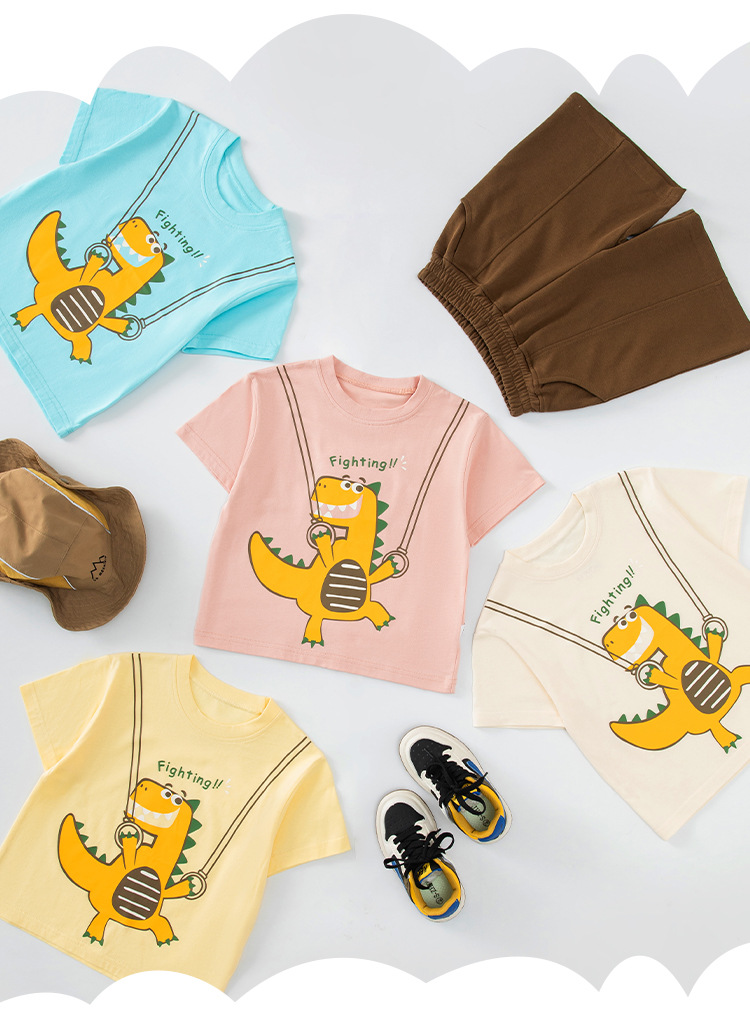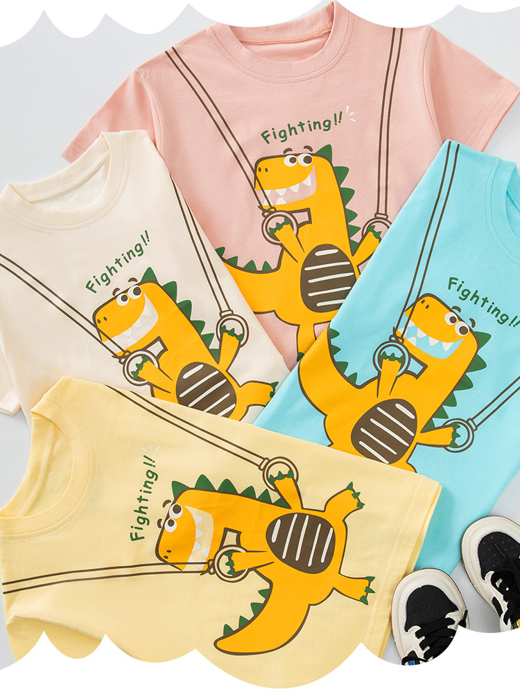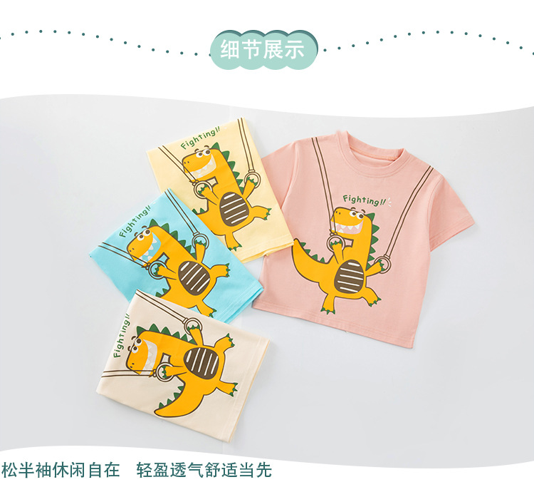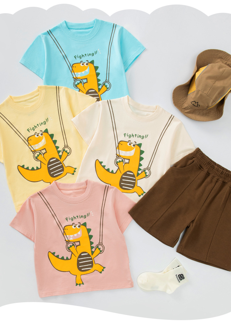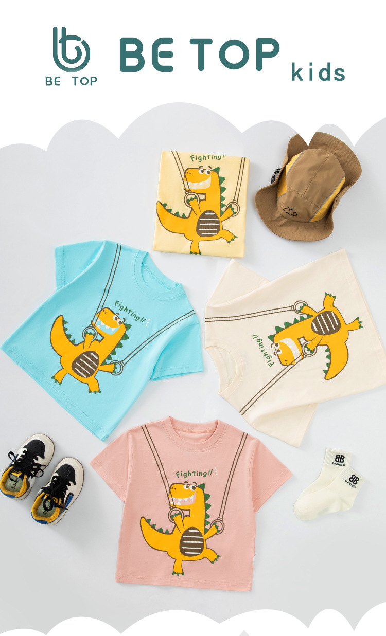 Betop 트렌디 한 아동 의류 여름 새로운 어린이 한국어 반팔 티셔츠 소년 아기 만화 공룡 드롭 배송