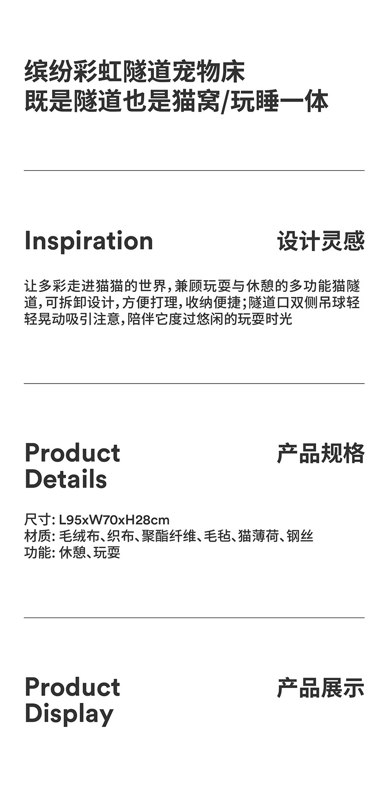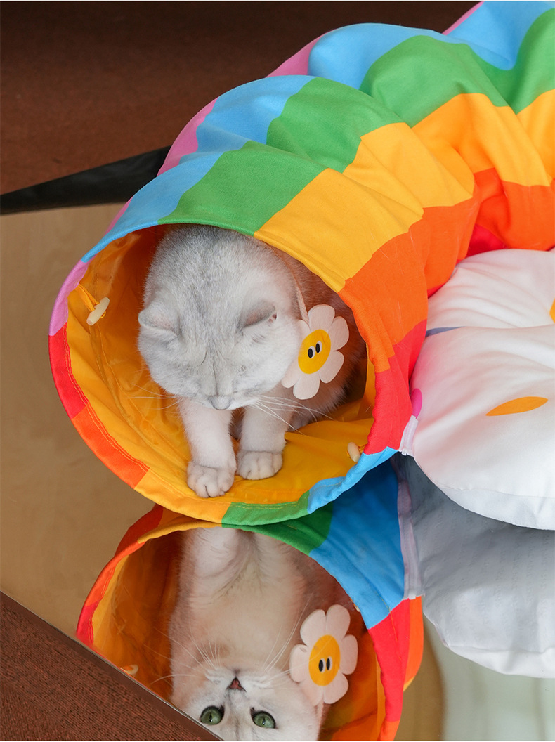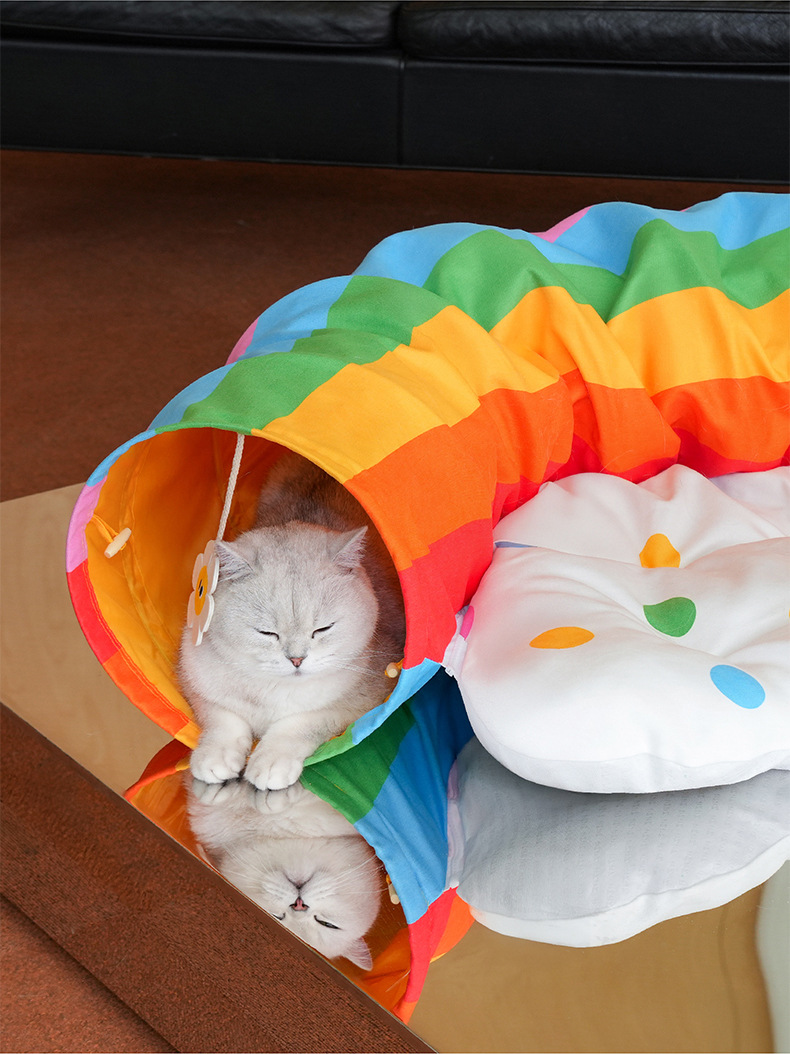 Zeze 레인보우 고양이 터널 사계절 범용 고양이 둥지 터널 탈부착 및 세척 가능 놀이 및 휴식 올인원 고양이 피난처