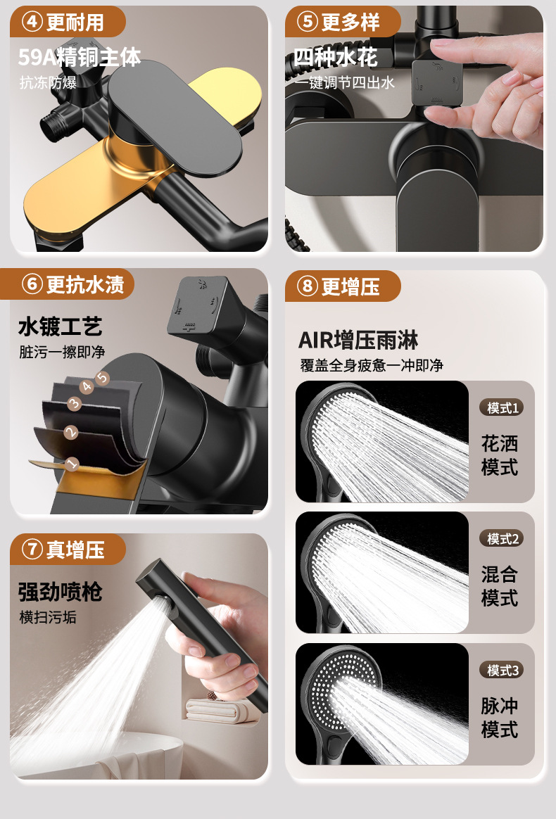 샤워 헤드 세트 가압 대형 빗물 스프링클러 가정용 욕실 욕실 전체 구리 수도꼭지 샤워기