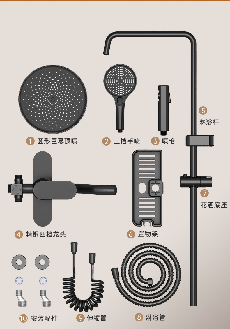 샤워 헤드 세트 가압 대형 빗물 스프링클러 가정용 욕실 욕실 전체 구리 수도꼭지 샤워기스토어 가기