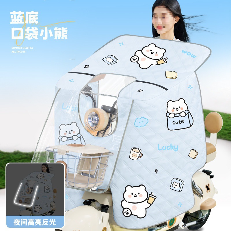 전기자동차 앞유리, 부모자식 여름 일체형 자외선 차단제, 소형 배터리 자동차, 바람과 비 차단, 사계절 모두 사용 가능