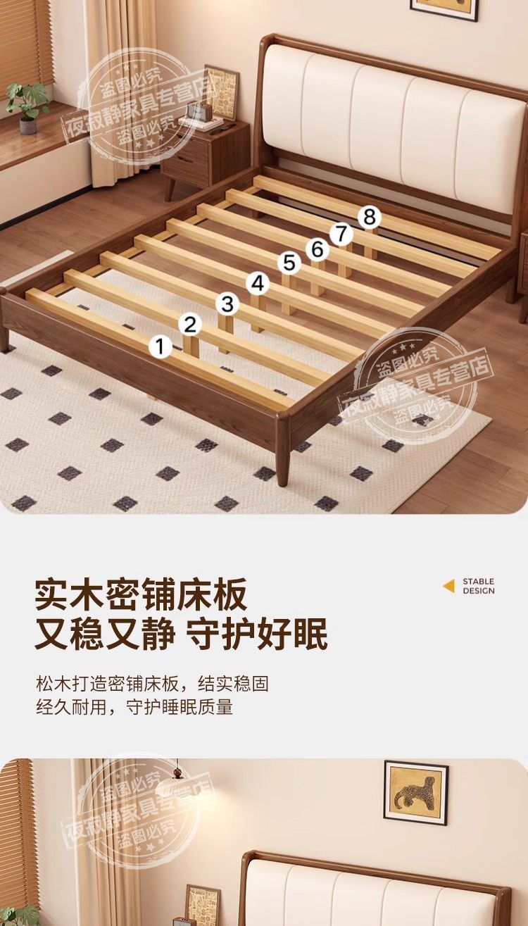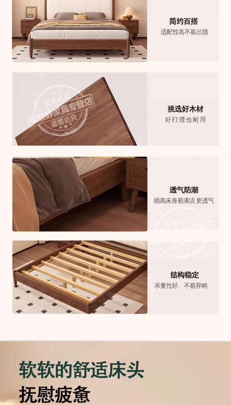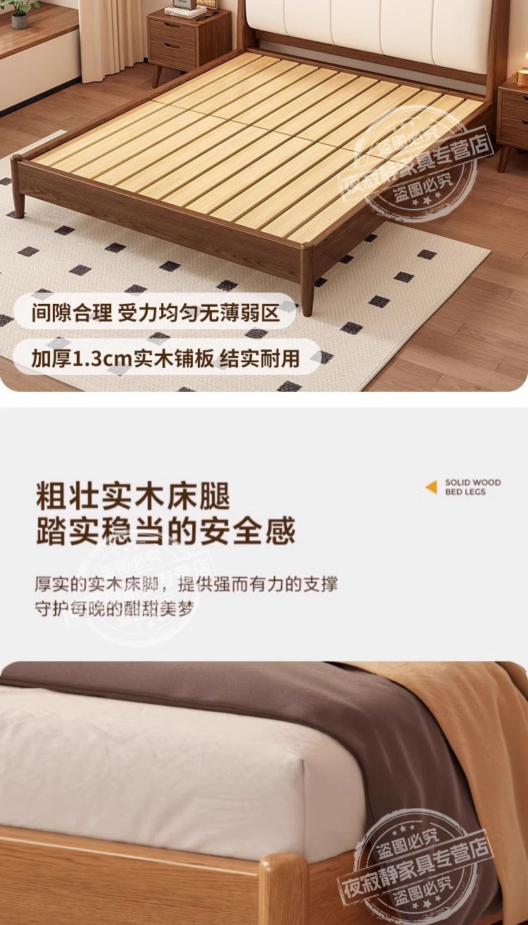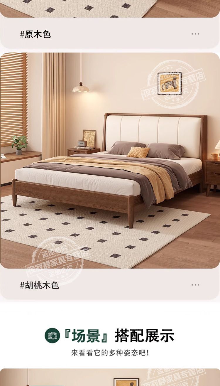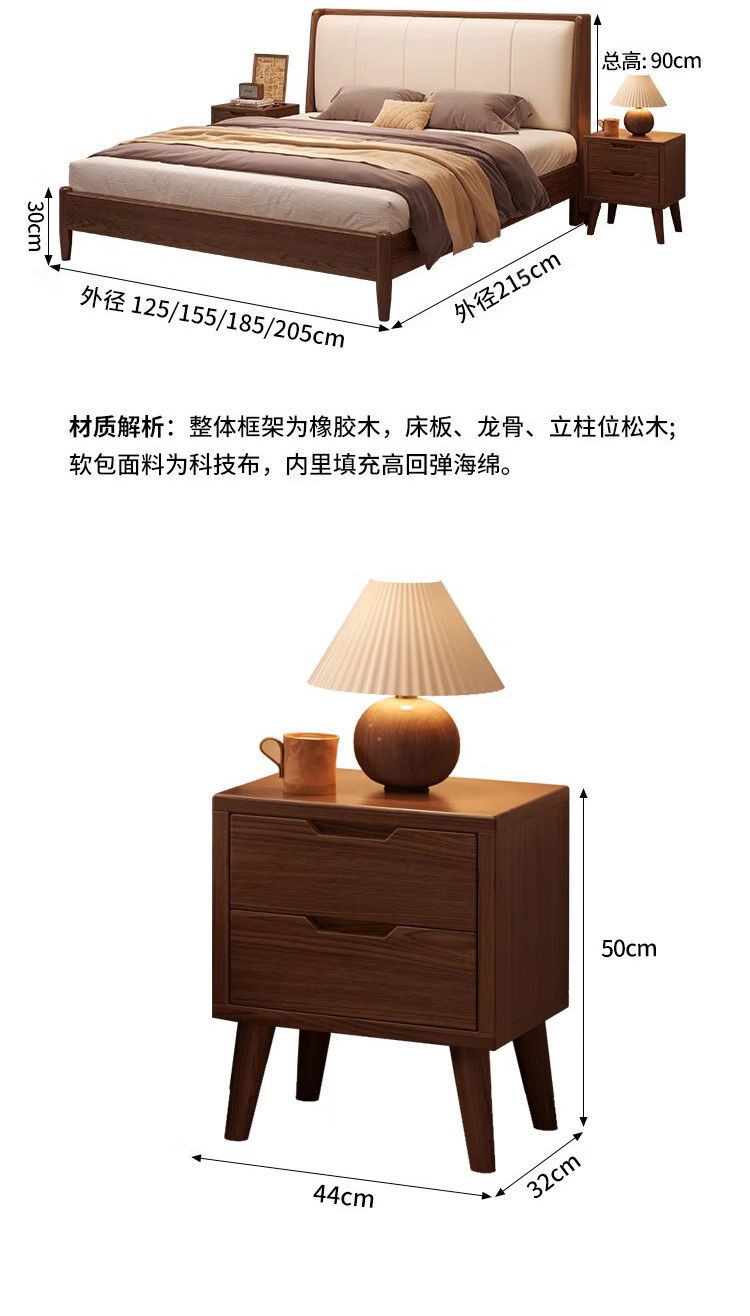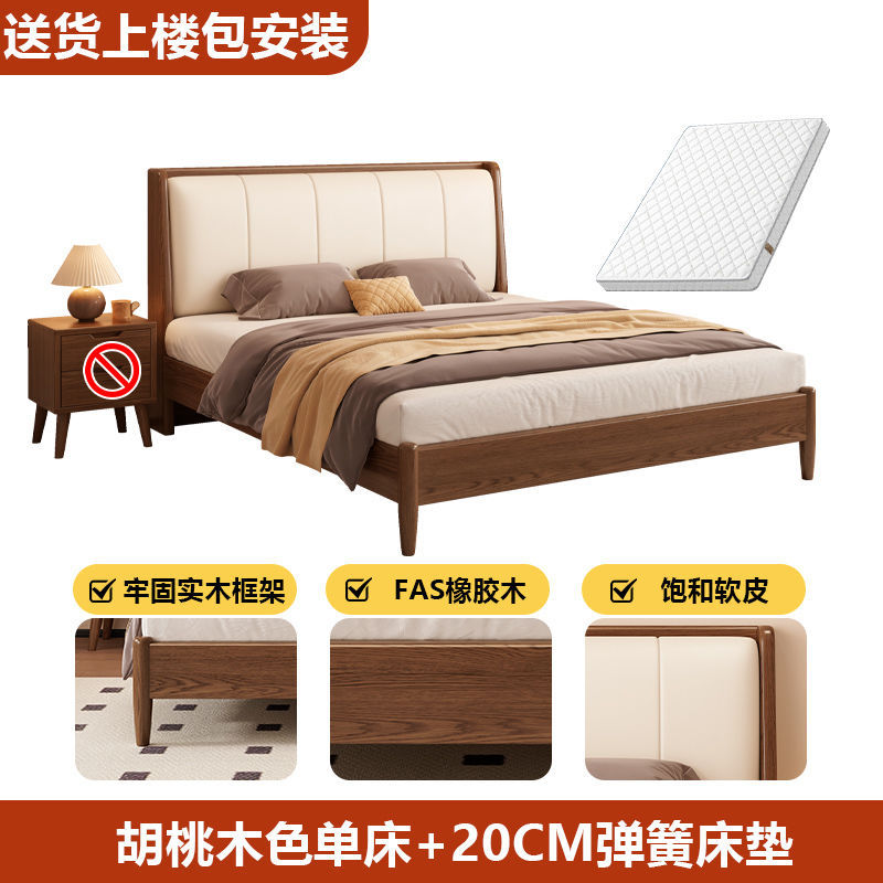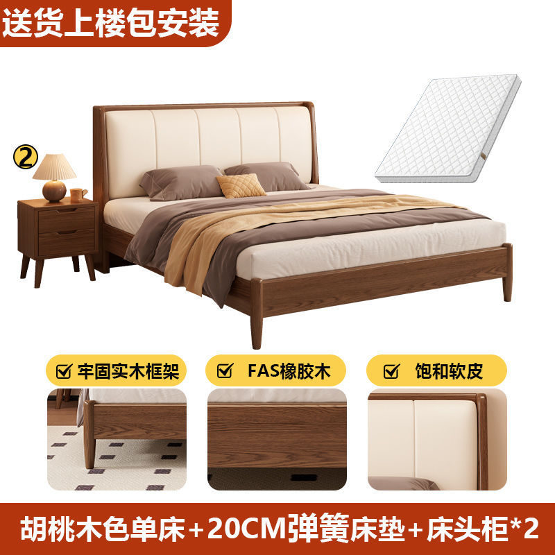 • 호두색 침대 흰색 부드러운 등받이 + 20cm 스프링 매트리스 + 침대 옆 테이블 * 1