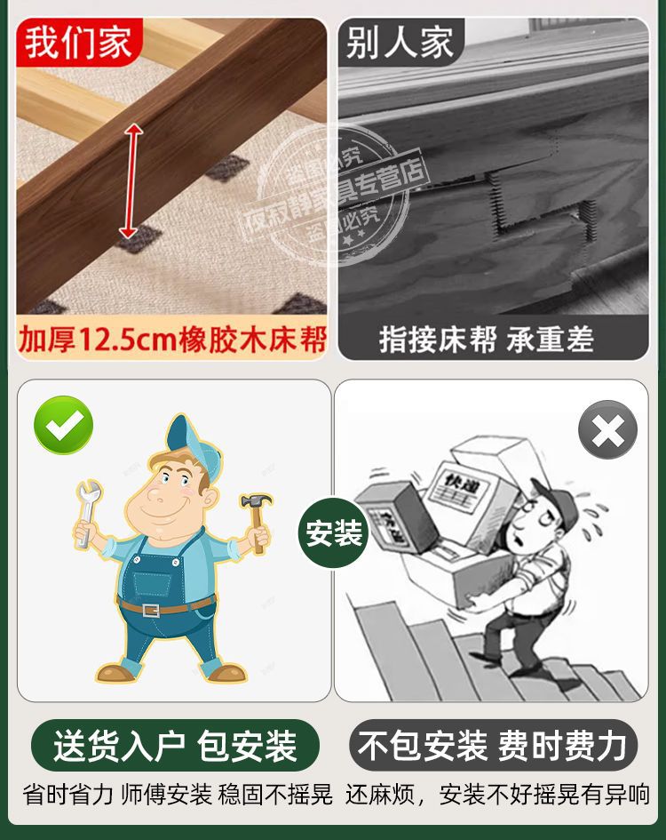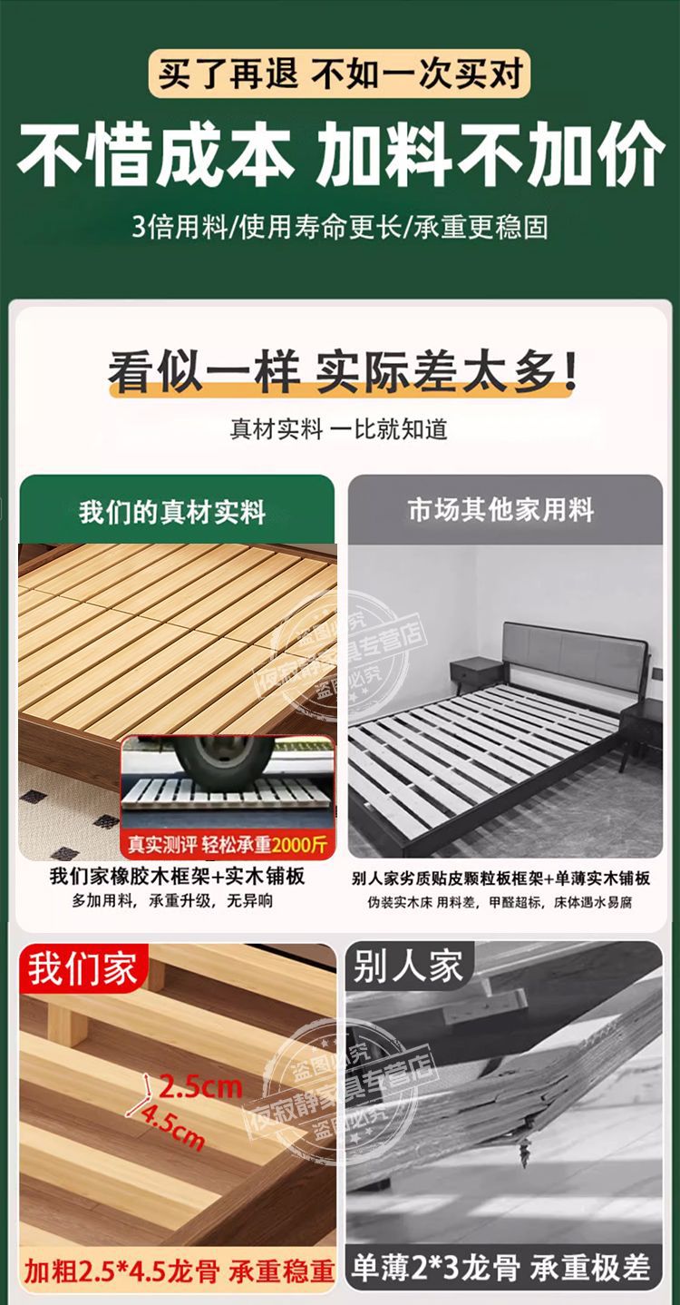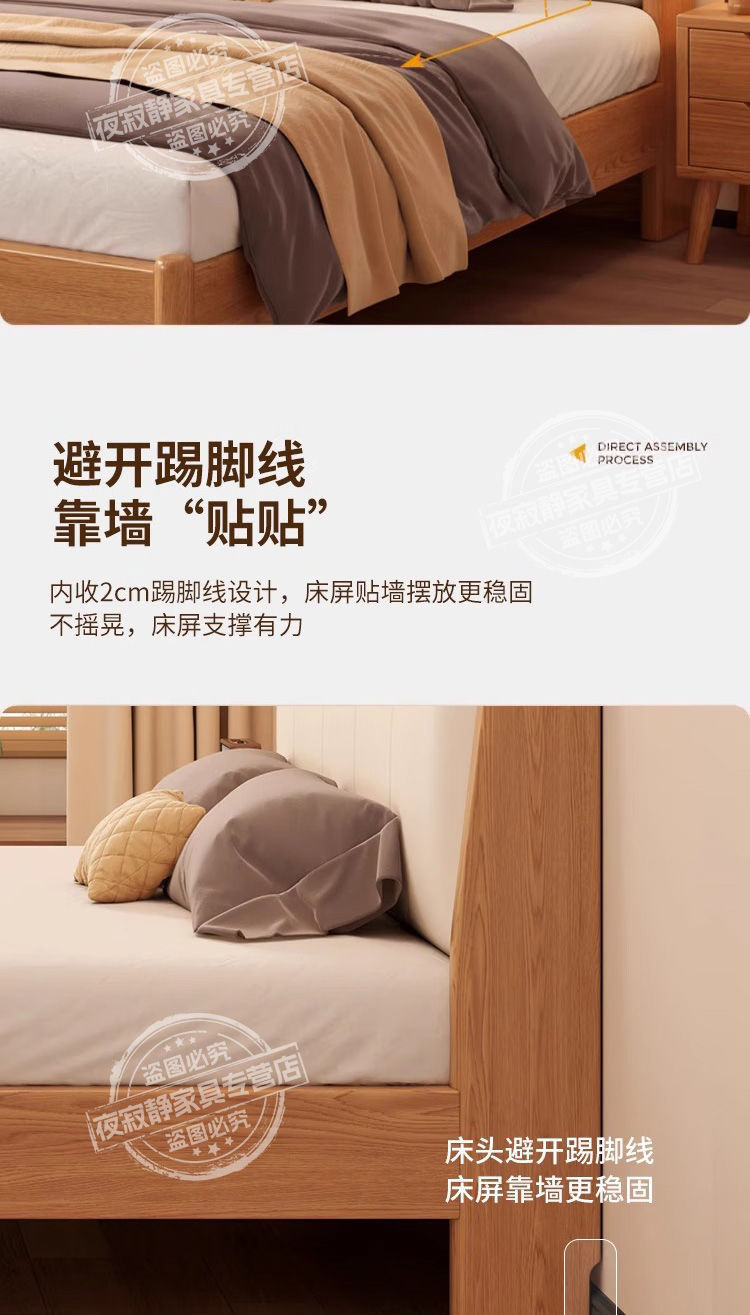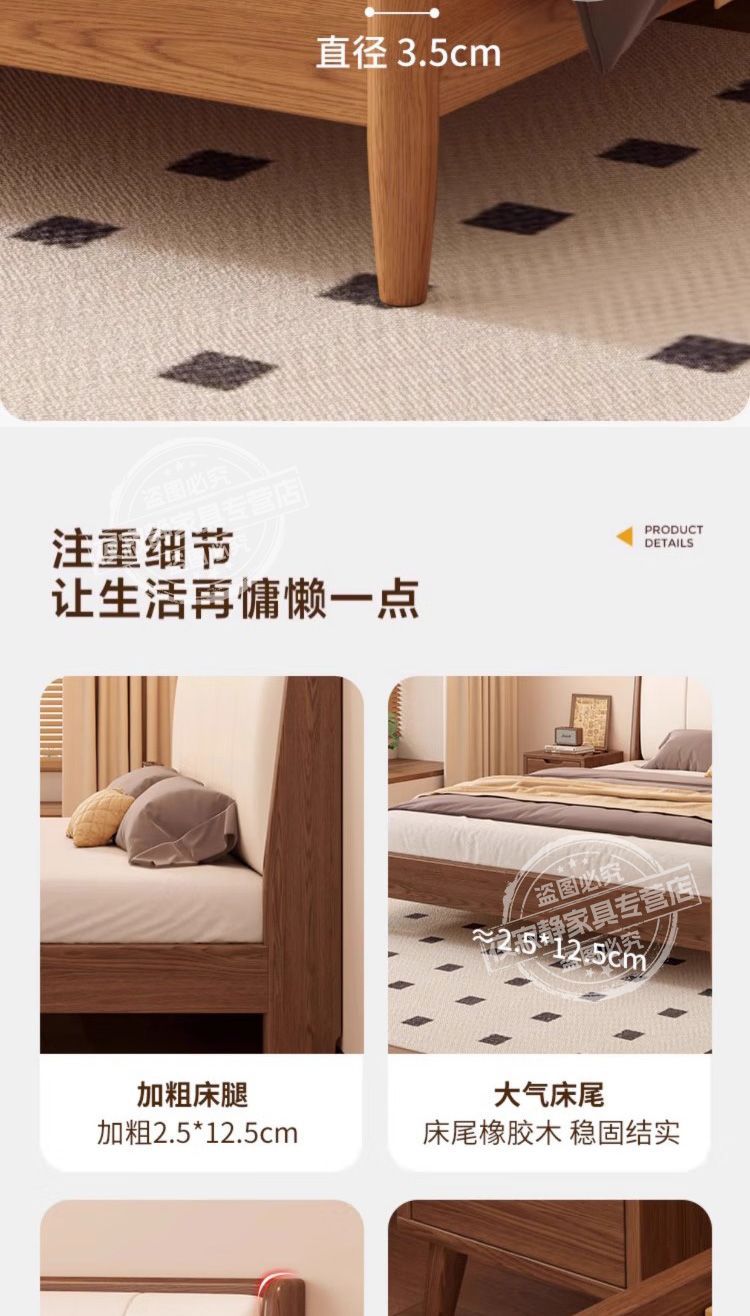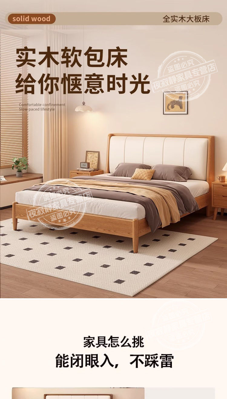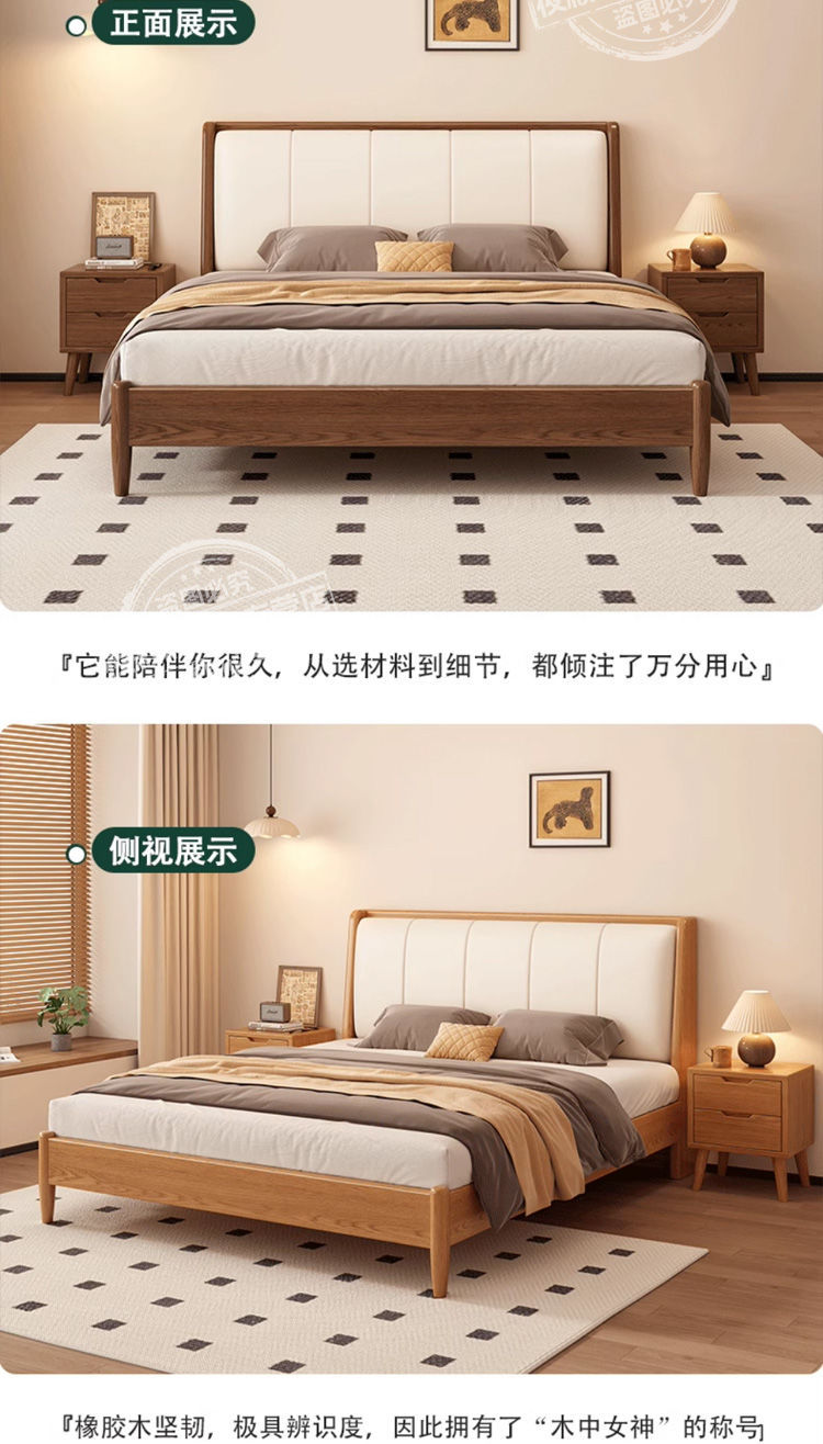원목 침대, 고무나무 침대, 원목 대형 침대, 북유럽 대형 침대, 모던 심플 일본식 침실, 소형 아파트 더블 침대스토어 가기