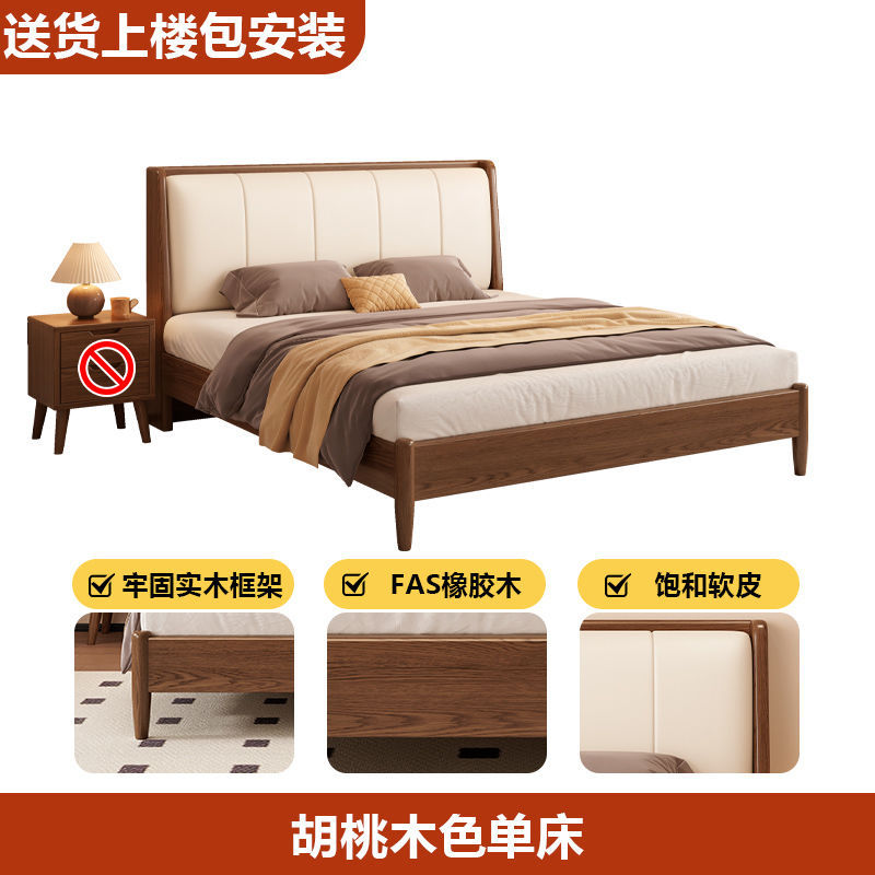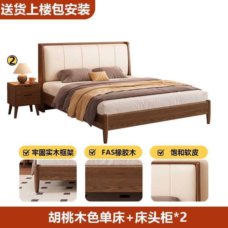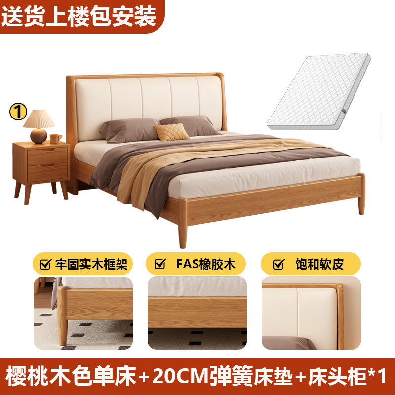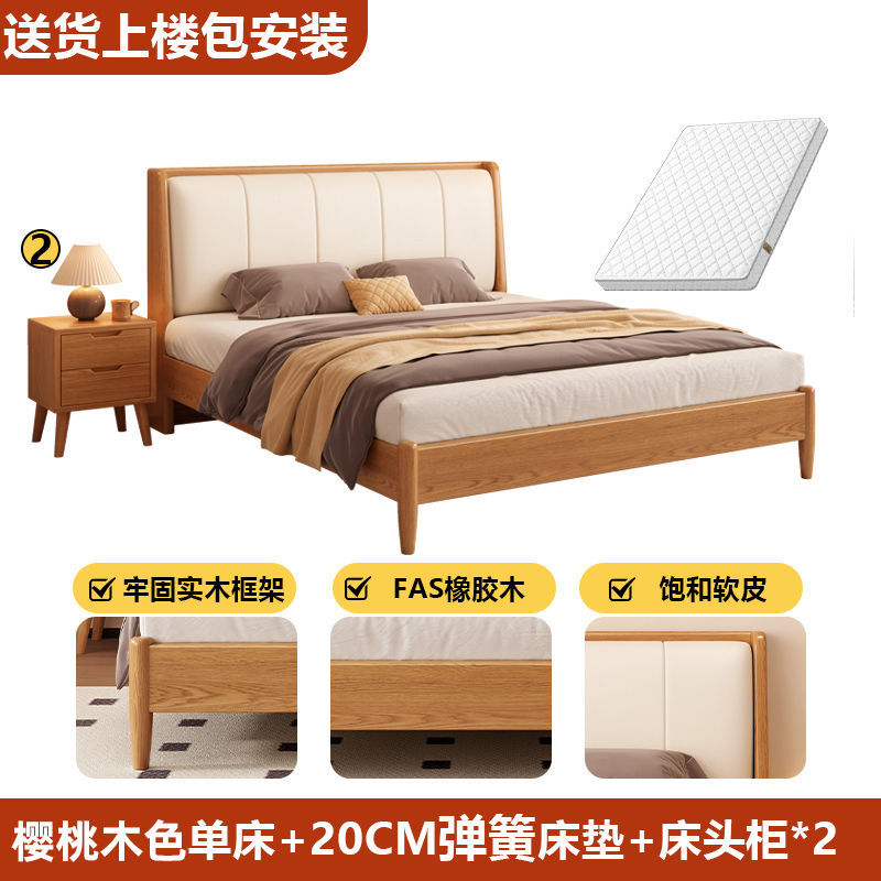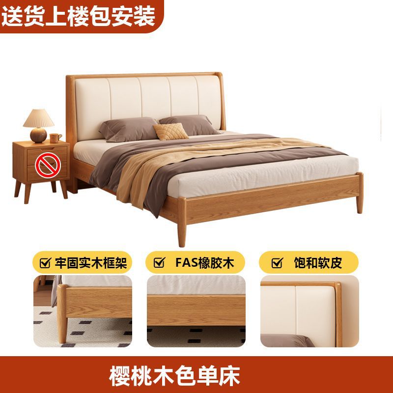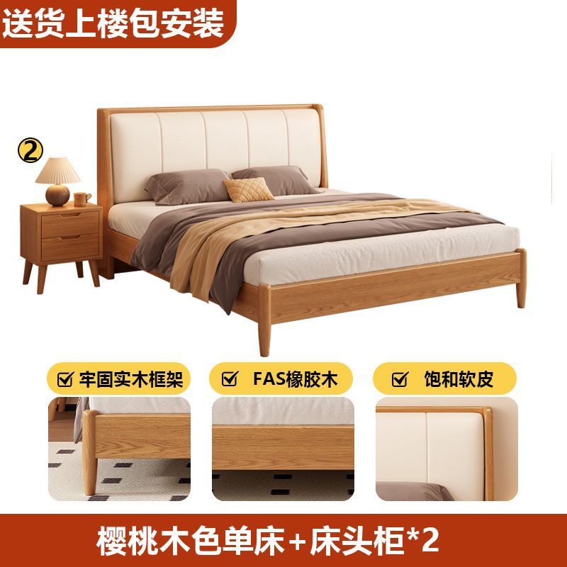 원목 침대, 고무나무 침대, 원목 대형 침대, 북유럽 대형 침대, 모던 심플 일본식 침실, 소형 아파트 더블 침대