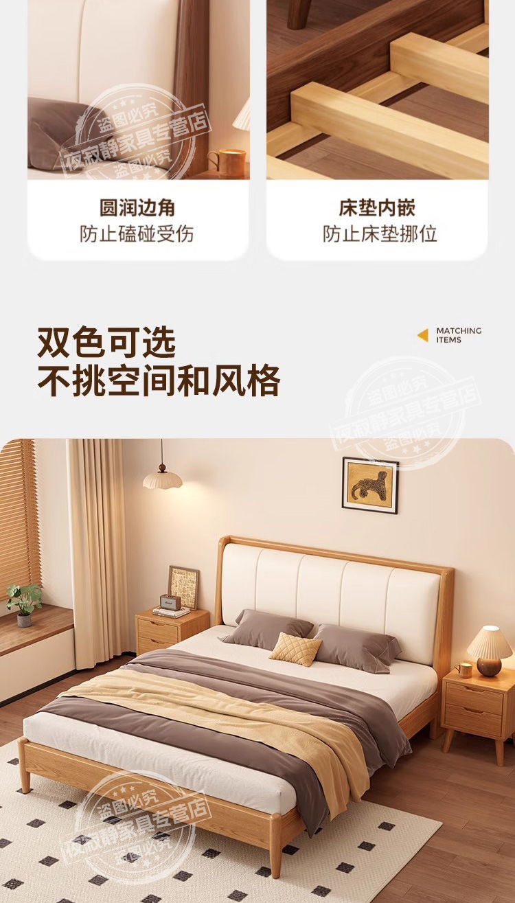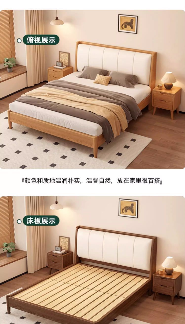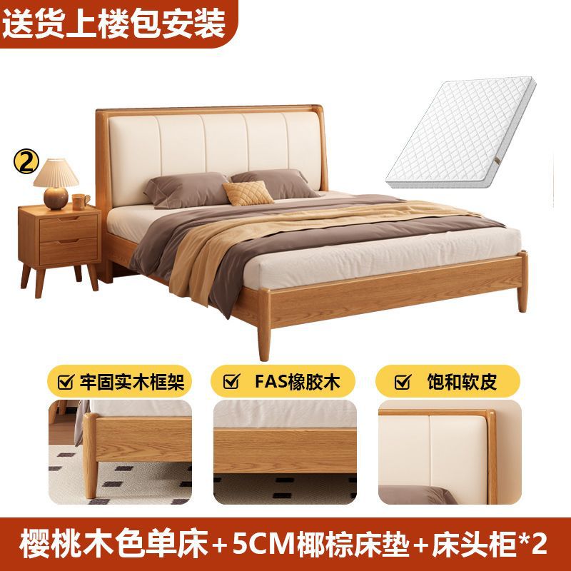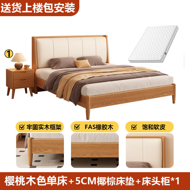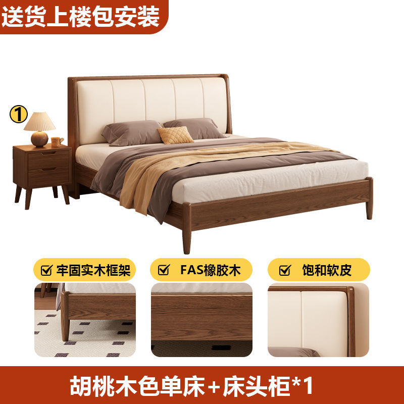 원목 침대, 고무나무 침대, 원목 대형 침대, 북유럽 대형 침대, 모던 심플 일본식 침실, 소형 아파트 더블 침대