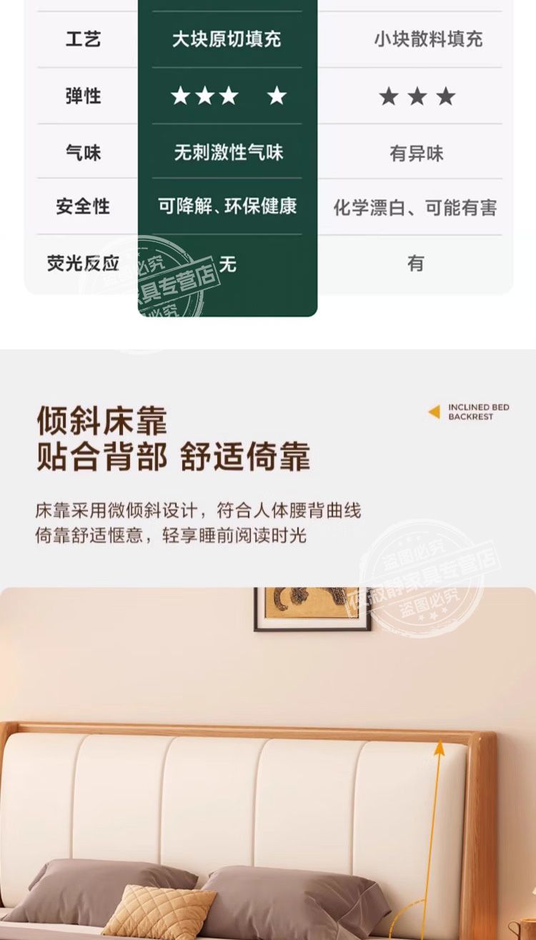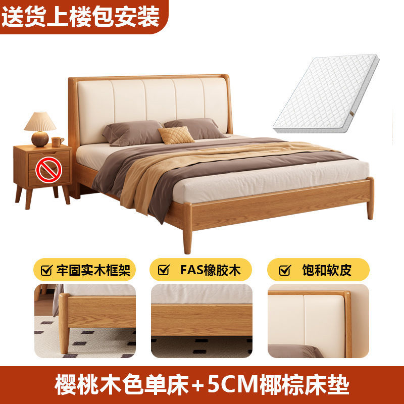 • 체리색 침대 흰색 부드러운 등받이 + 5cm 코코넛 야자 매트리스 + 침대 옆 테이블 * 1