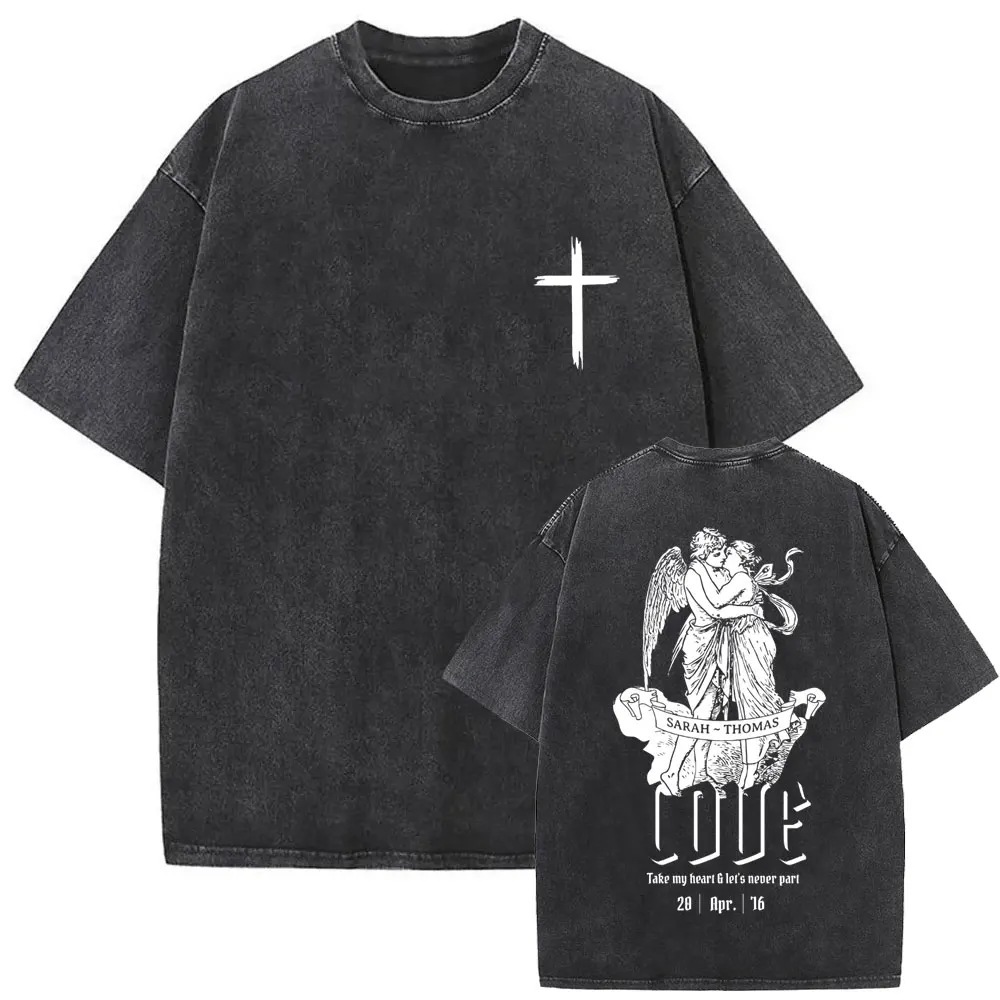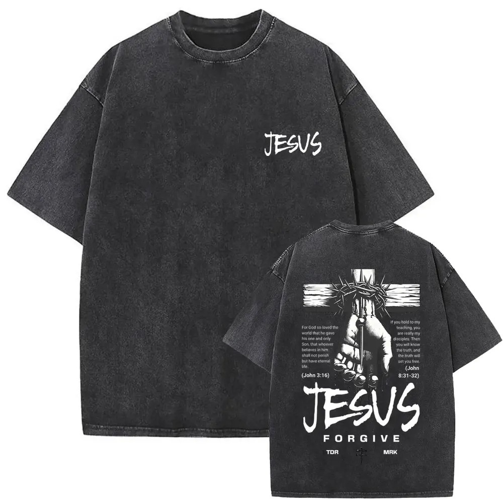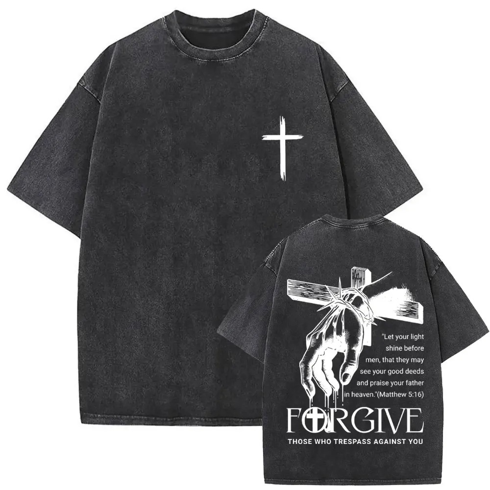 국경 간 AliExpress Forgive Them Father 빈티지 워시 티셔츠 남성 여성 고딕