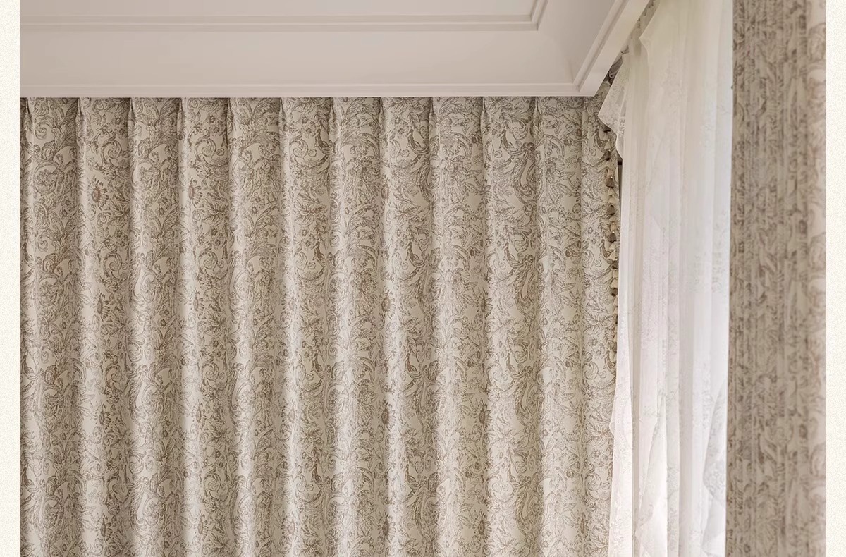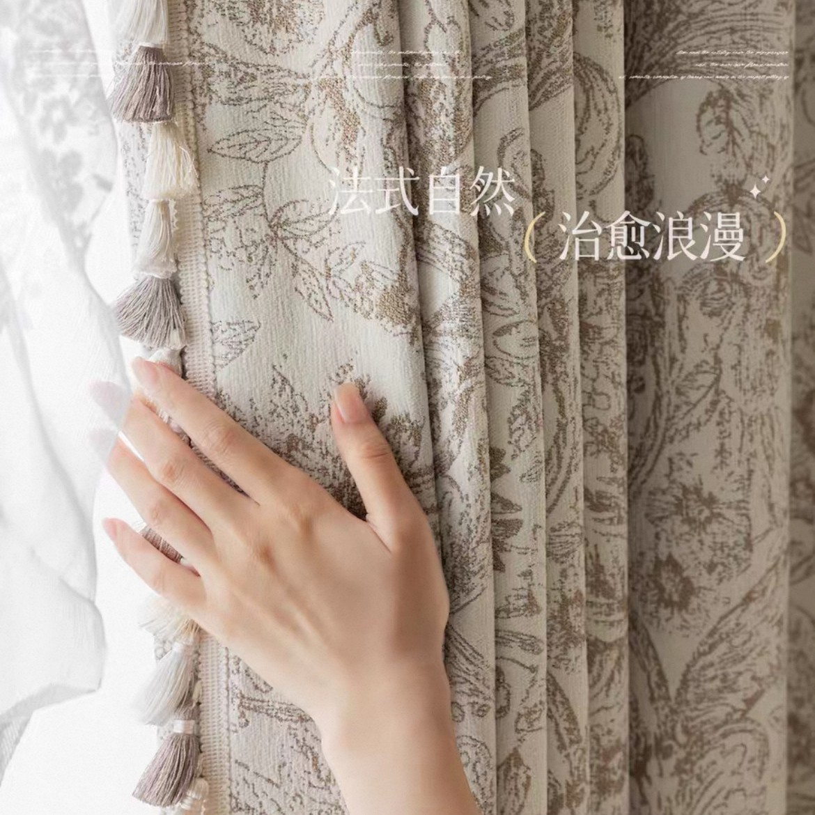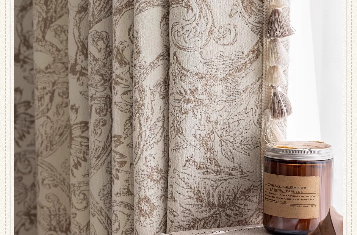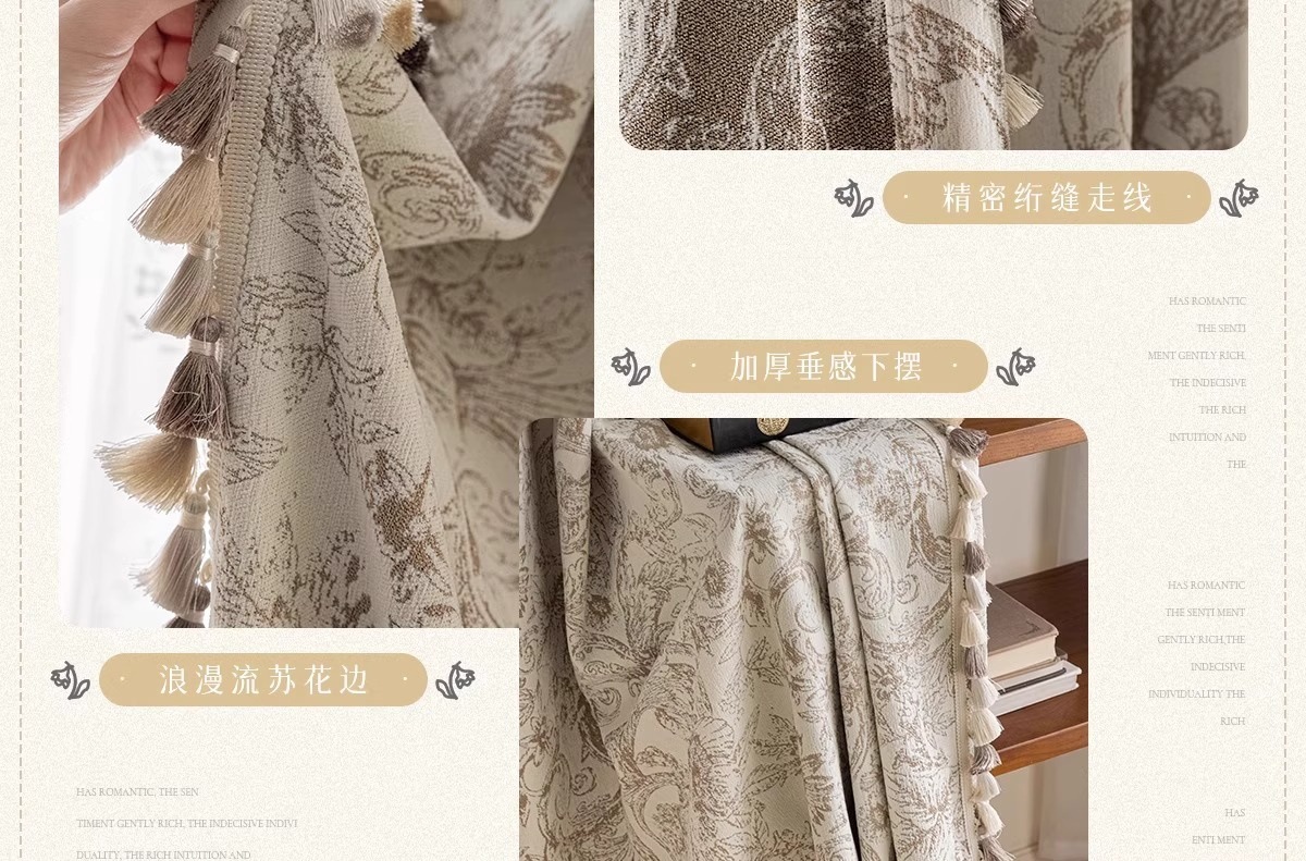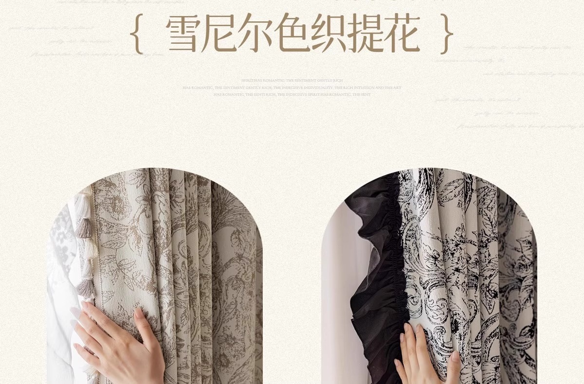 중세 스타일 라이트 럭셔리 프렌치 모리스 거실 블랙 아웃 커튼 침실 셔닐 복고풍 자카드 커튼 Shaoxing Keqiao