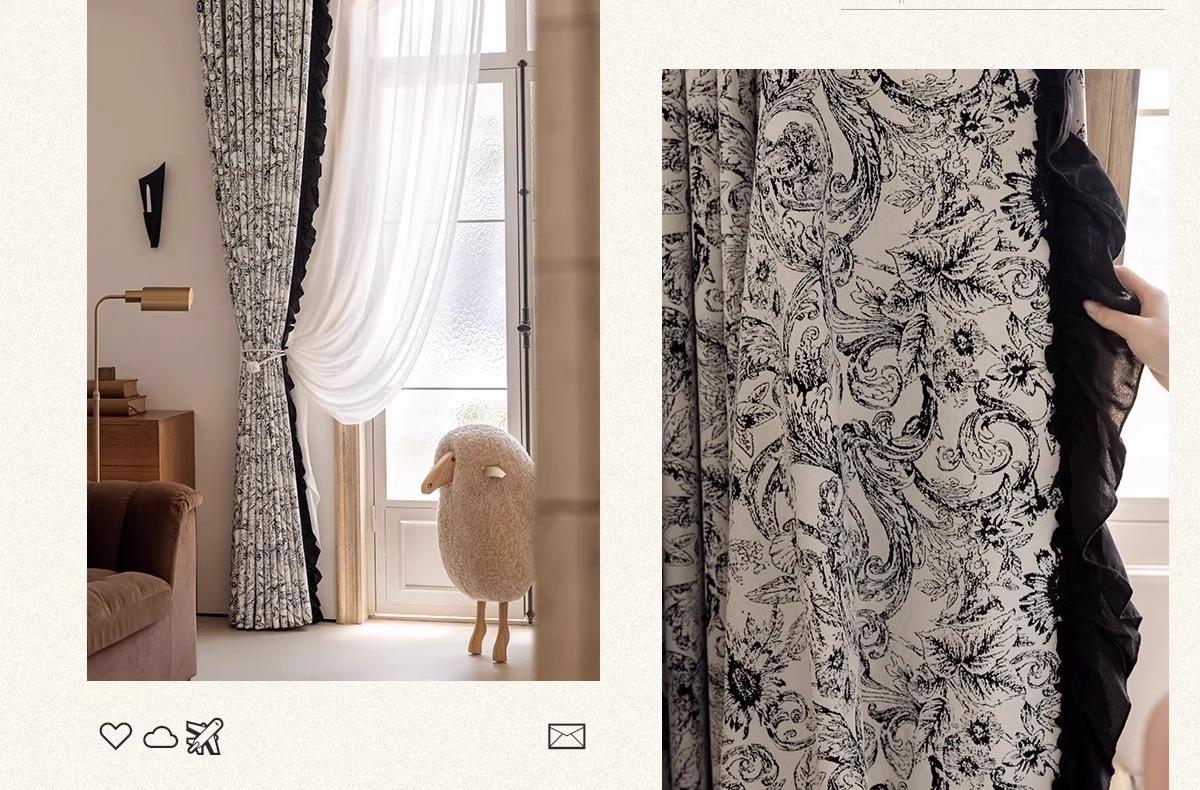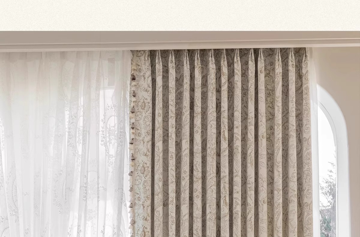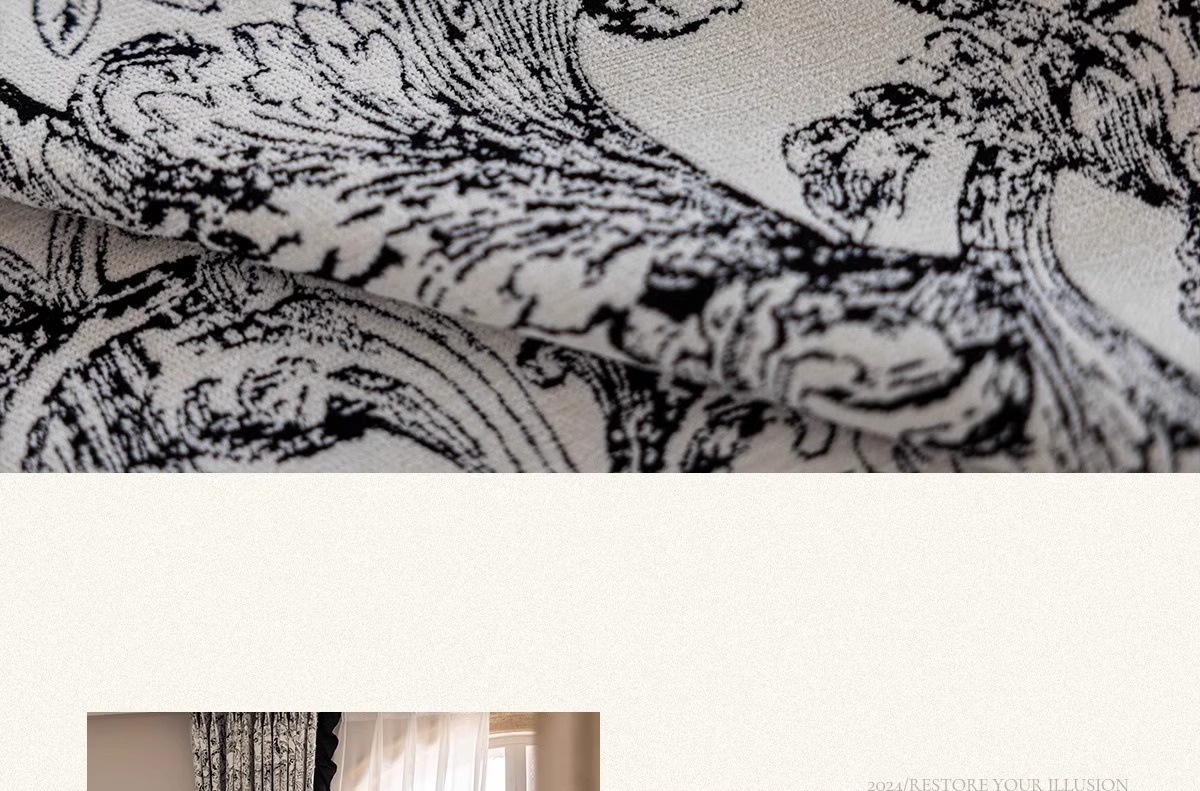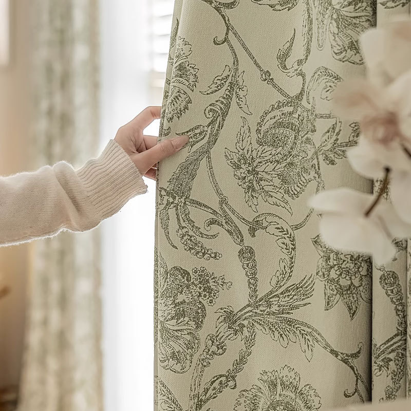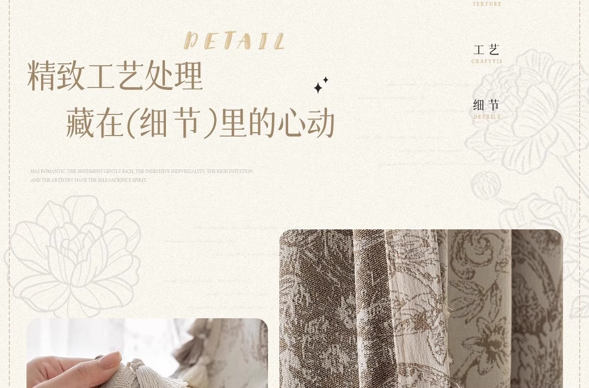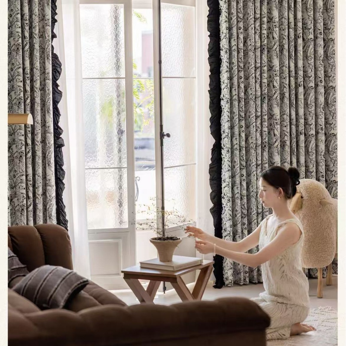 중세 스타일 라이트 럭셔리 프렌치 모리스 거실 블랙 아웃 커튼 침실 셔닐 복고풍 자카드 커튼 Shaoxing Keqiao