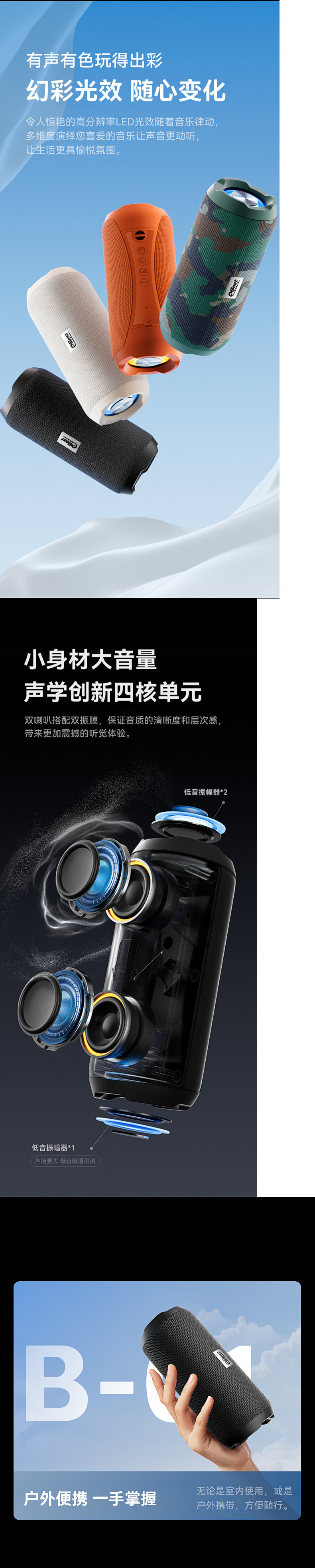 무선 블루투스 스피커, 야외 휴대용 저음 소형 강철 대포, 대용량, 고품질, 긴 배터리 수명, 사이클링 및 러닝 스피커스토어 가기