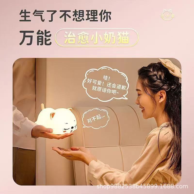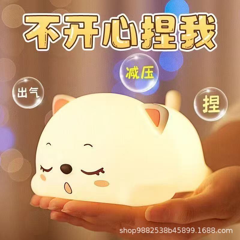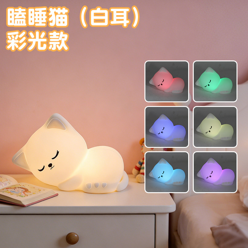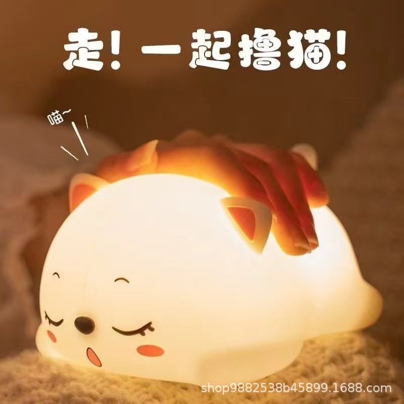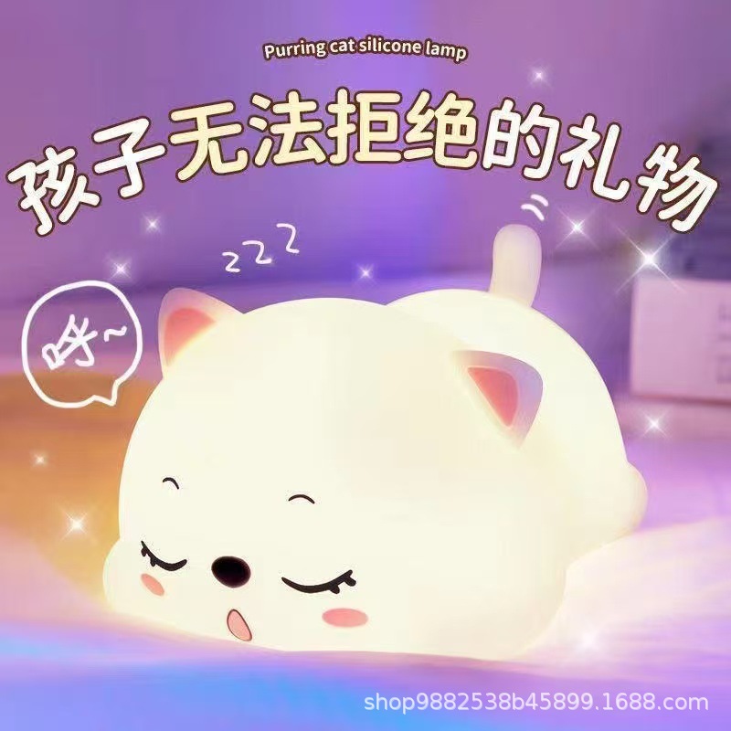 인기 폭발 코골이 고양이 실리콘 무드등, 터치램프, 어린이 장난감, 창의적인 테이블 램프, 다채로운 분위기 조명, 침대 옆 램프스토어 가기