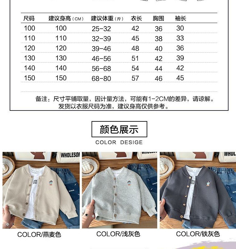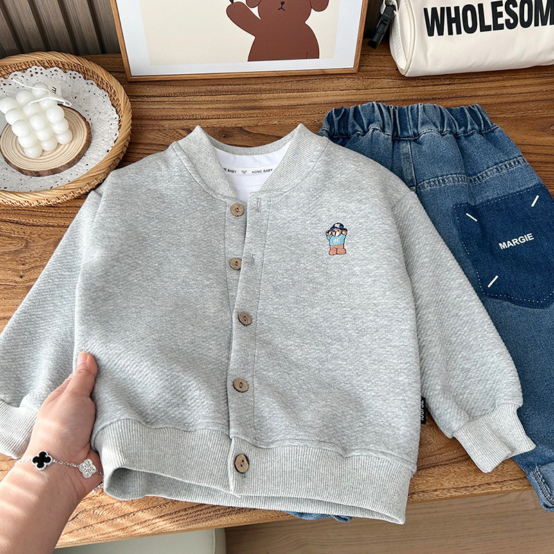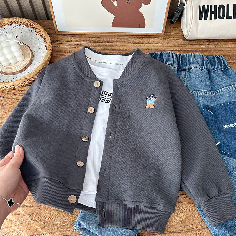 소년 코트 2025 새로운 아기 야구 유니폼 봄 의류 아동 캐주얼 탑 서양식 봄, 가을 소년 카디건
