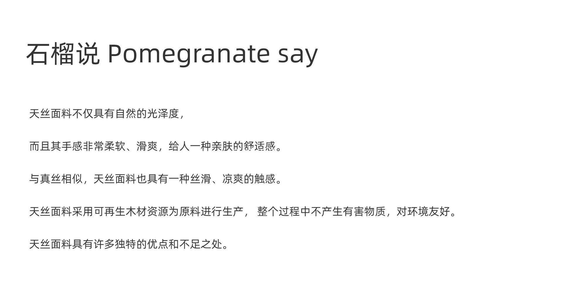 任何面料都有其优缺点,天丝面料易皱,晾晒可以平摊平整,四角四边拉伸