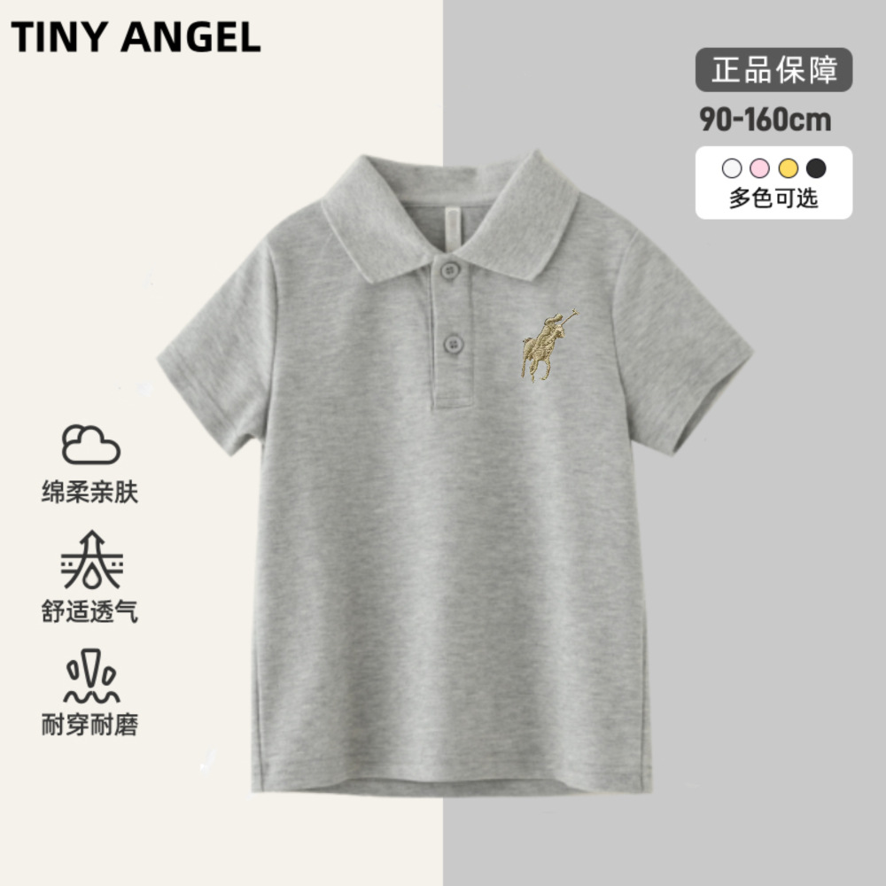 남아용 폴로 셔츠, 여름용 얇고 통기성이 뛰어난 라펠 탑, 중대형 아동 및 학생 스타일 반팔 티셔츠, 여름 교복스토어 가기