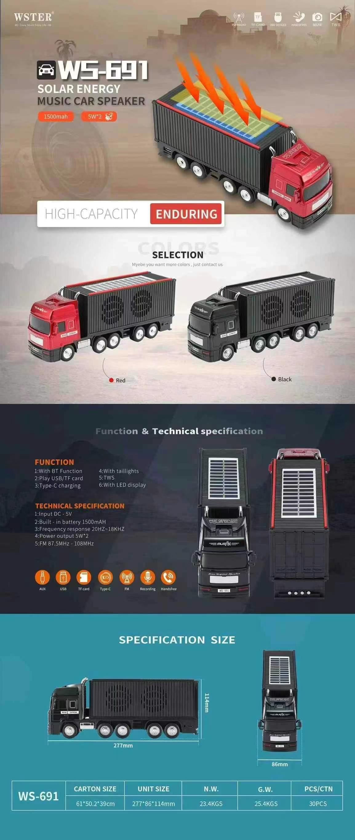 WS-691 새로운 스팟 클래식 자동차 모델 무선 소형 오디오 홈 자동차 슈퍼 서브 우퍼 블루투스 스피커