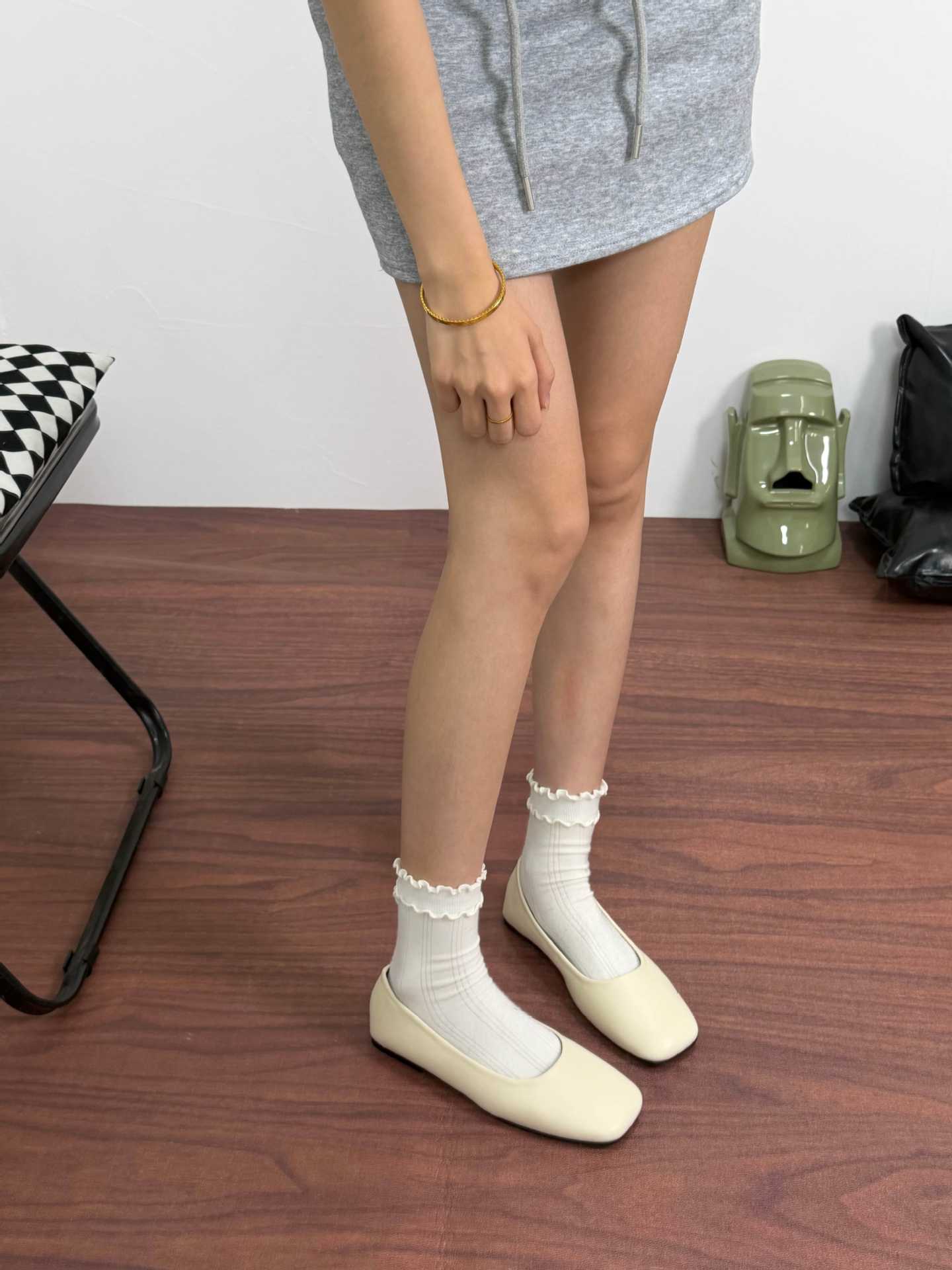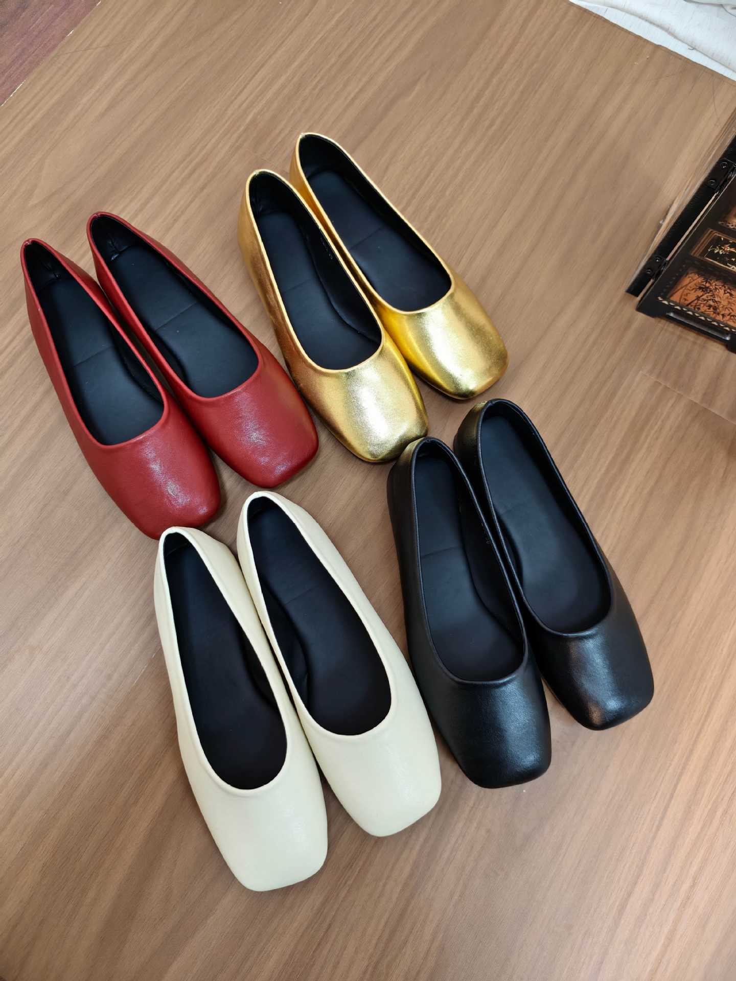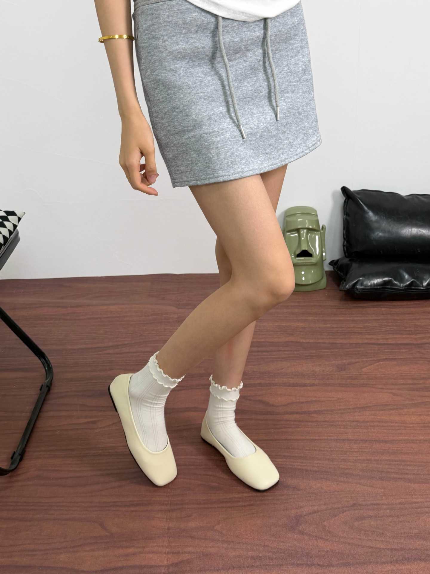 인터넷 축하 같은 스타일 봄 플랫 발레 신발 미니멀리스트 레트로 스퀘어 발가락 우유 신발 하이 버전 틈새 소프트 가죽 싱글 신발 로퍼