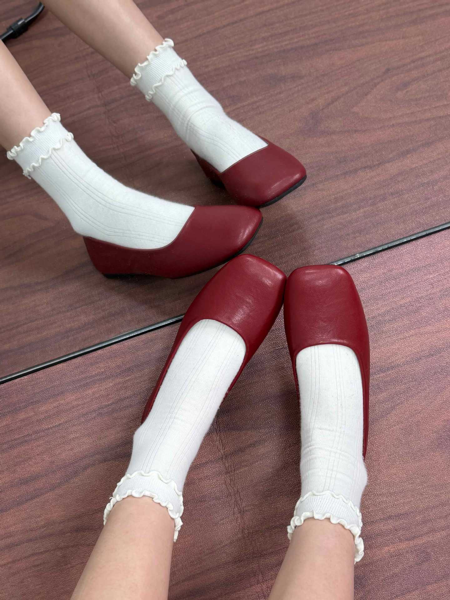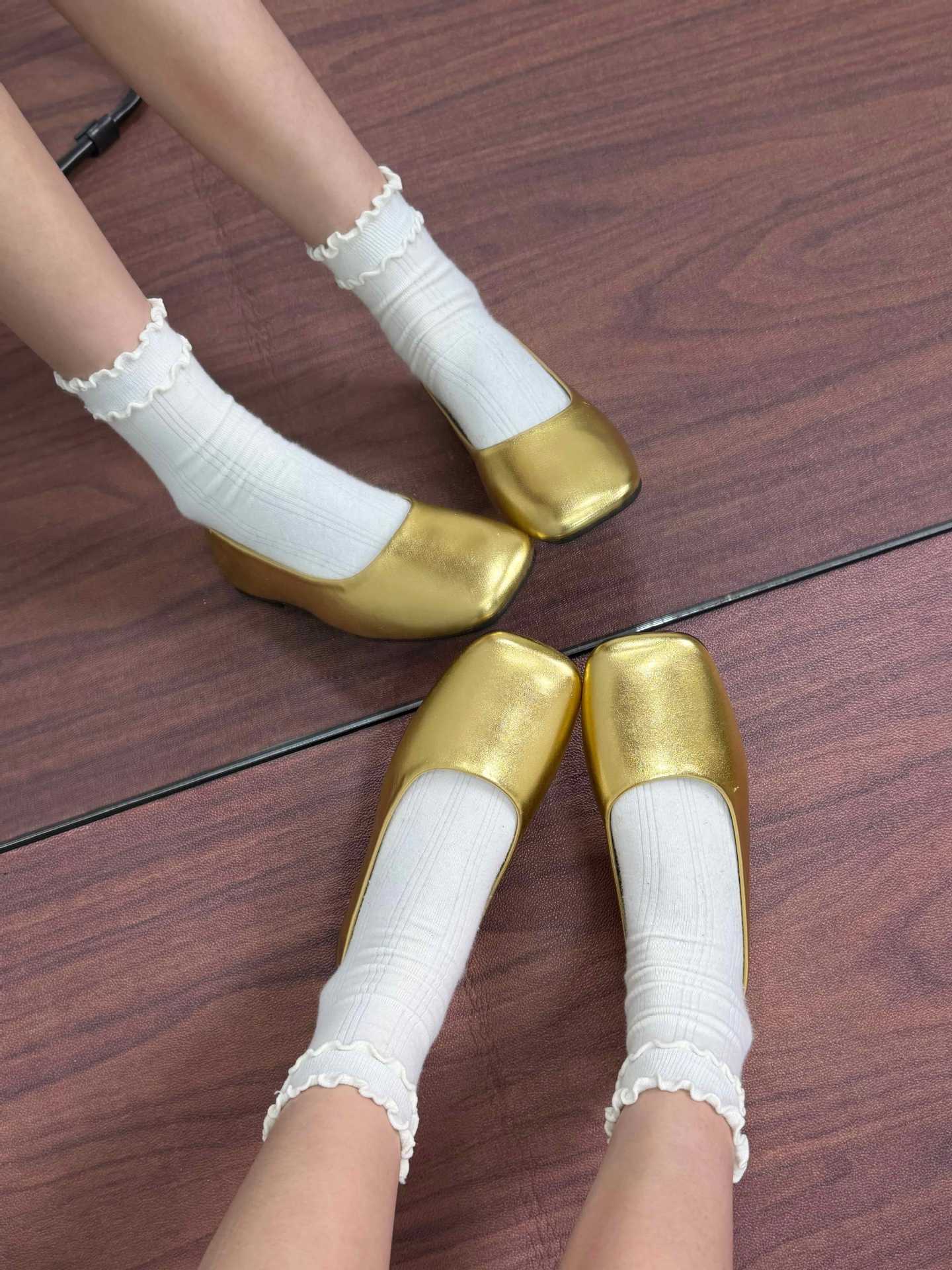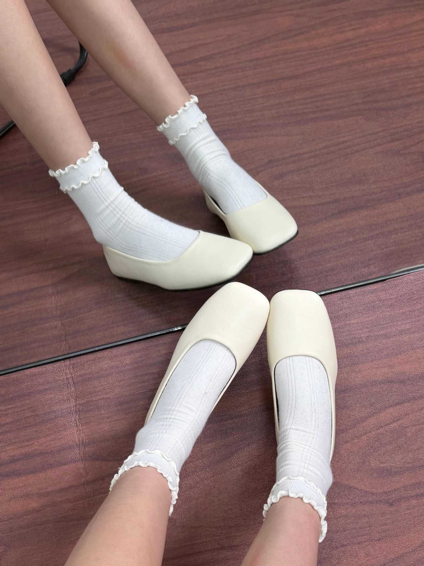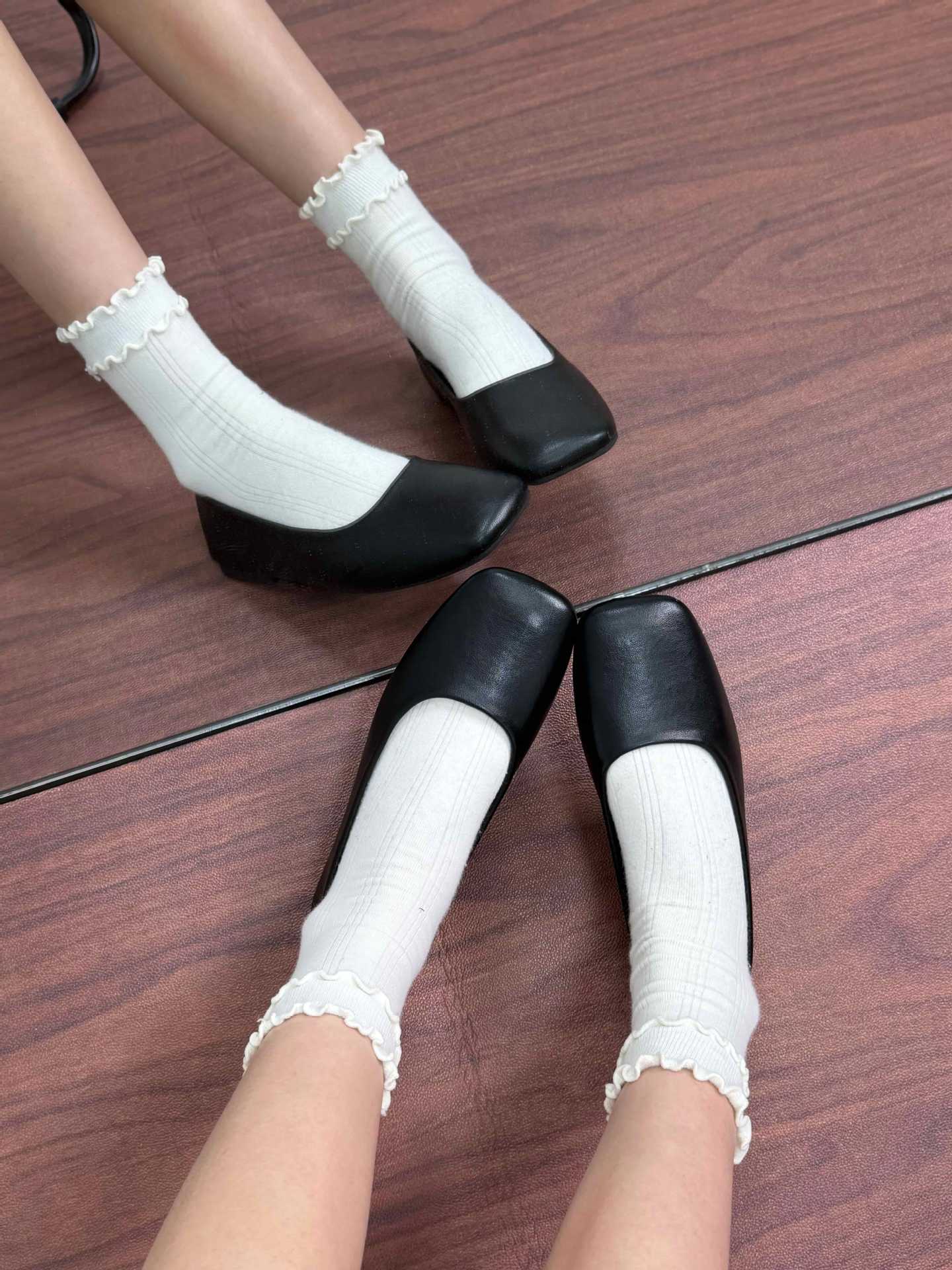 인터넷 축하 같은 스타일 봄 플랫 발레 신발 미니멀리스트 레트로 스퀘어 발가락 우유 신발 하이 버전 틈새 소프트 가죽 싱글 신발 로퍼