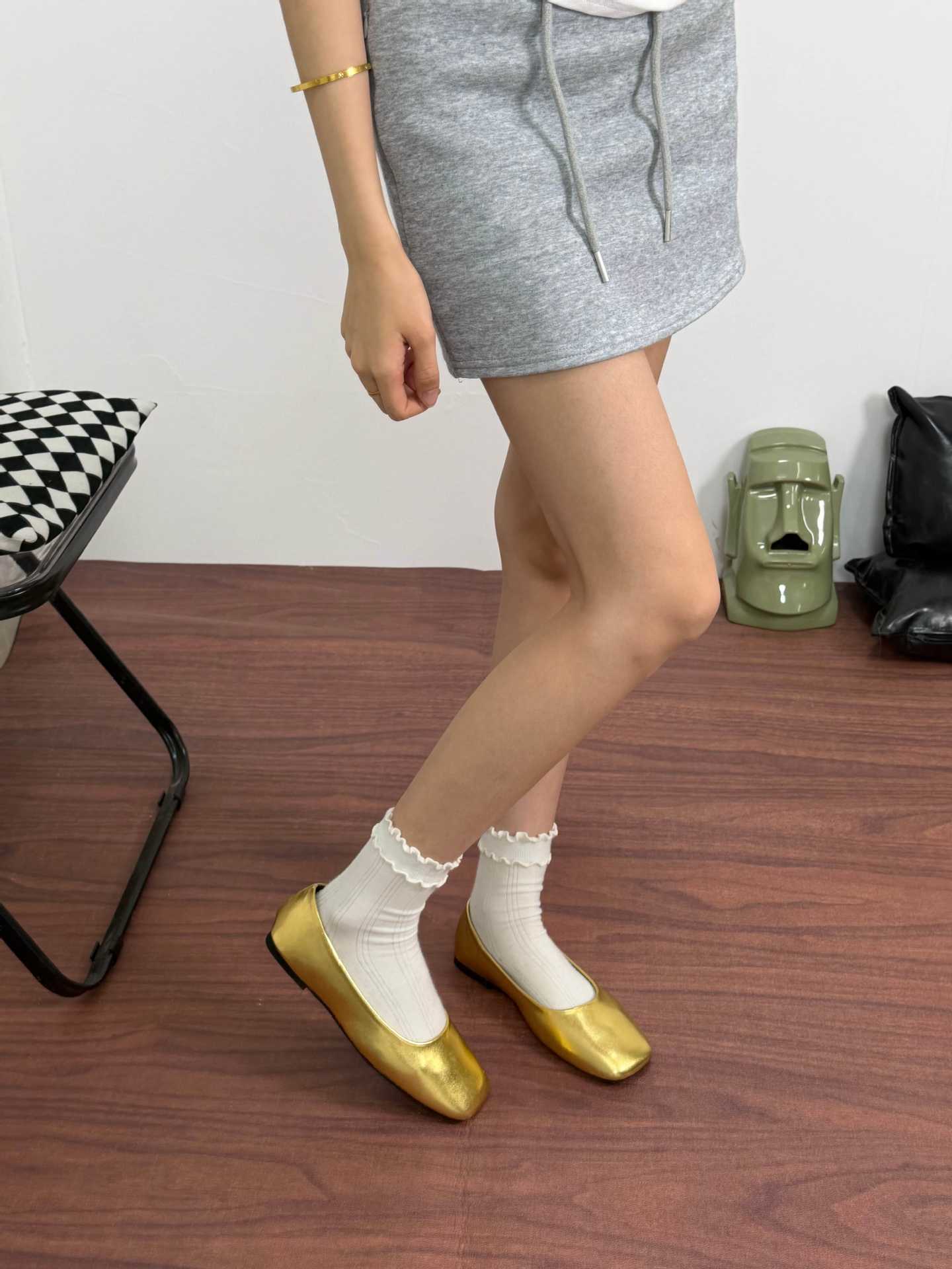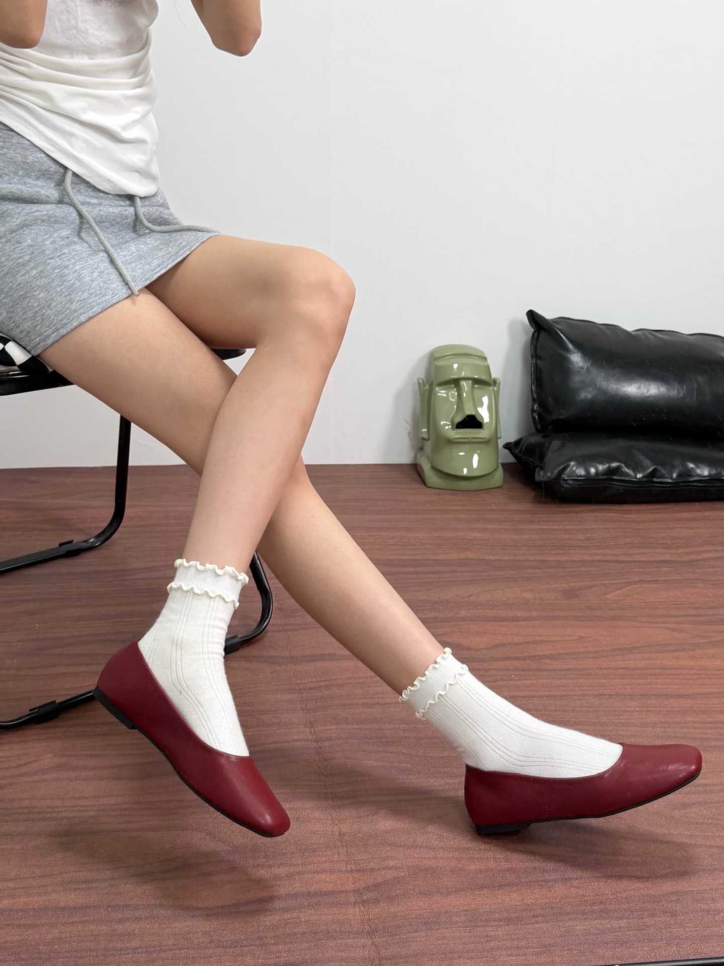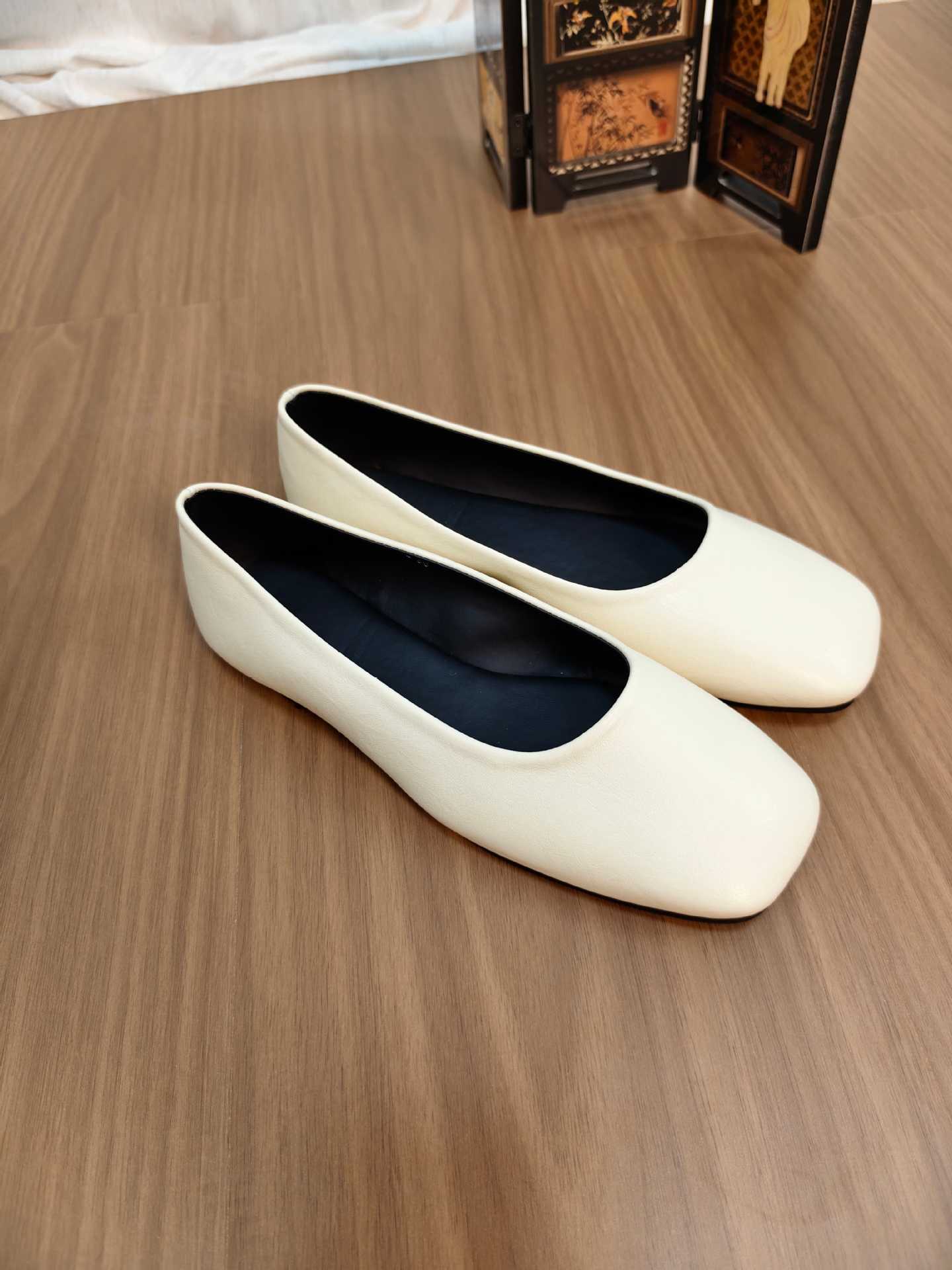 인터넷 축하 같은 스타일 봄 플랫 발레 신발 미니멀리스트 레트로 스퀘어 발가락 우유 신발 하이 버전 틈새 소프트 가죽 싱글 신발 로퍼스토어 가기