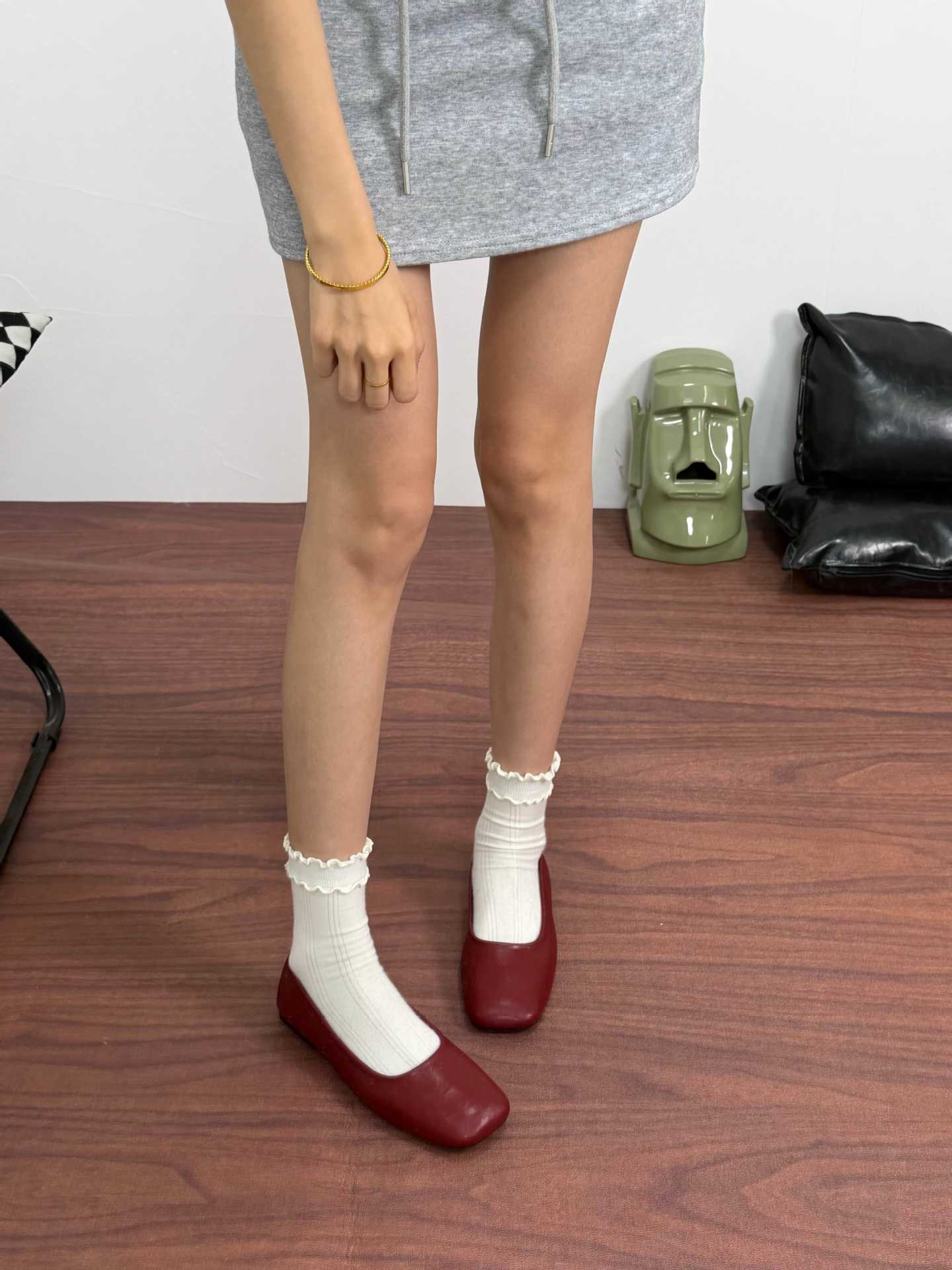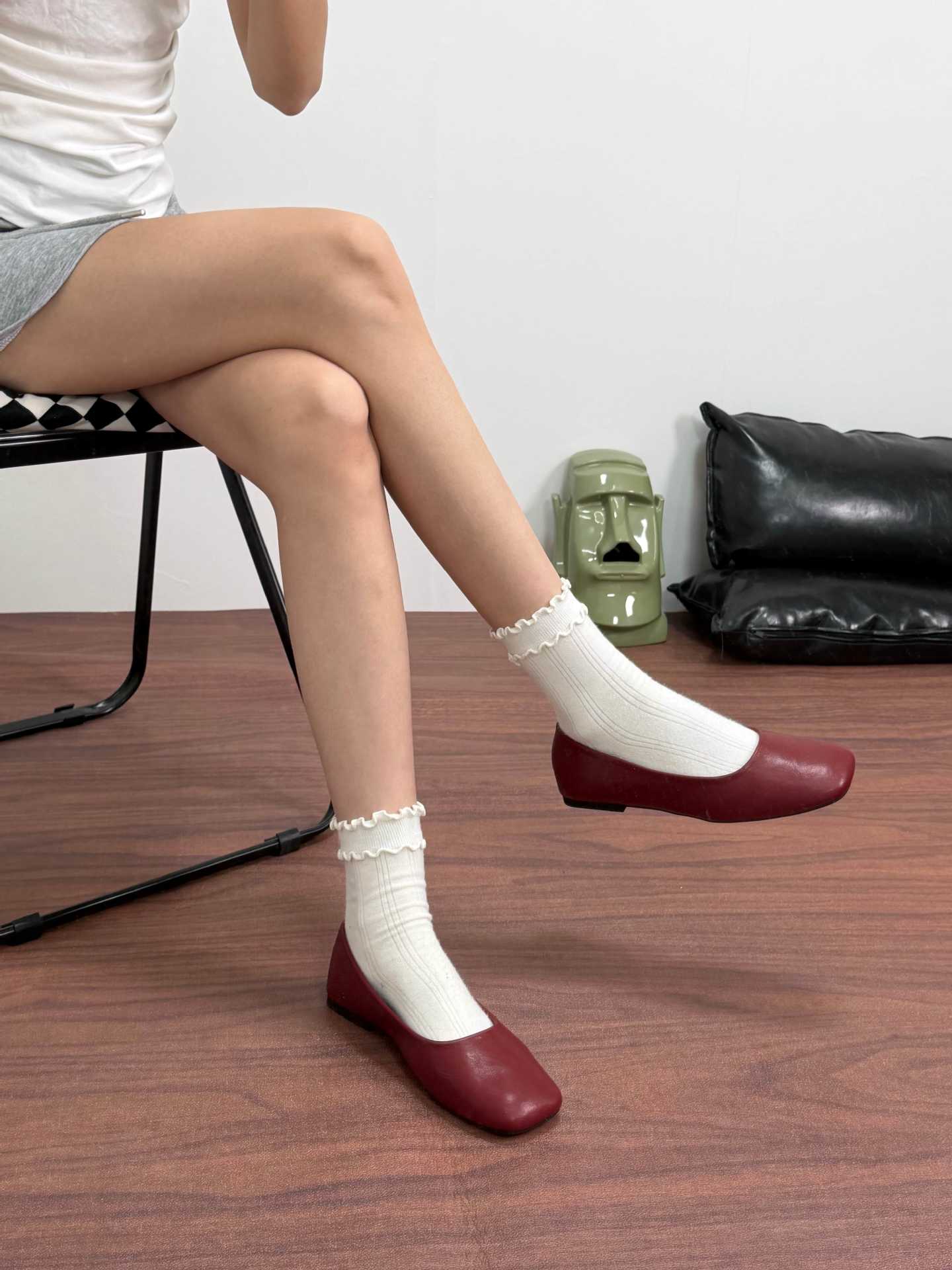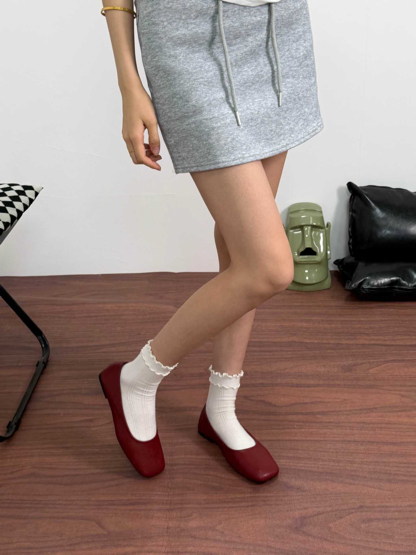 인터넷 축하 같은 스타일 봄 플랫 발레 신발 미니멀리스트 레트로 스퀘어 발가락 우유 신발 하이 버전 틈새 소프트 가죽 싱글 신발 로퍼스토어 가기
