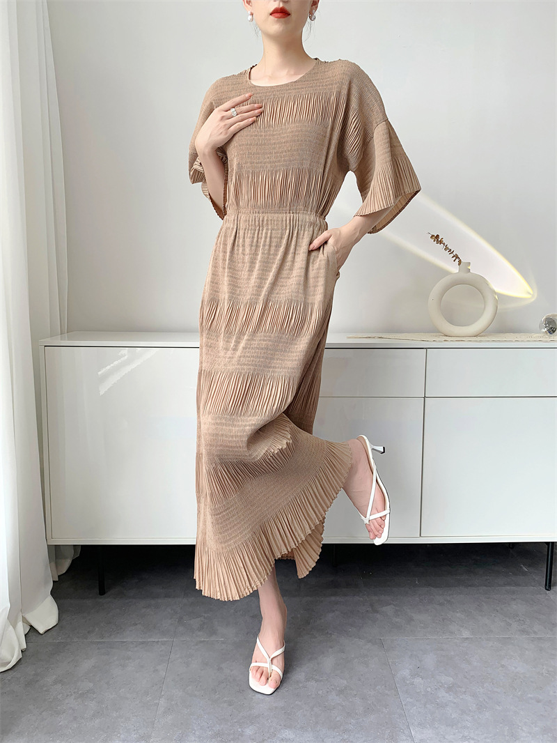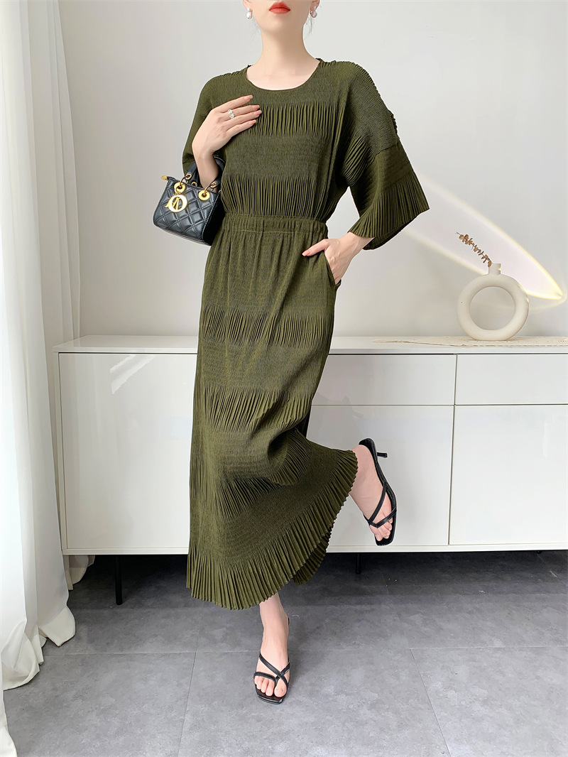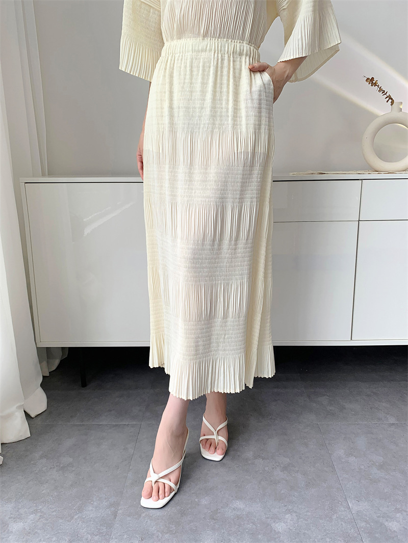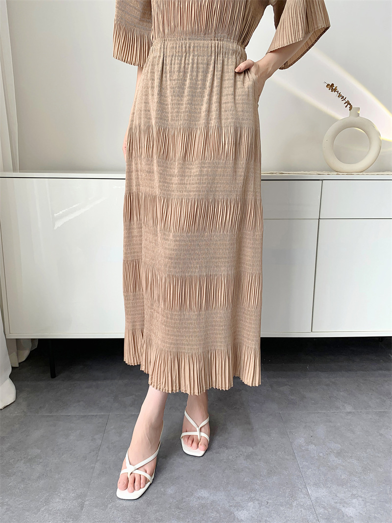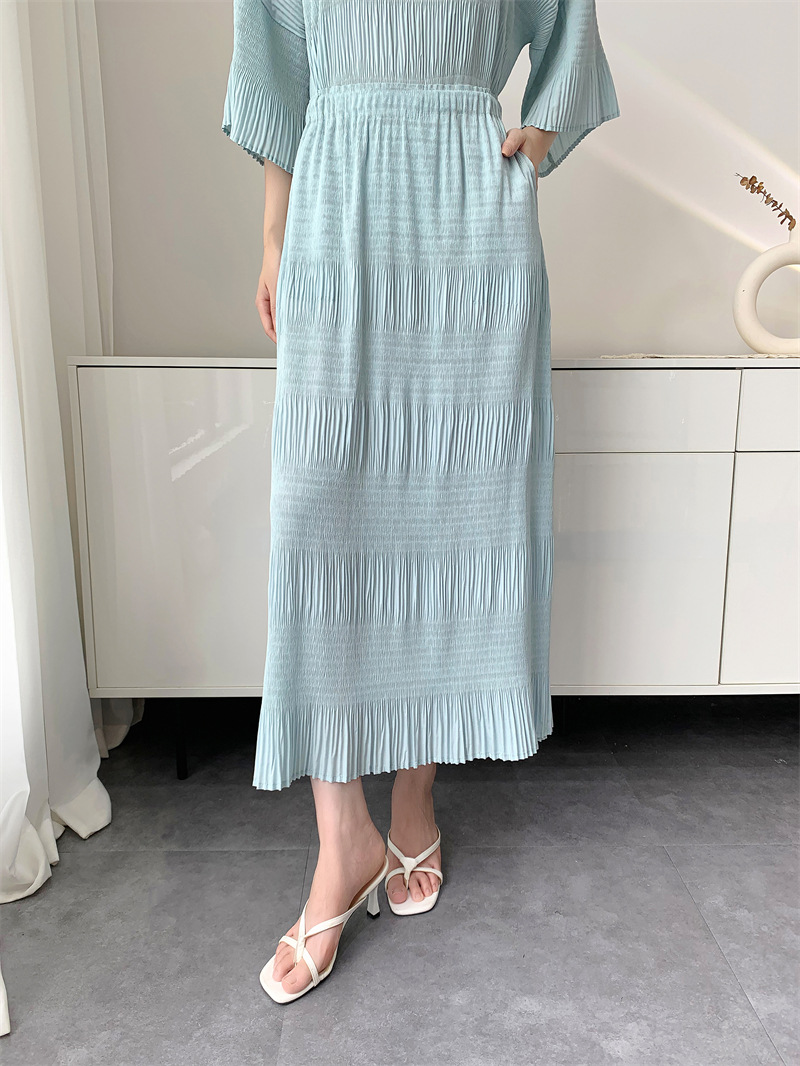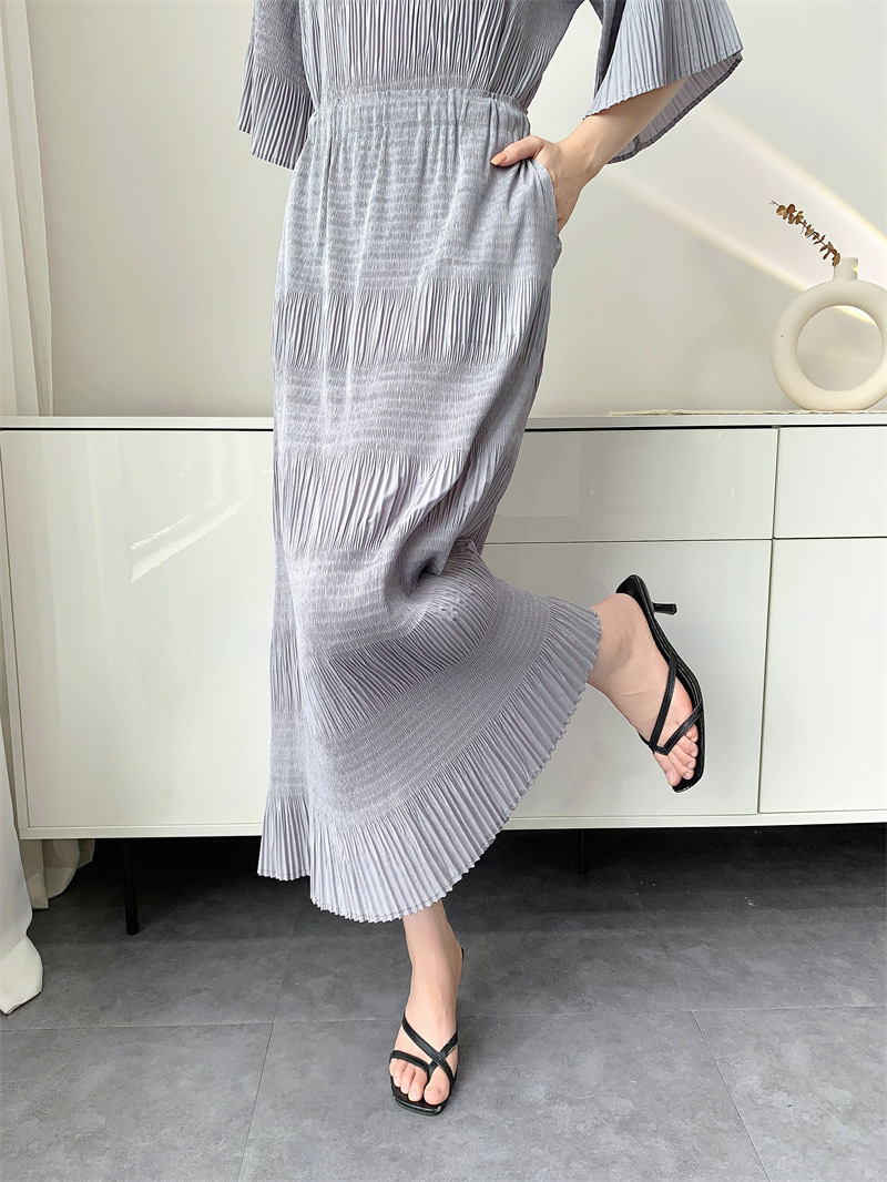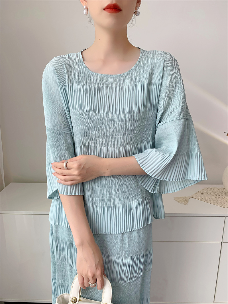 미야케 스타일의 고급 주름 세트 여성의 2025 년 여름 새로운 탑 오버 스커트 기질 시대-편안한 레저 감소