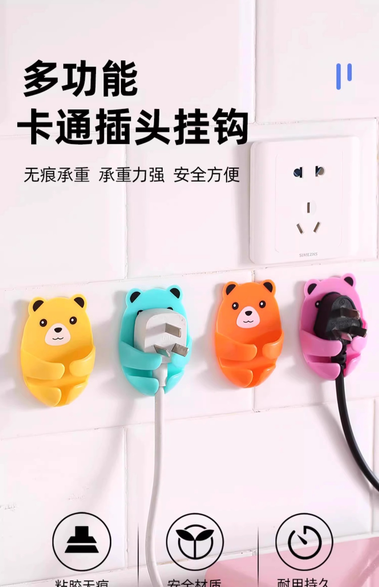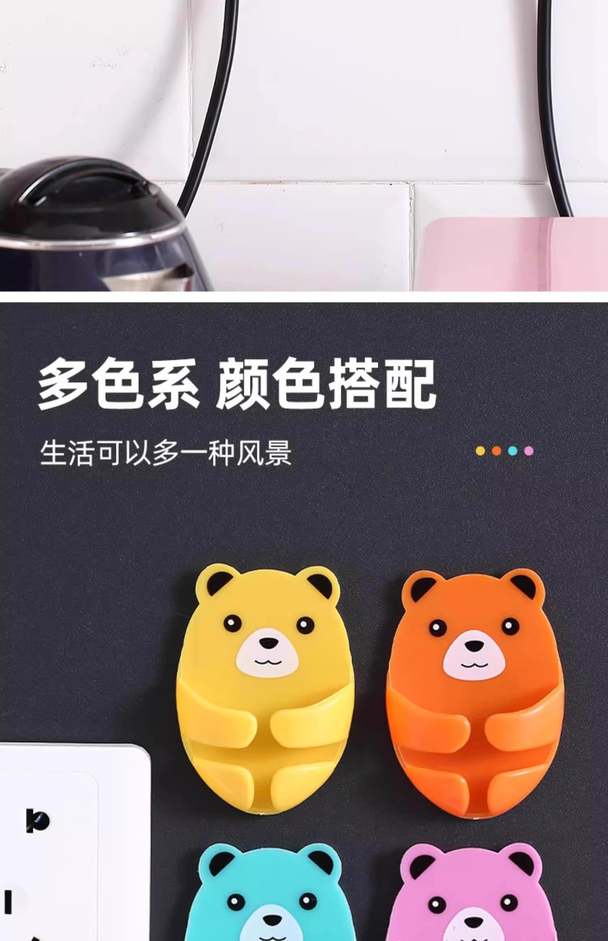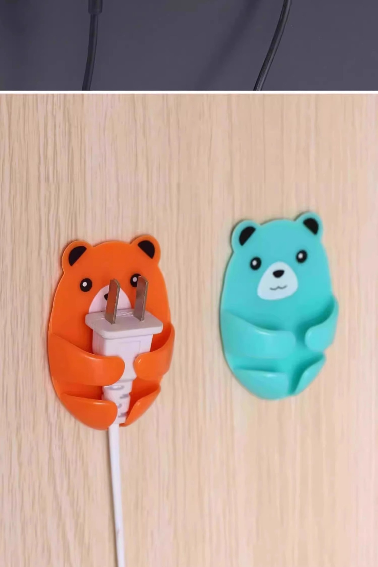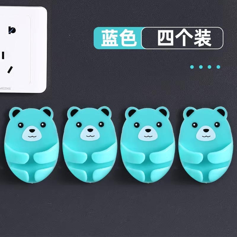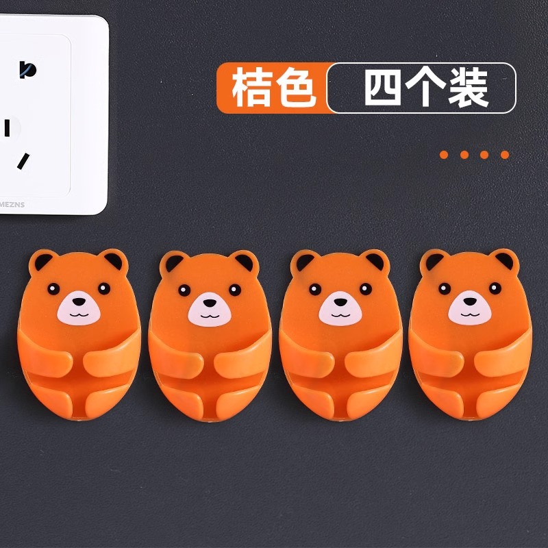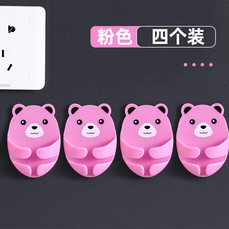 만화 포옹 곰 다기능 플러그 후크 강력한 접착제 펀치없는 벽 소켓 보관 홀더