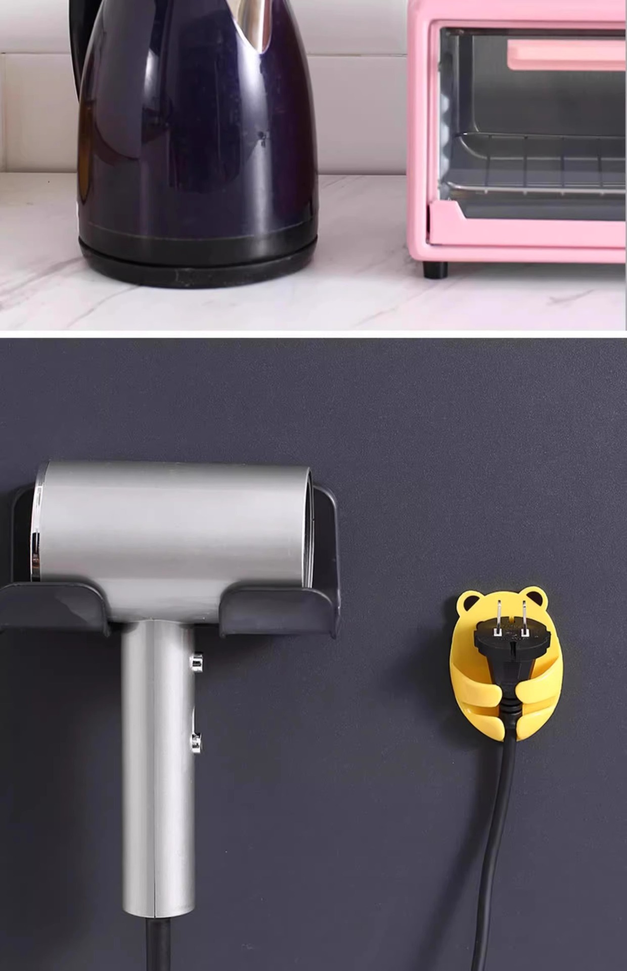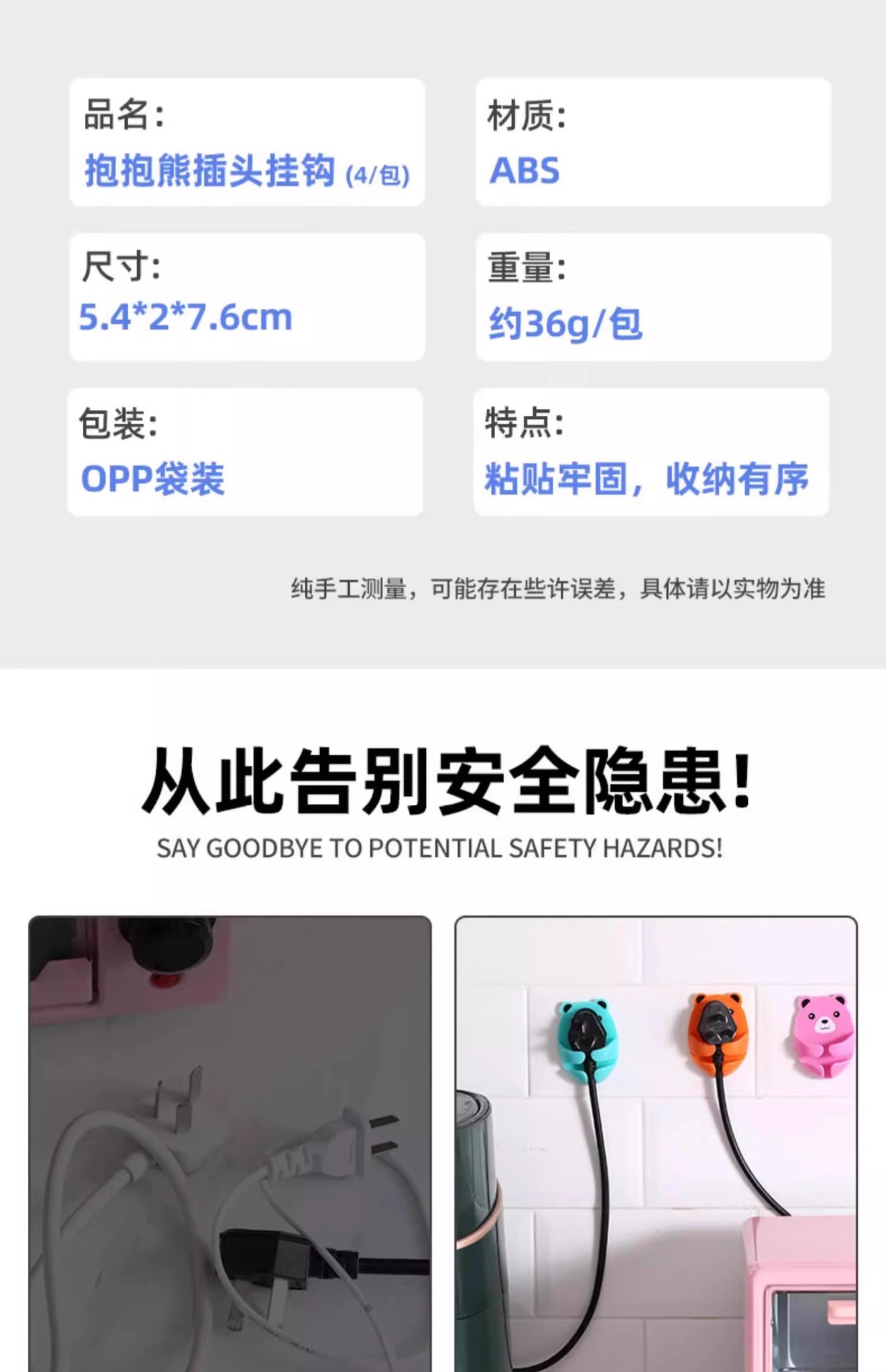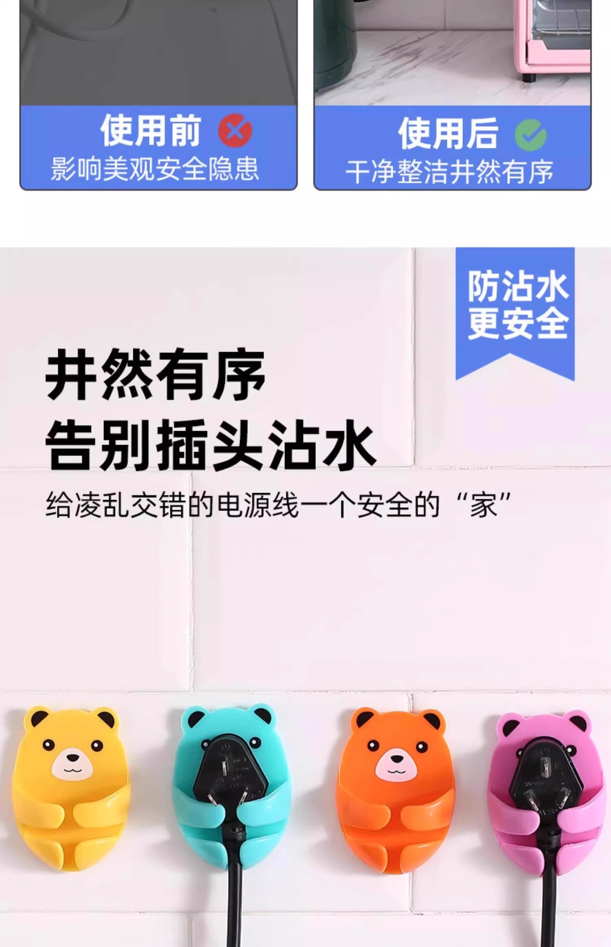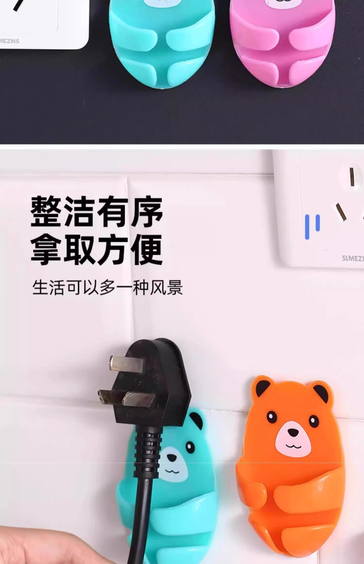만화 포옹 곰 다기능 플러그 후크 강력한 접착제 펀치없는 벽 소켓 보관 홀더