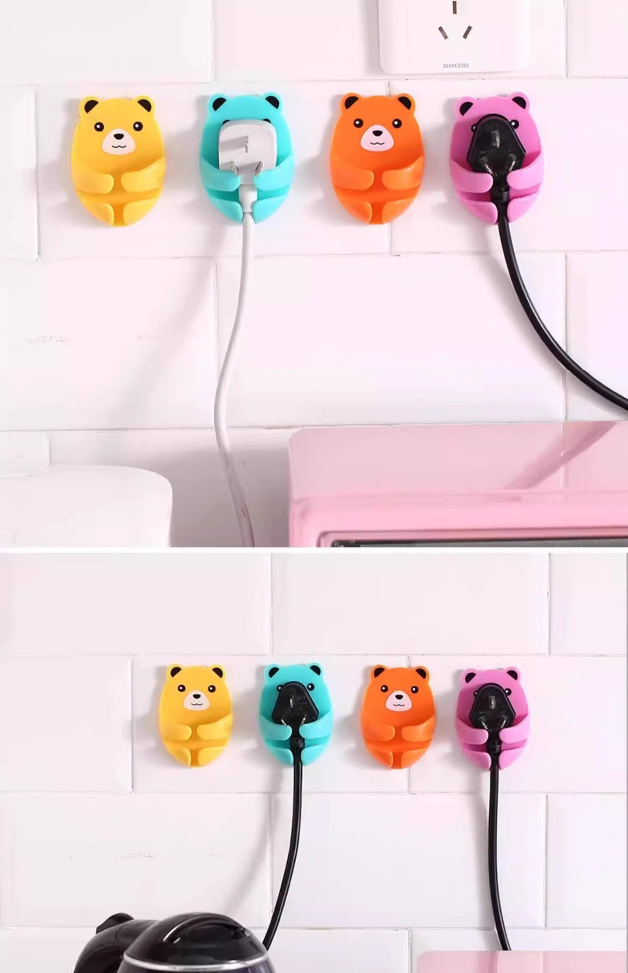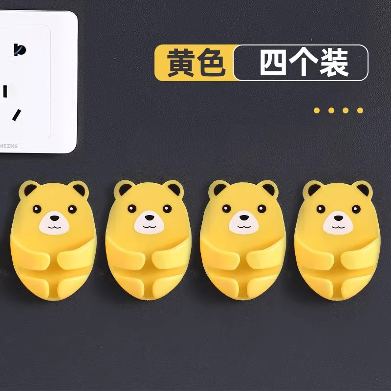 만화 포옹 곰 다기능 플러그 후크 강력한 접착제 펀치없는 벽 소켓 보관 홀더스토어 가기