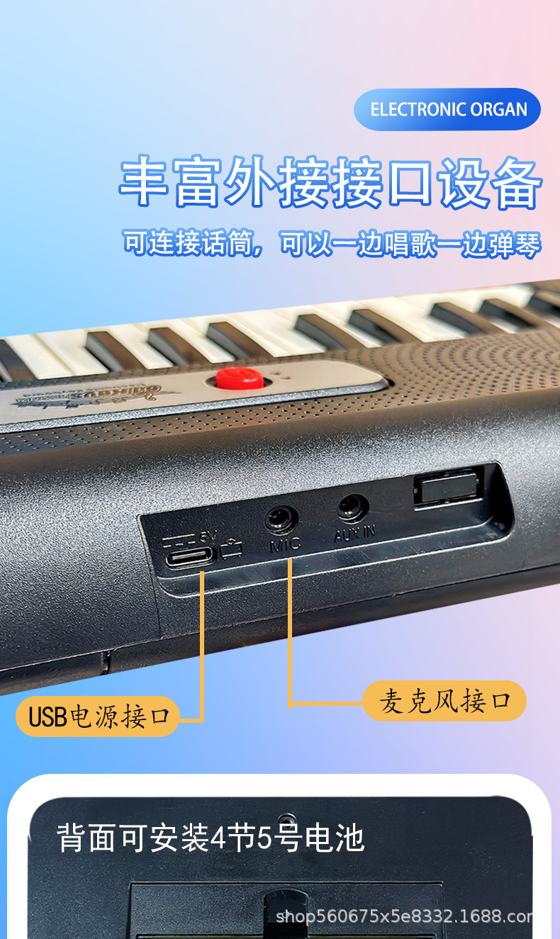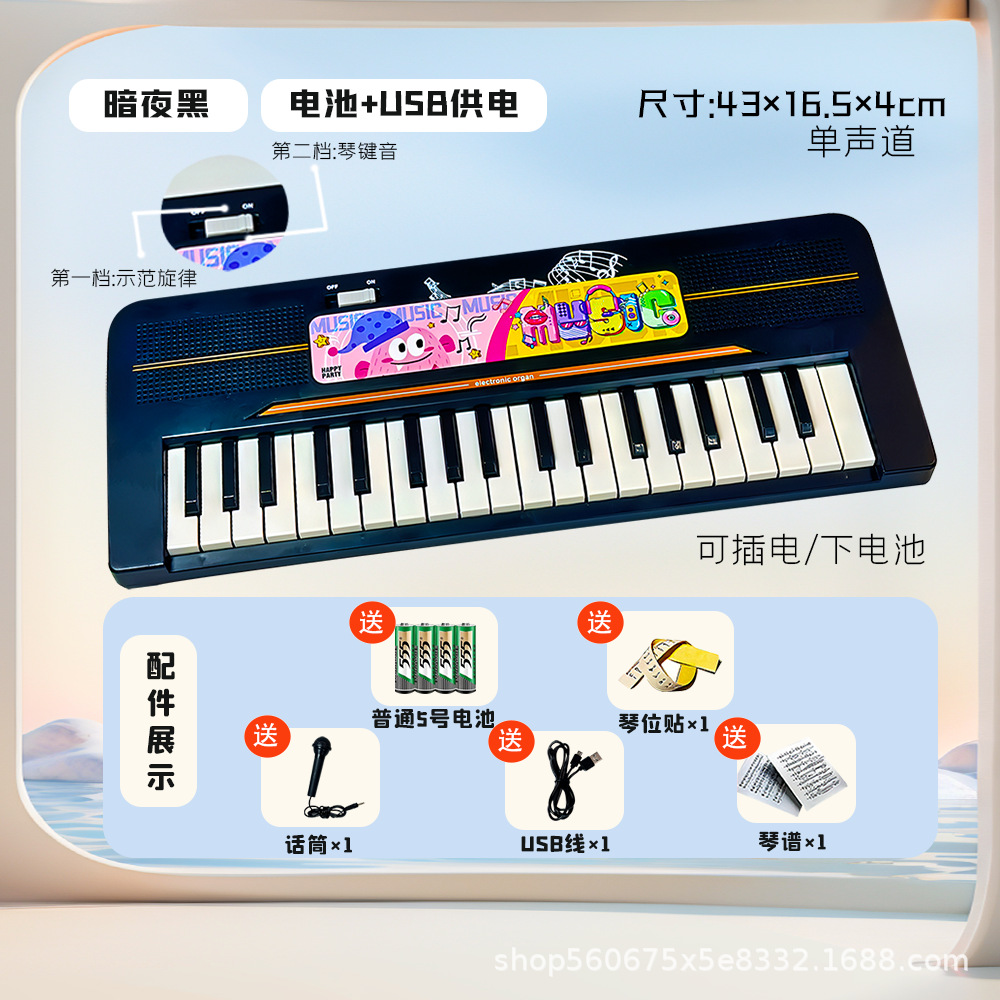 • 37건반 검정색(음악 + 자체 탄성) 전자 키보드