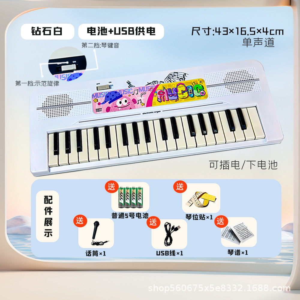 • 37키 흰색(음악 + 자체 연주) 전자 키보드