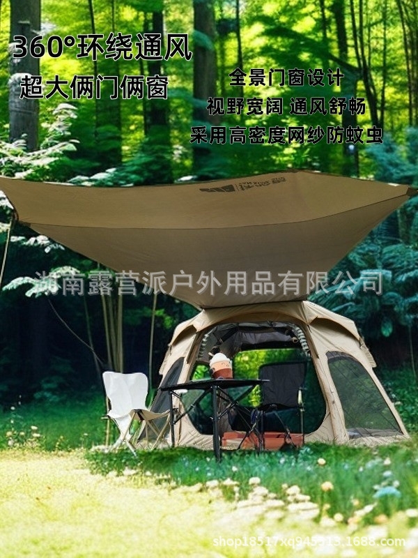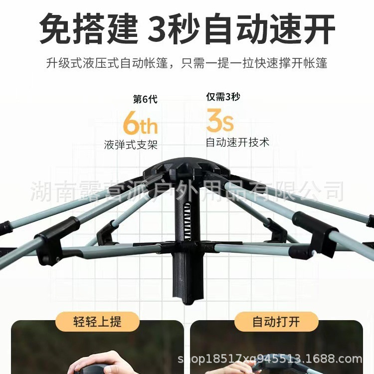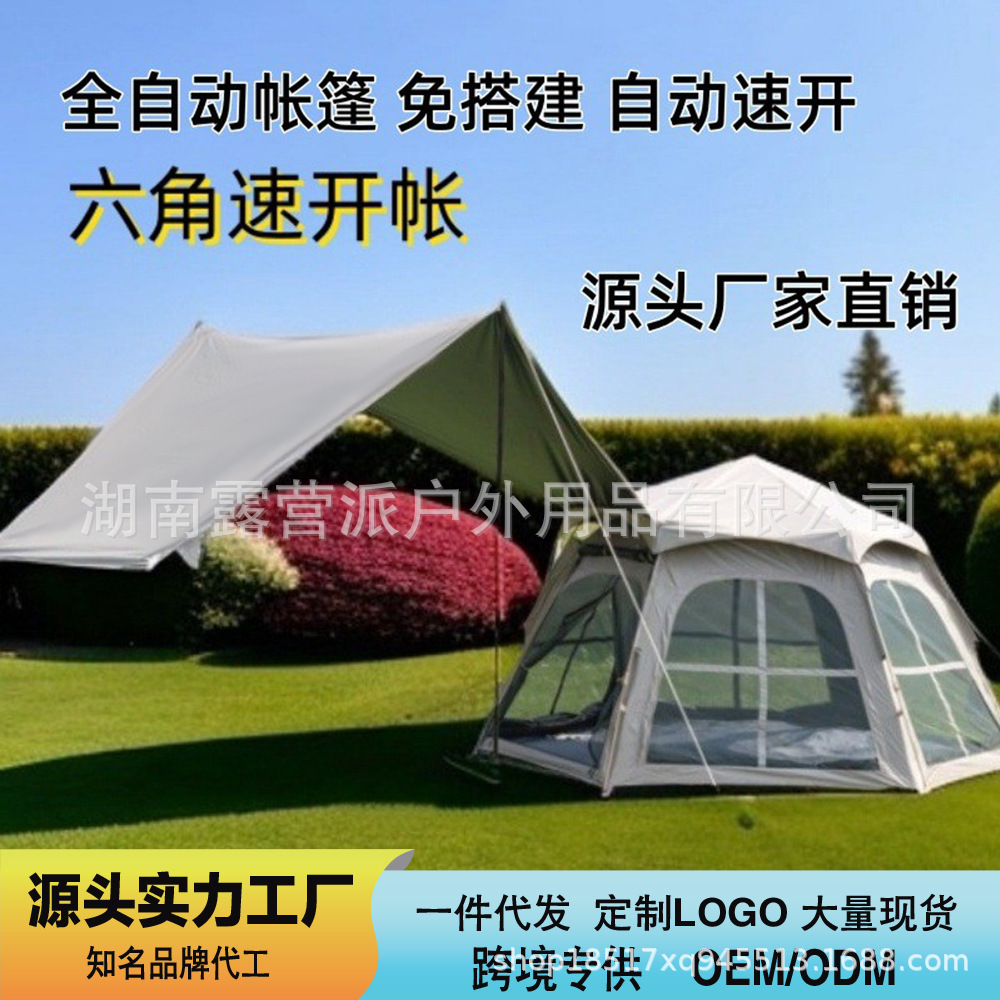 4-6인용 야외 텐트, 완전 자동 캠핑, 접이식, 편리한 캐노피, 일체형 비닐 육각형 장비 도매스토어 가기