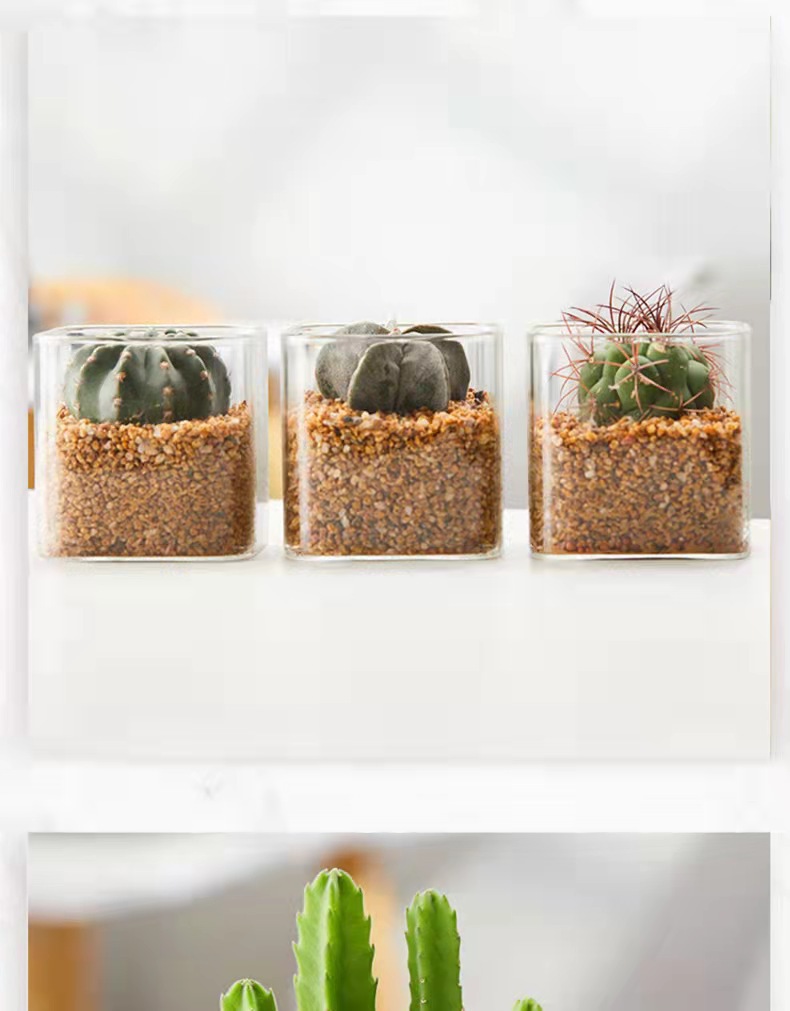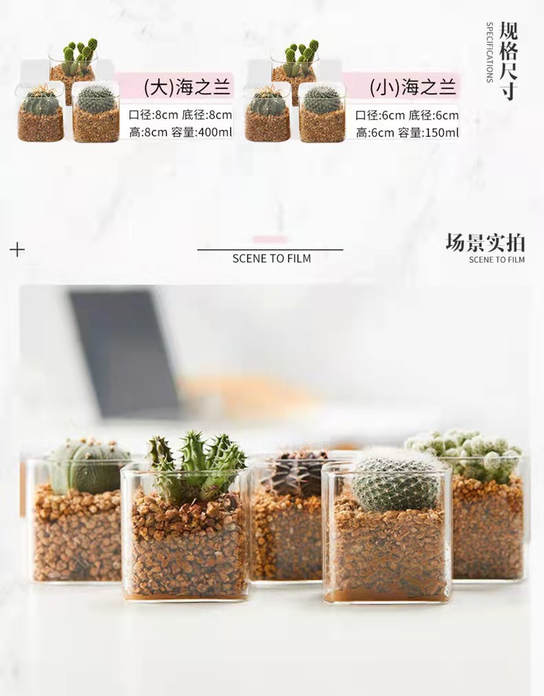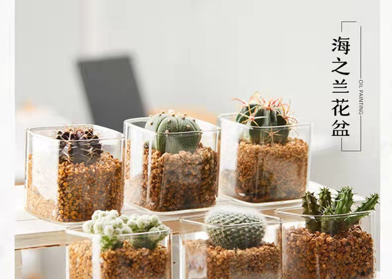 현대 간단한 투명 유리 꽃병 다육 선인장 수경 식물 화분 사각형 원예 생태 병 도매스토어 가기