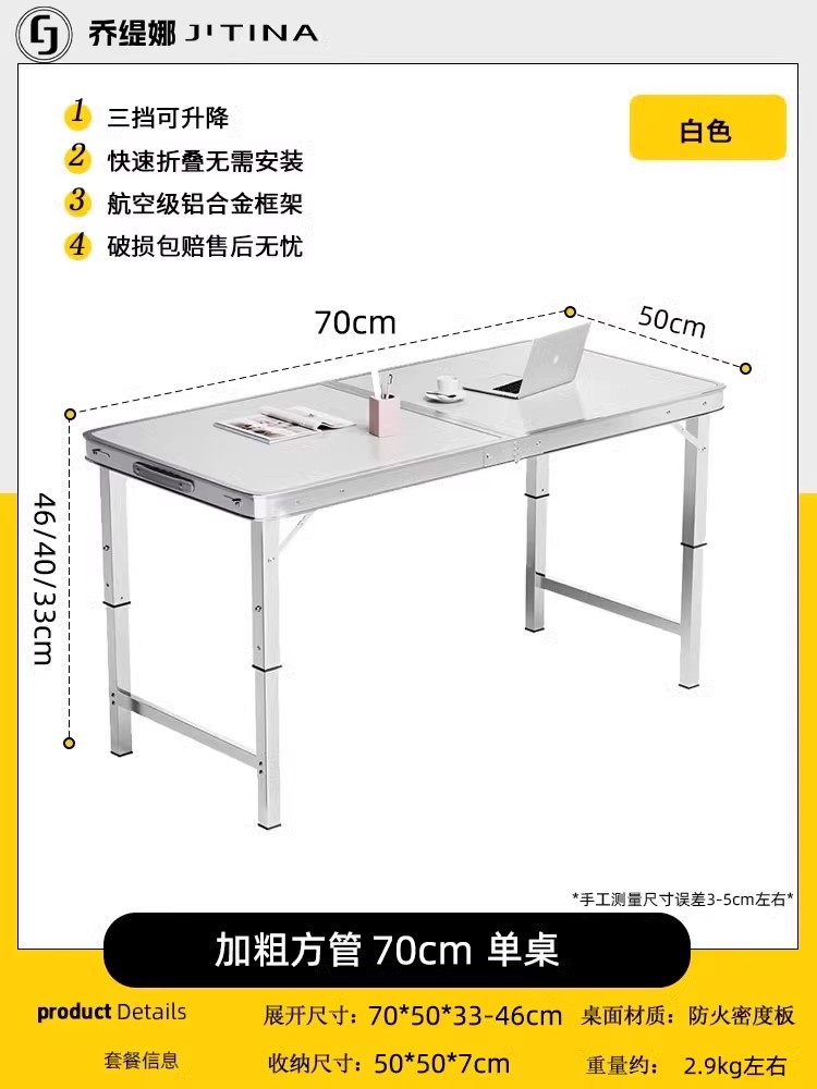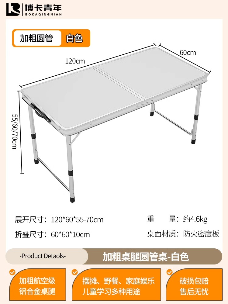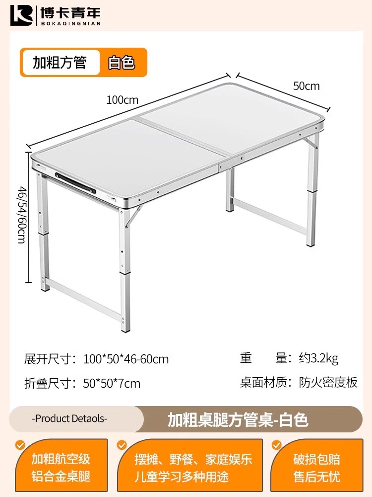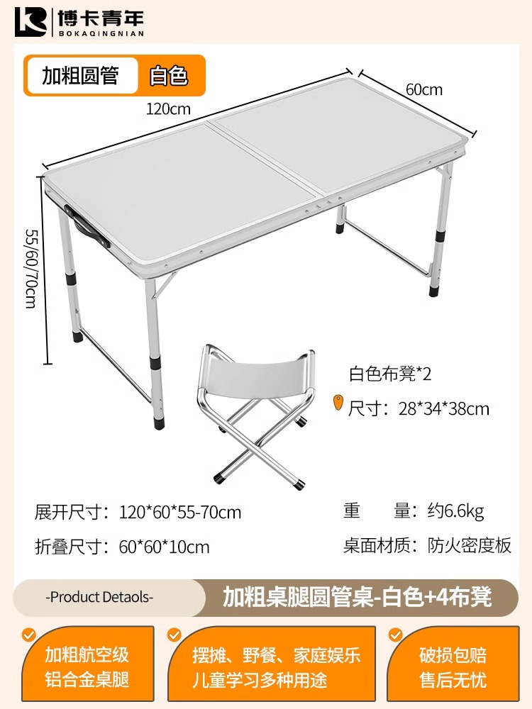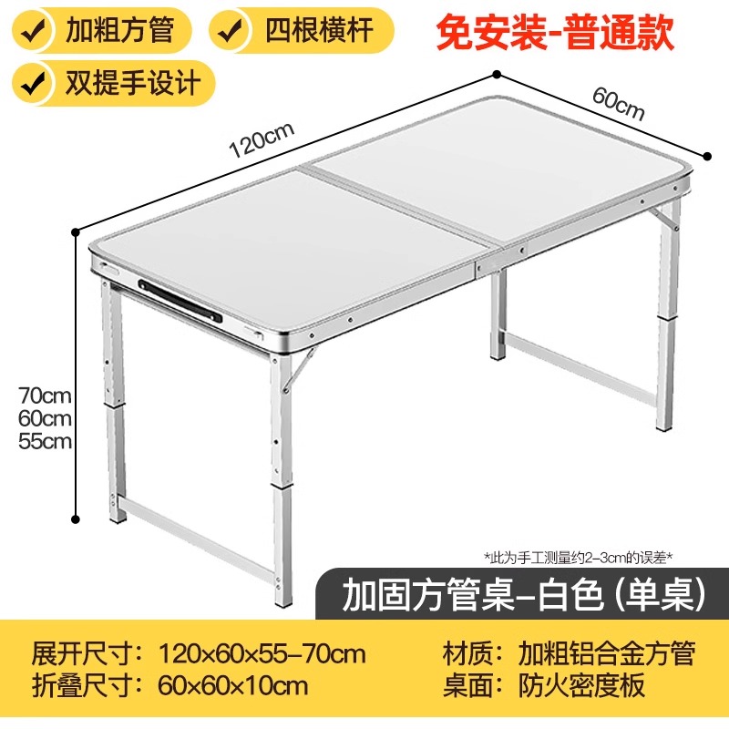 • [업그레이드 된 알루미늄 합금 사각 튜브] 120*60cm 흰색 + 알루미늄 의자 2개